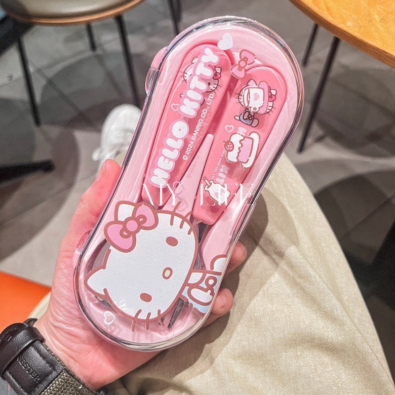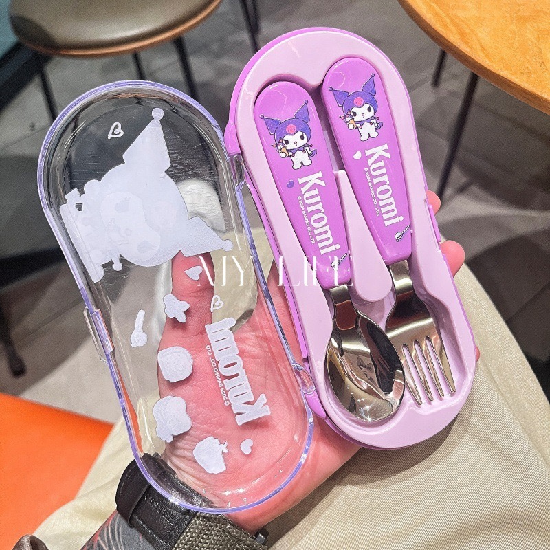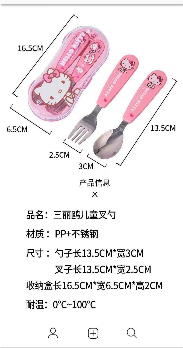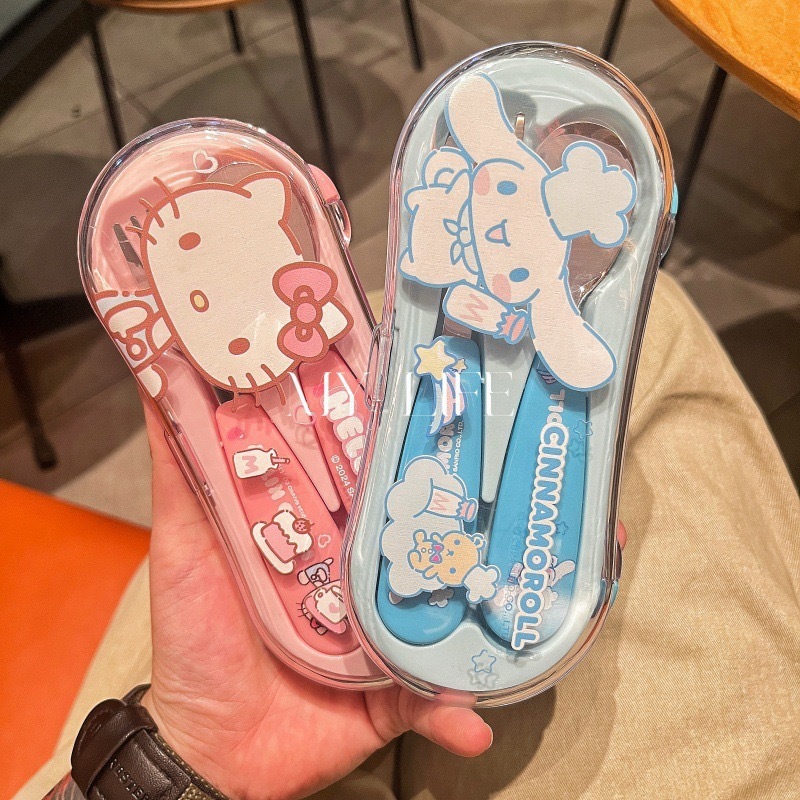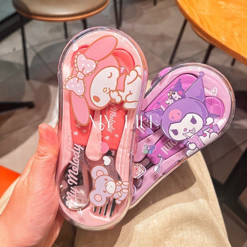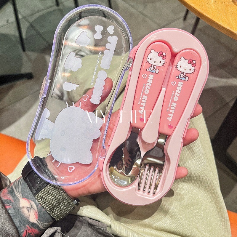 정품 Sanrio 어린이 휴대용 식기 세트 304 스테인레스 스틸 아기 먹는 숟가락 만화 포크 학생스토어 가기