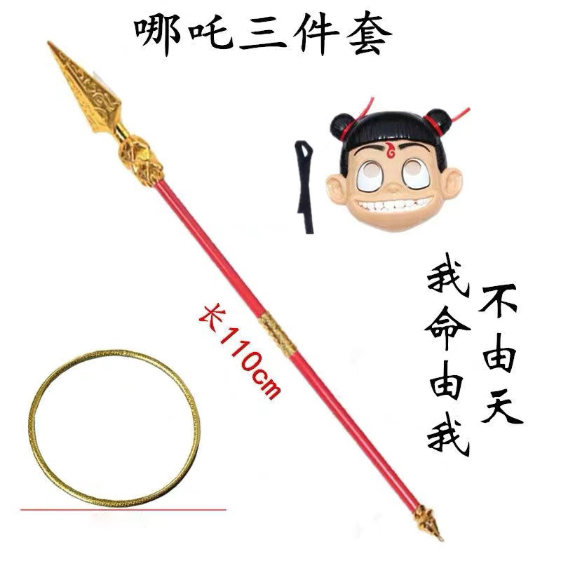 Nezha 장난감 Nezha 3 피스 소품 총 무기 빨간 술 총 무기 1 미터 길이의 총 모델 어린이스토어 가기