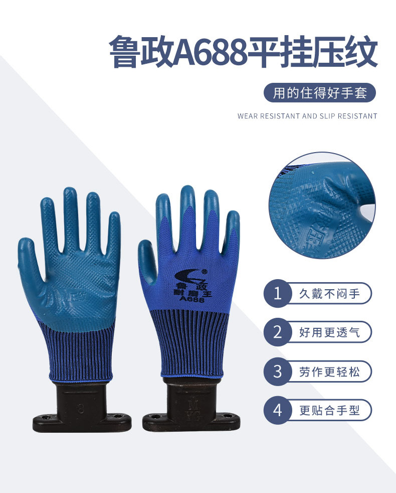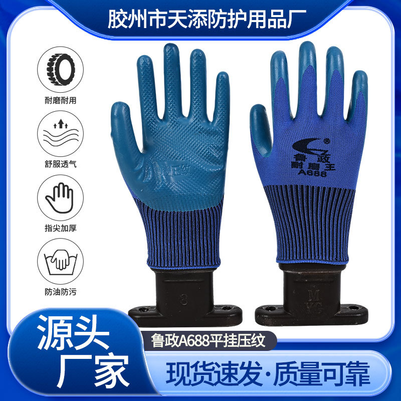보호 노동 장갑 제조 업체 내마모성 미끄럼 방지 산업 공원 Lu Zheng 내마모성 Wang A688 편평한 매달린 엠보싱 장갑스토어 가기