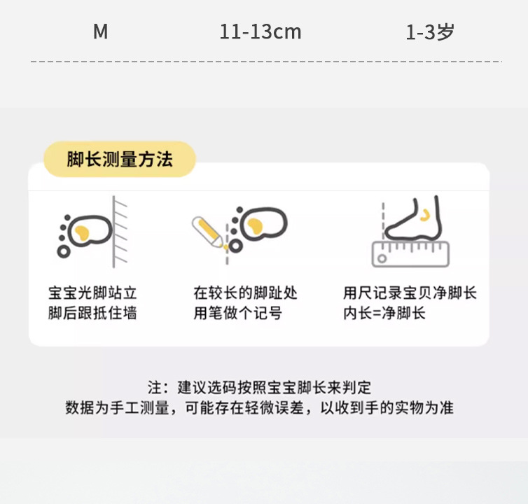 • M 사이즈 1-3세, 권장 발 길이 11-13CM