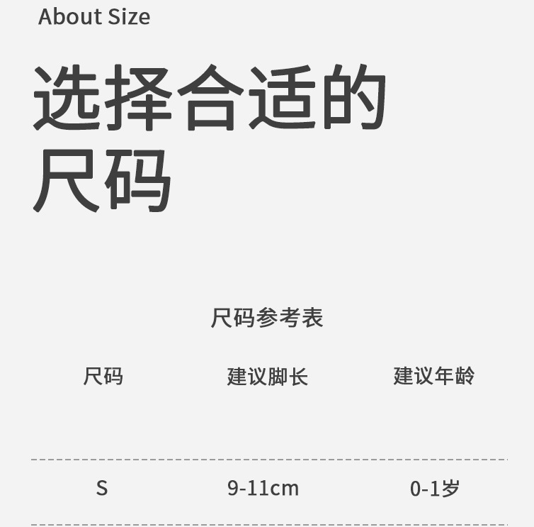 • S 사이즈 0-1세, 권장 발 길이 9-11CM