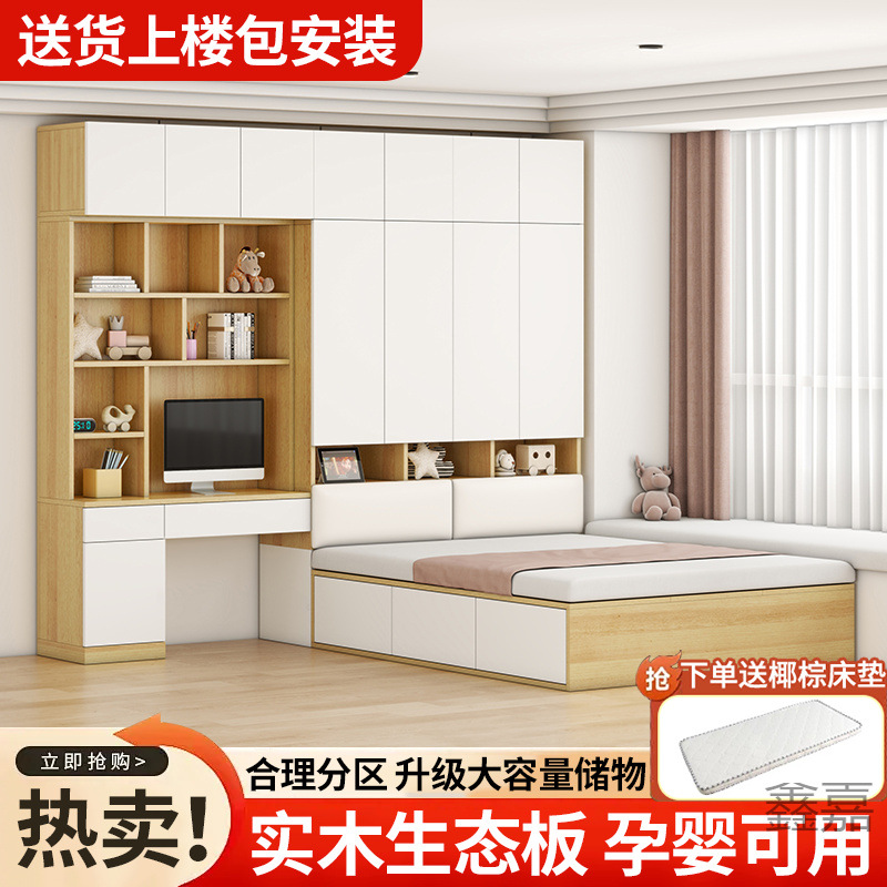 X斝1榻榻米小户型床柜一体衣柜书桌儿童床多功能组合储物床卧室衣