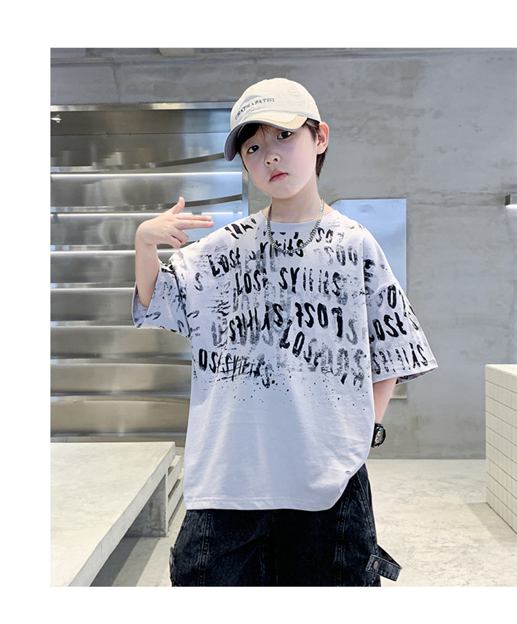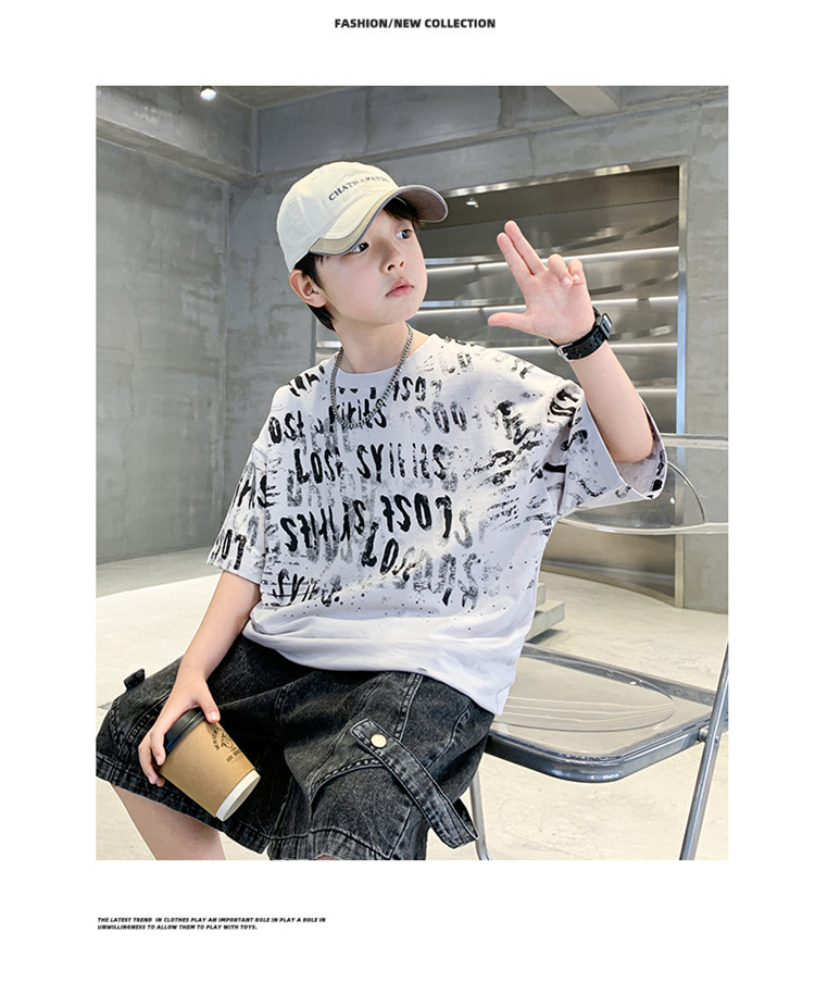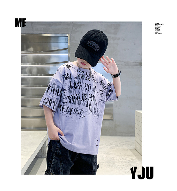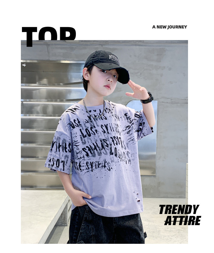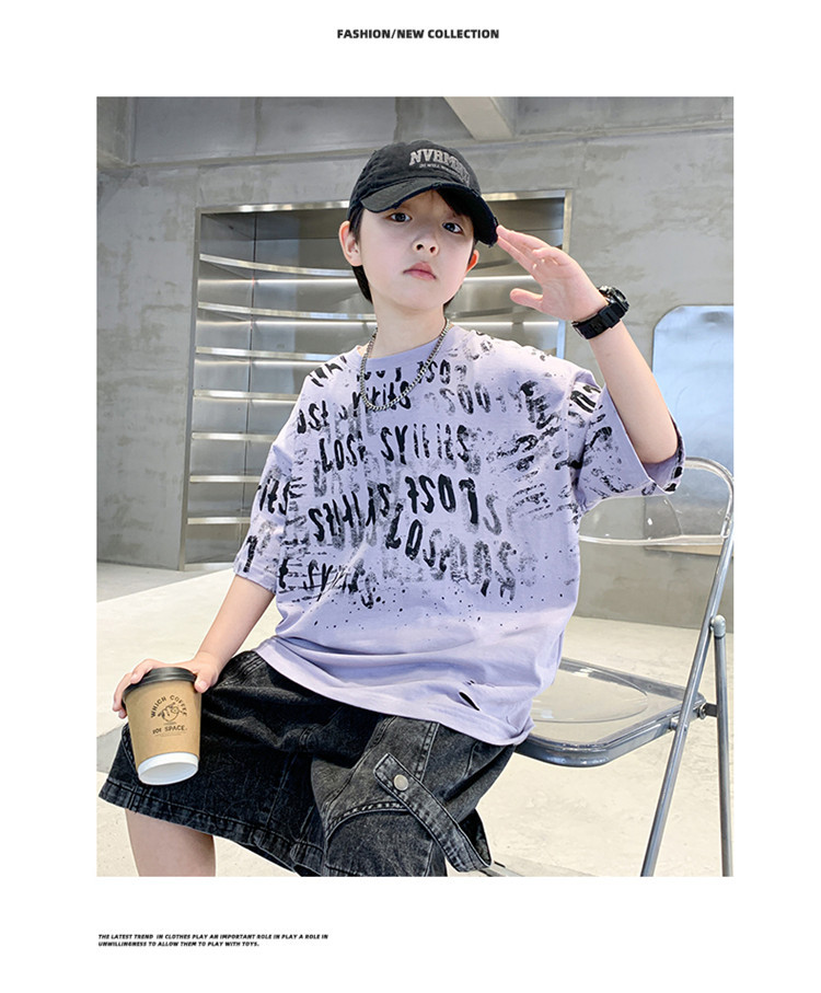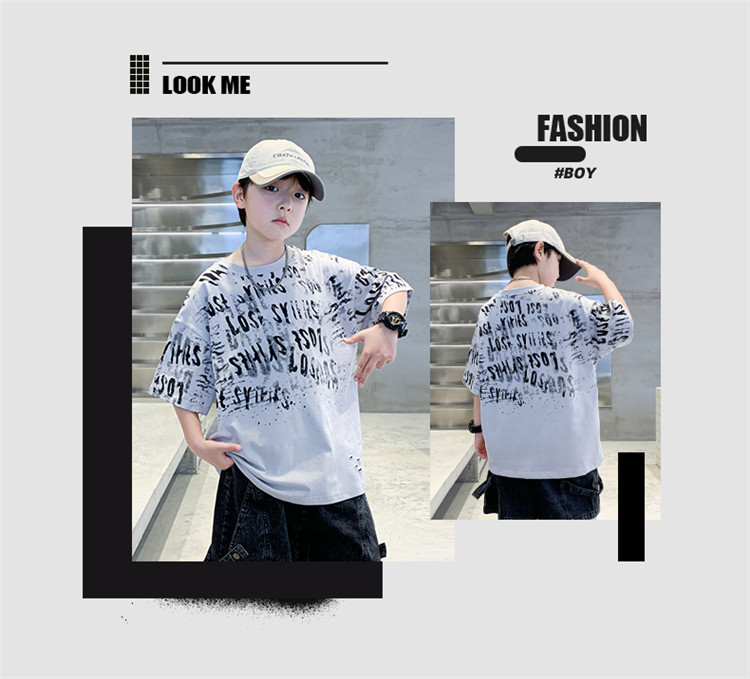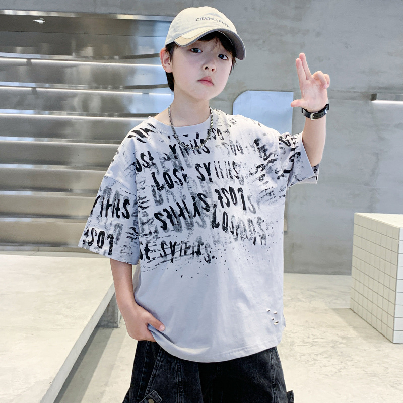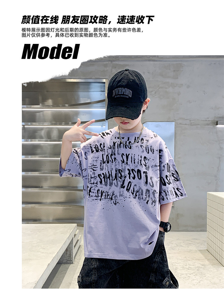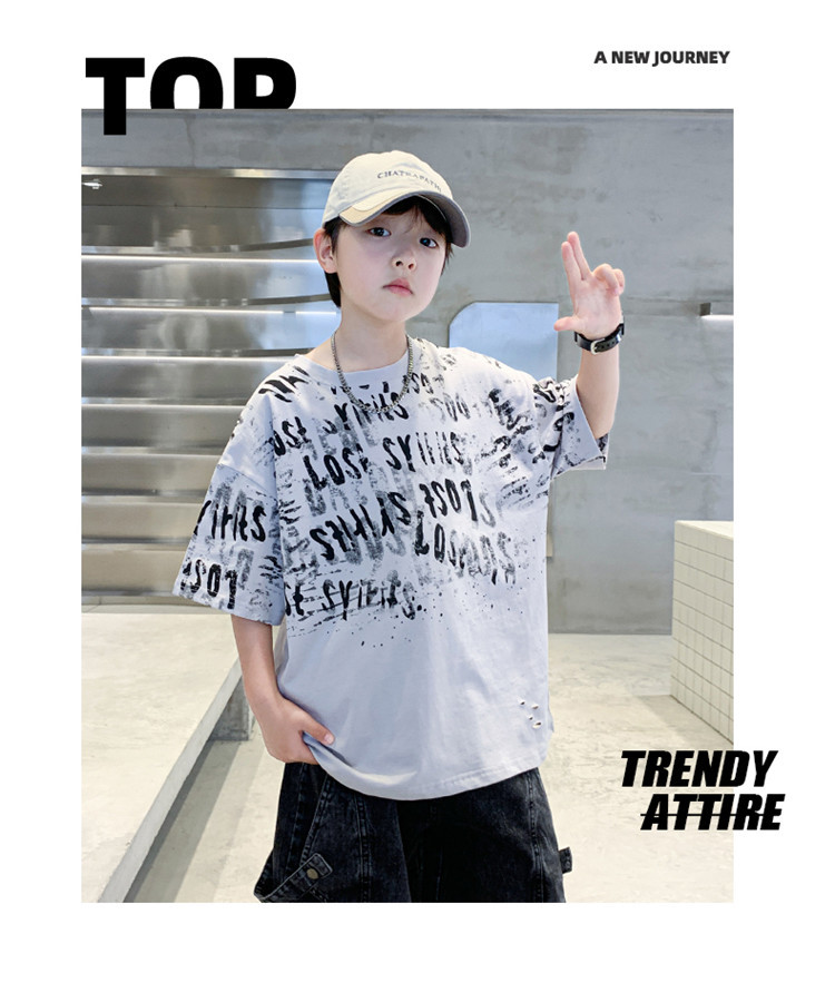 소년 여름 티셔츠 짧은 소매 2025 새로운 T 어린이 티셔츠 여름 느슨한 소년 탑 얇은 튀김 거리 도매스토어 가기
