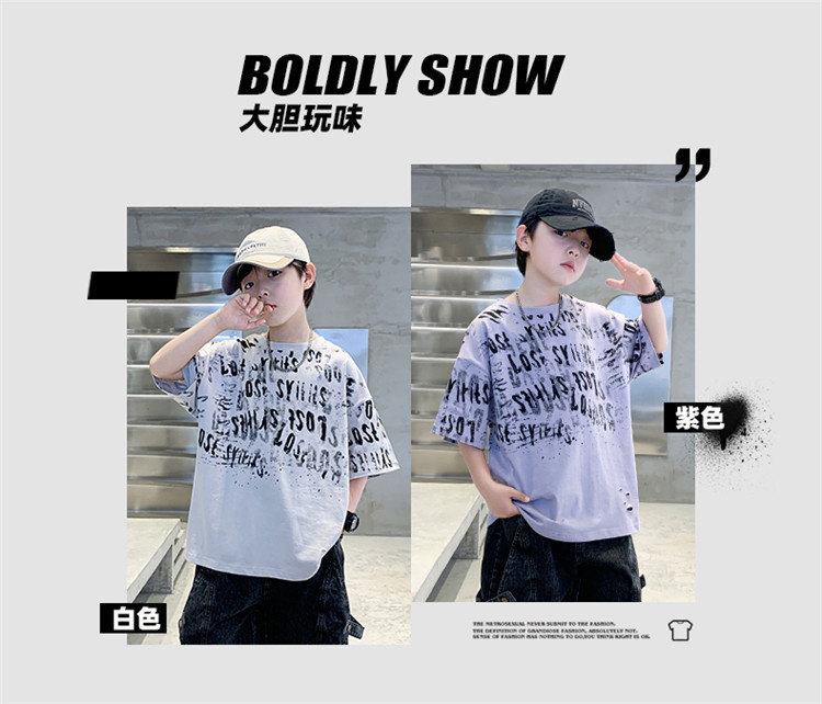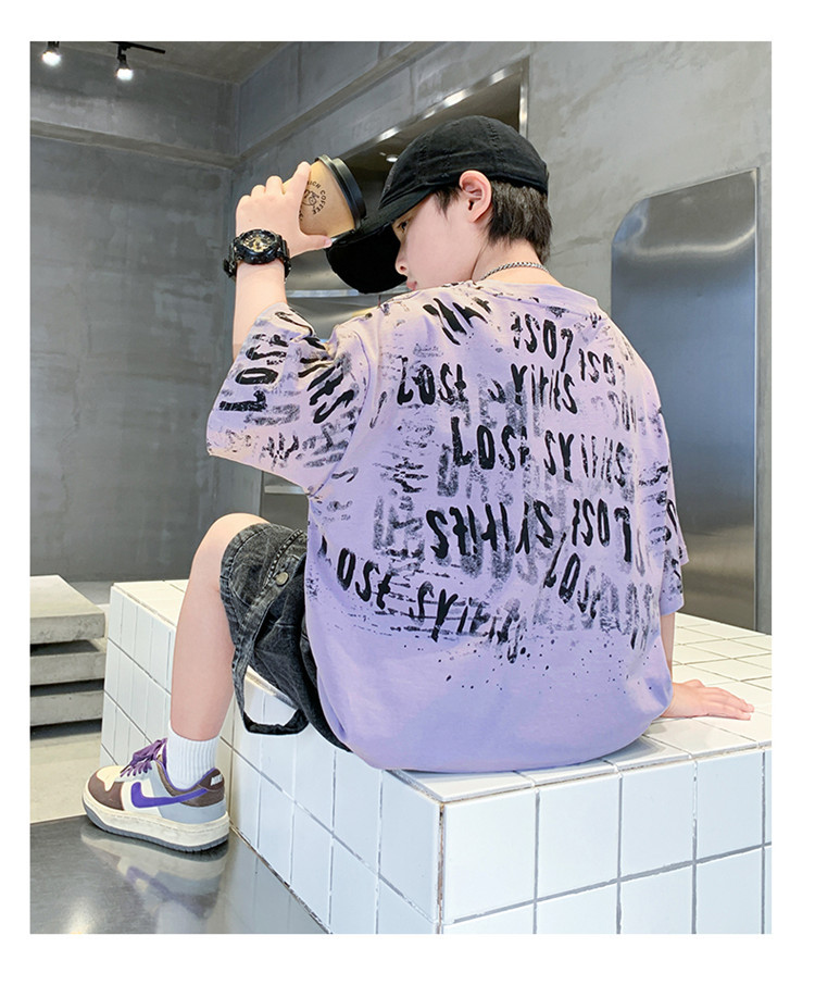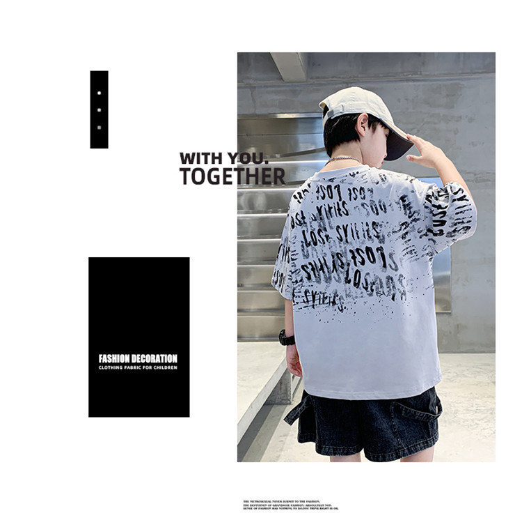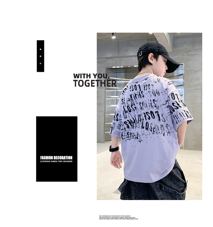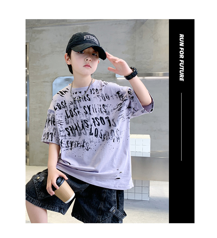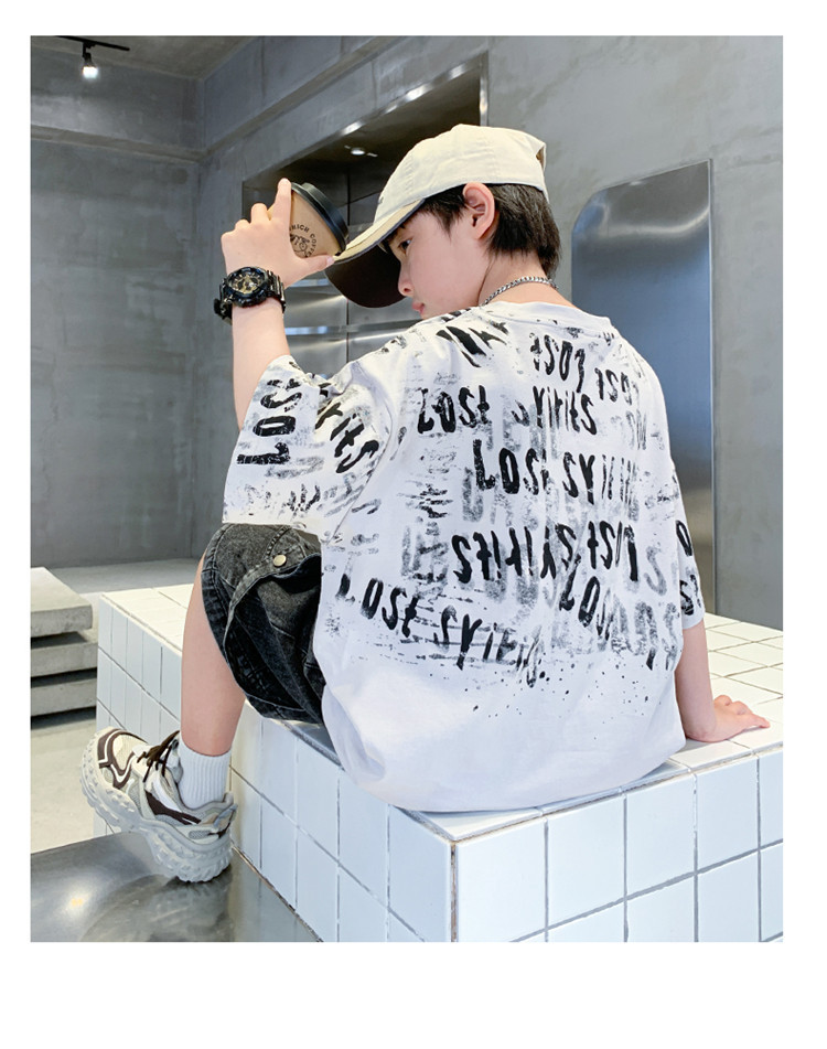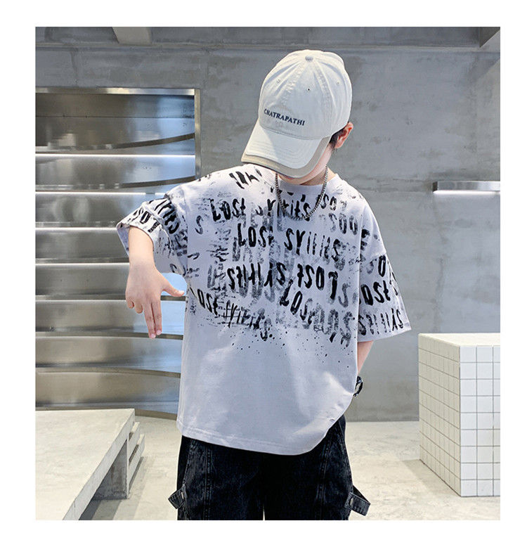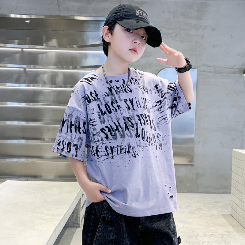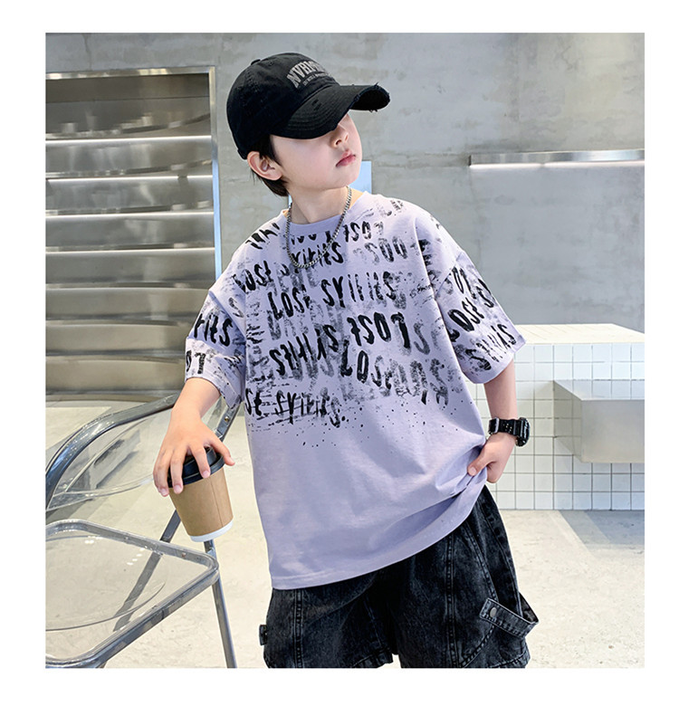 소년 여름 티셔츠 짧은 소매 2025 새로운 T 어린이 티셔츠 여름 느슨한 소년 탑 얇은 튀김 거리 도매스토어 가기