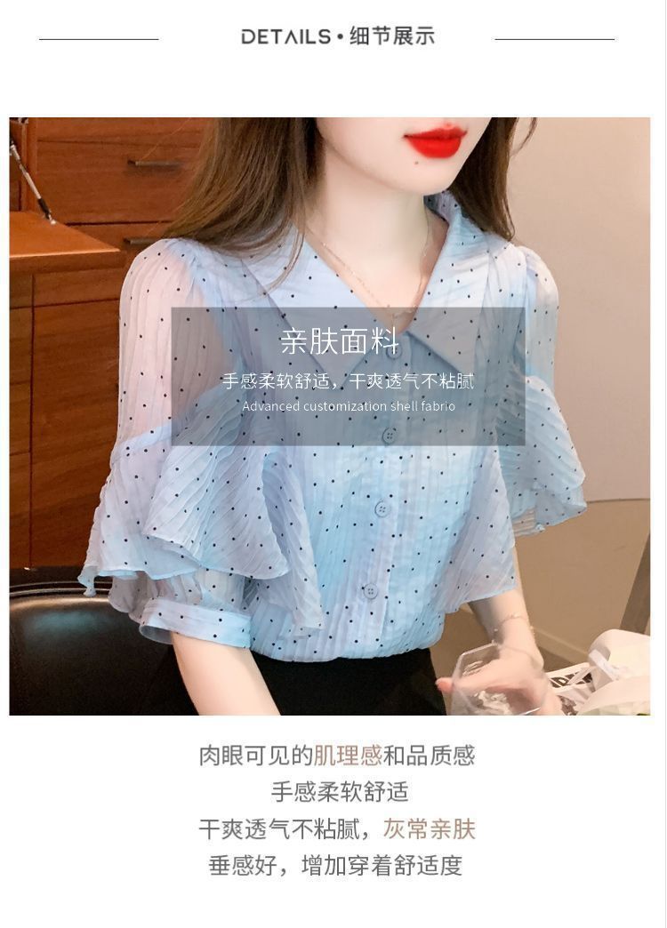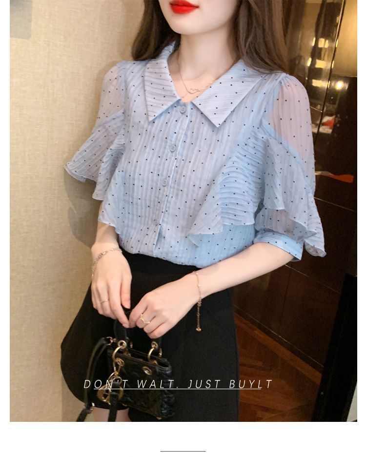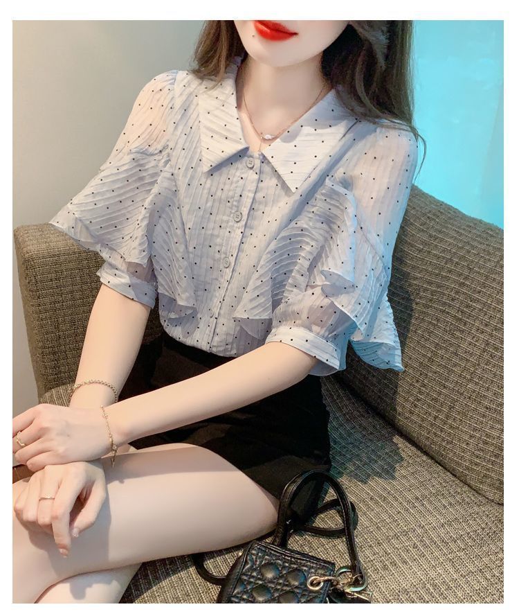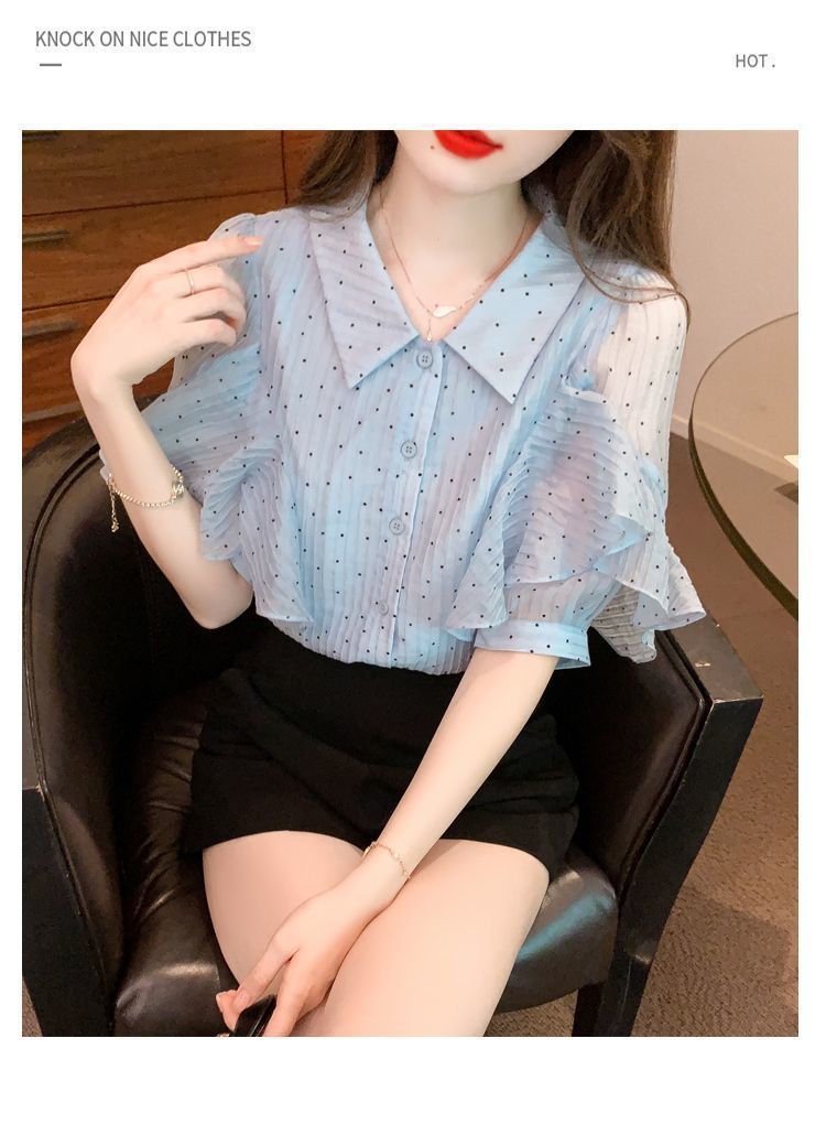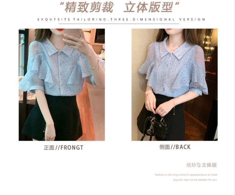 패션 기질 짧은 소매 쉬폰 셔츠 여성 여름 새로운 디자인 감각 외국 스타일 작은 셔츠 얇은 탑스토어 가기