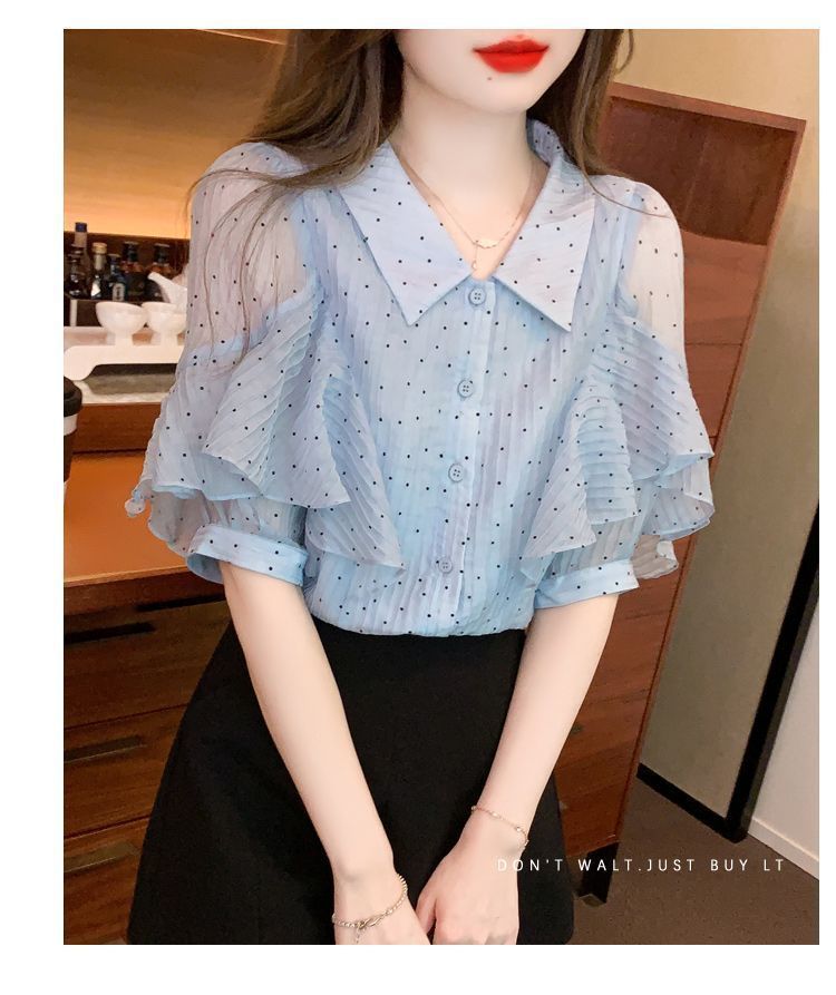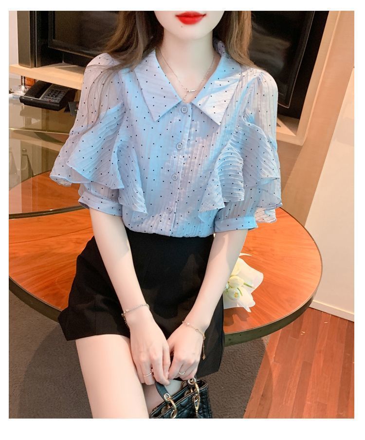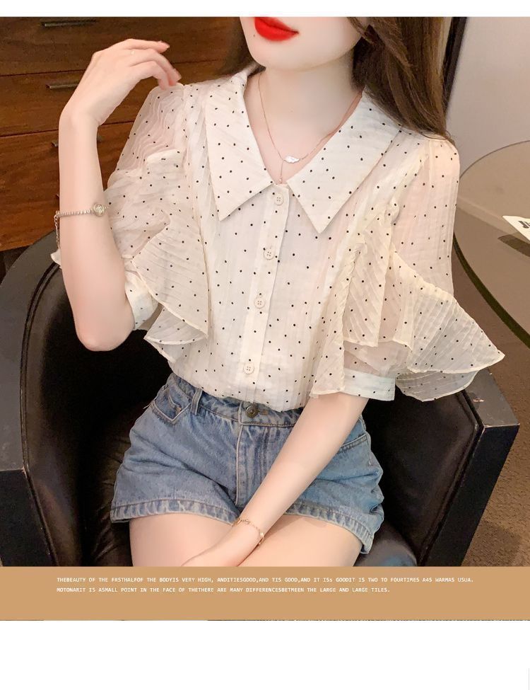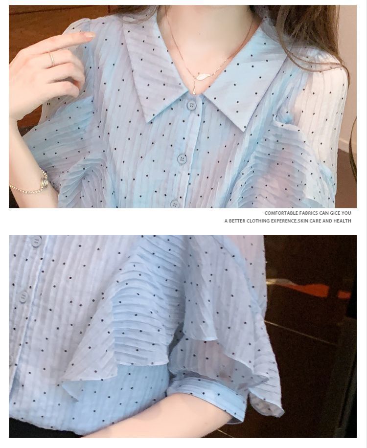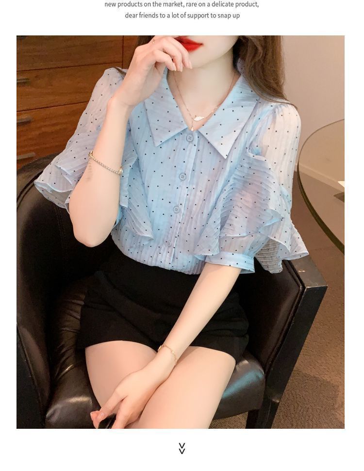 패션 기질 짧은 소매 쉬폰 셔츠 여성 여름 새로운 디자인 감각 외국 스타일 작은 셔츠 얇은 탑스토어 가기