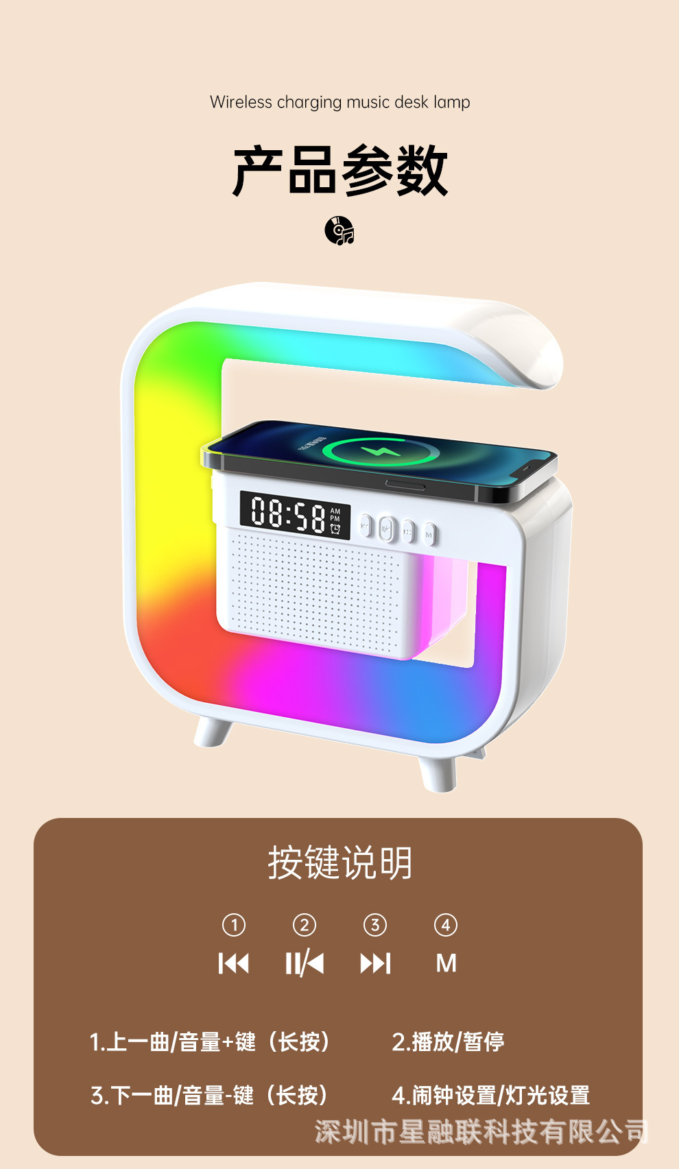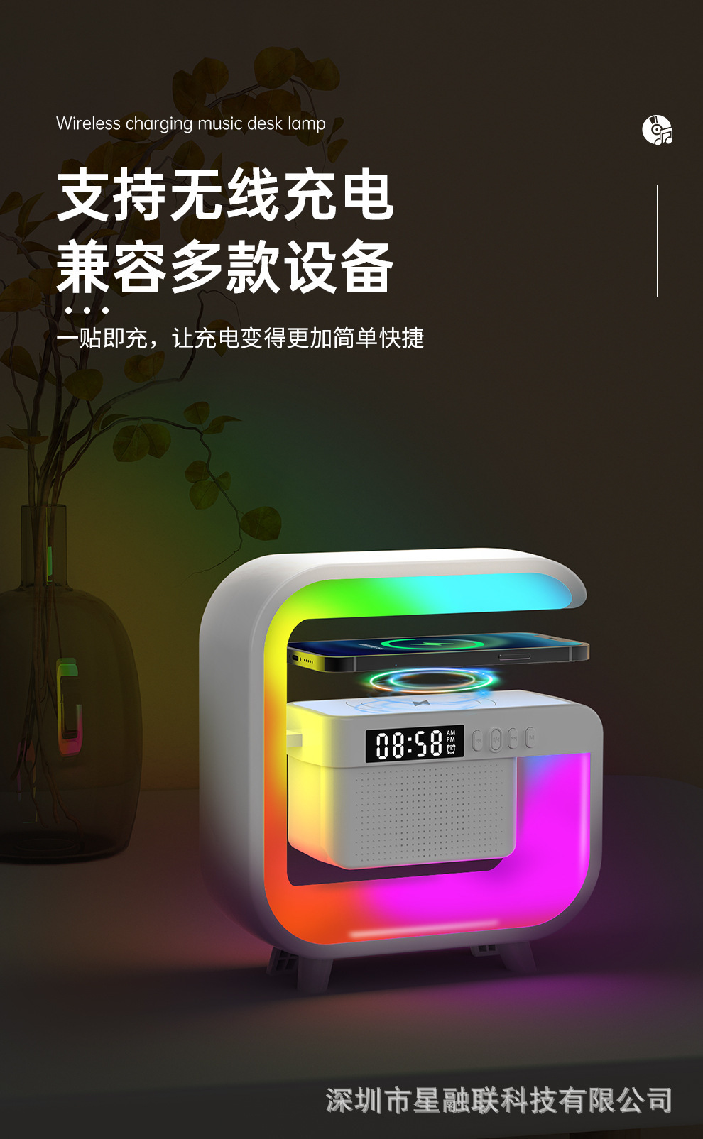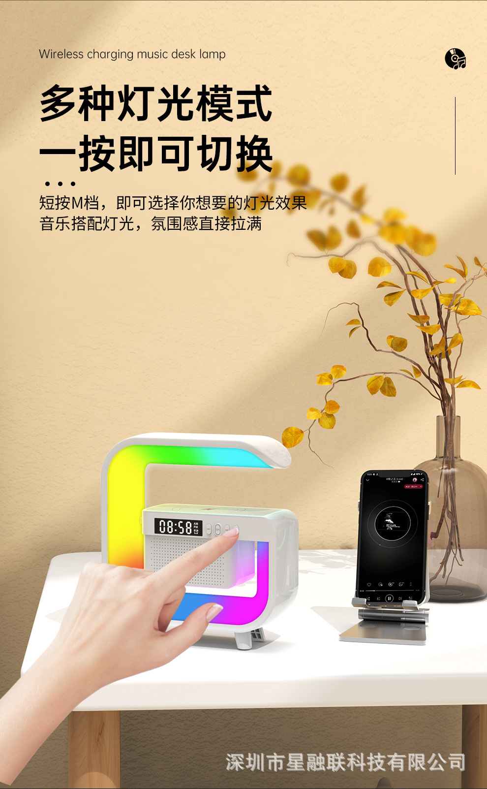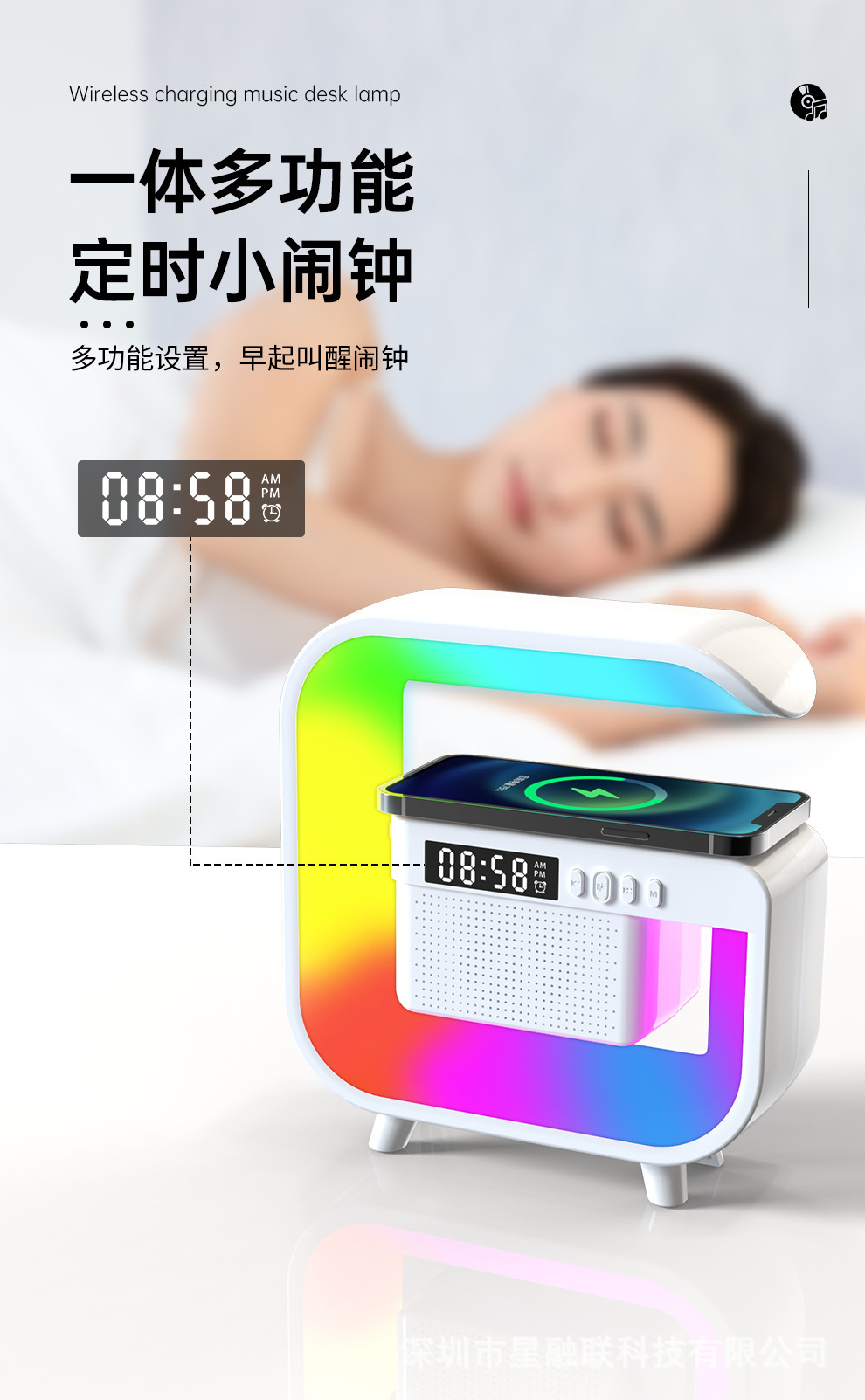 크로스보더 스몰 G 블루투스 스피커 휴대폰 무선 충전기 시계 알람시계 무드등 데스크탑 오디오 선물 휴대용