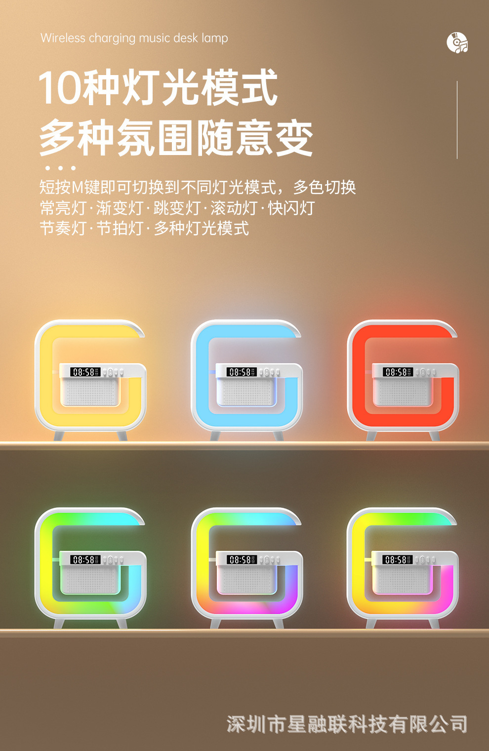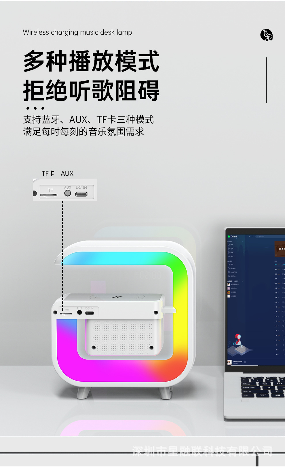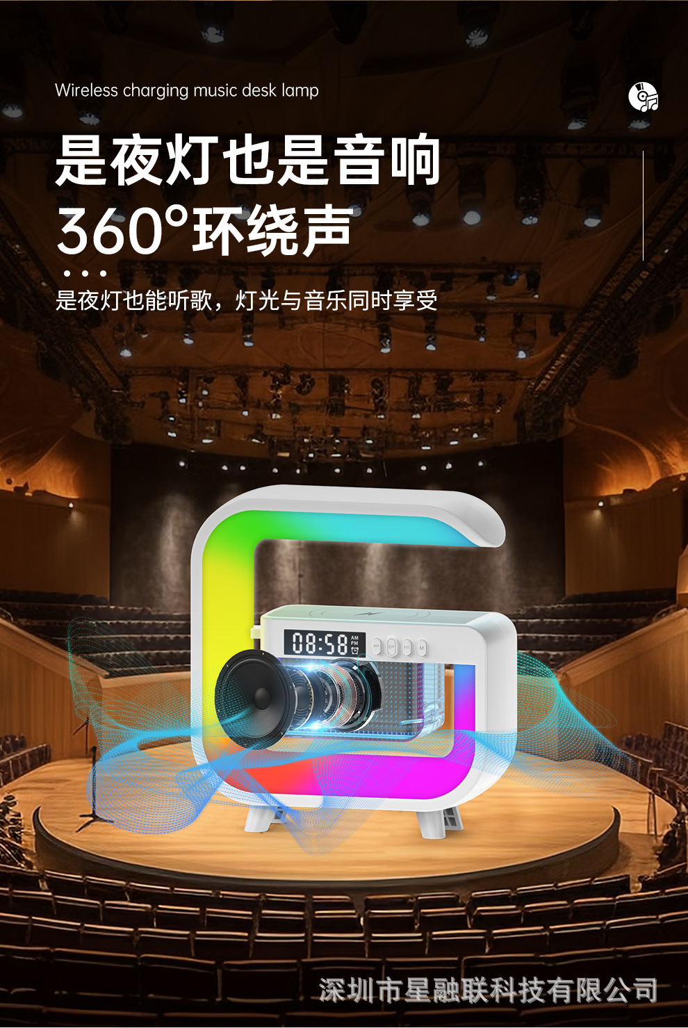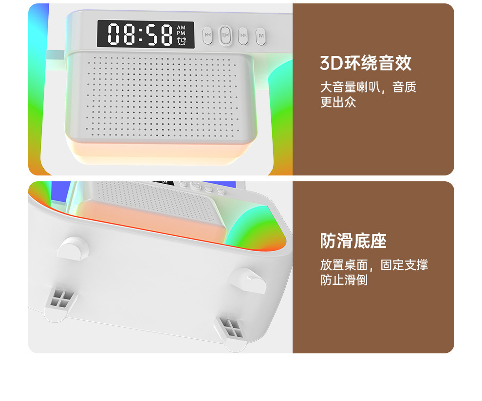 크로스보더 스몰 G 블루투스 스피커 휴대폰 무선 충전기 시계 알람시계 무드등 데스크탑 오디오 선물 휴대용