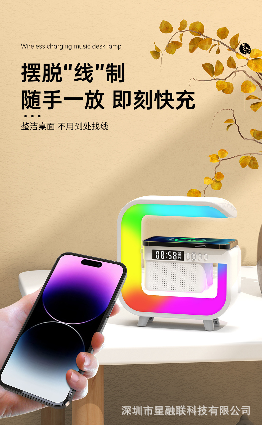 크로스보더 스몰 G 블루투스 스피커 휴대폰 무선 충전기 시계 알람시계 무드등 데스크탑 오디오 선물 휴대용스토어 가기
