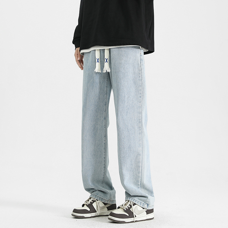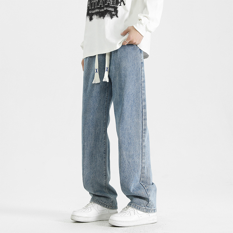 스트레이트 레그 청바지 남성 봄과 가을 패션 브랜드 올 매치 루즈 아메리칸 스타일 하이 스트리트 와이드 레그 팬츠 캐주얼 롱 팬츠 남성