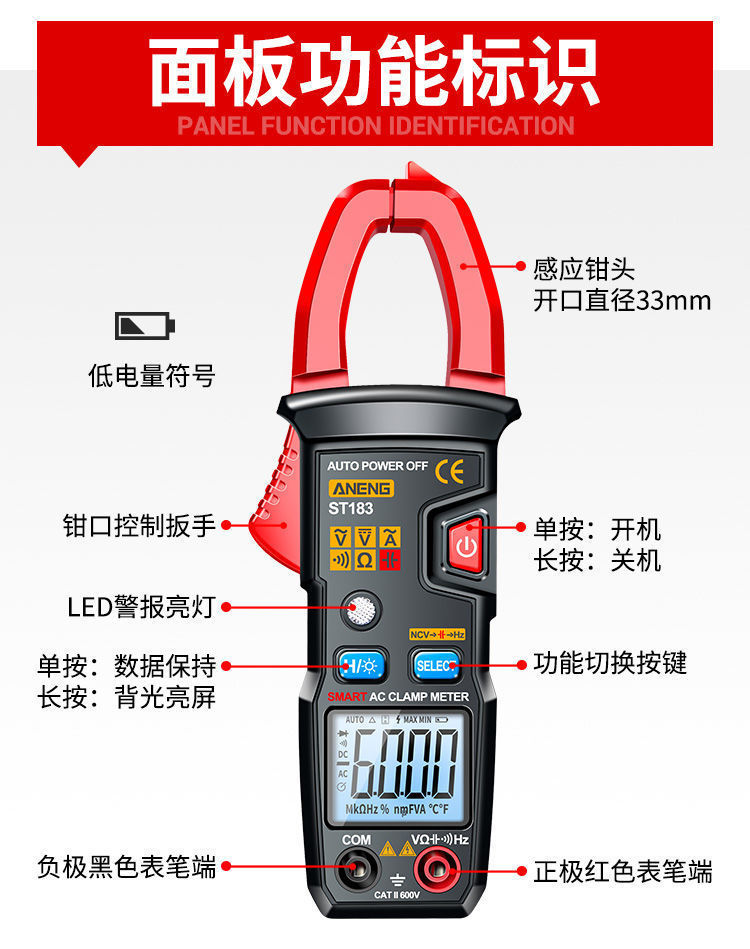 • ST181 [수동 버전/표준 기능] - 표준 구성 [배터리 + 테스트 리드 포함]