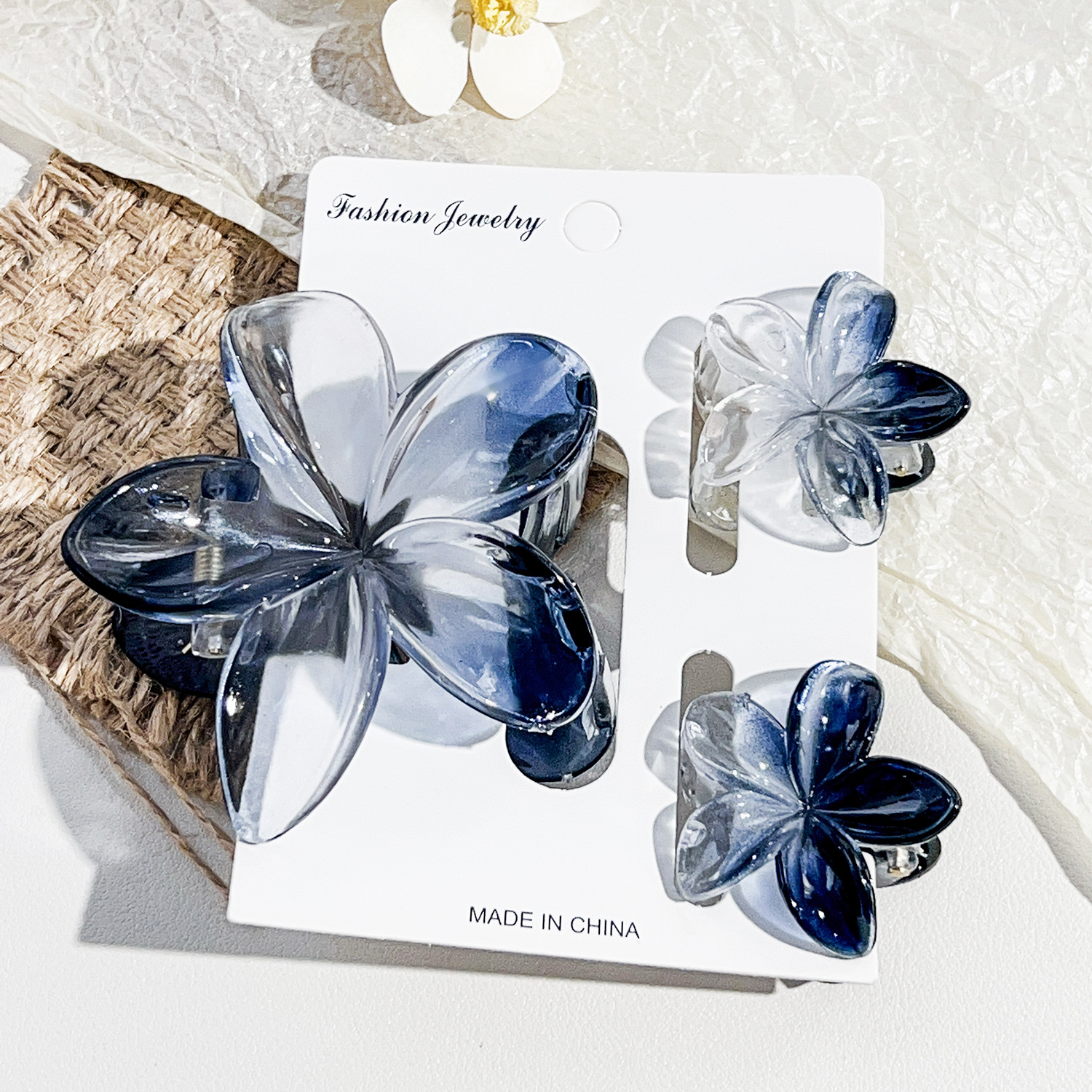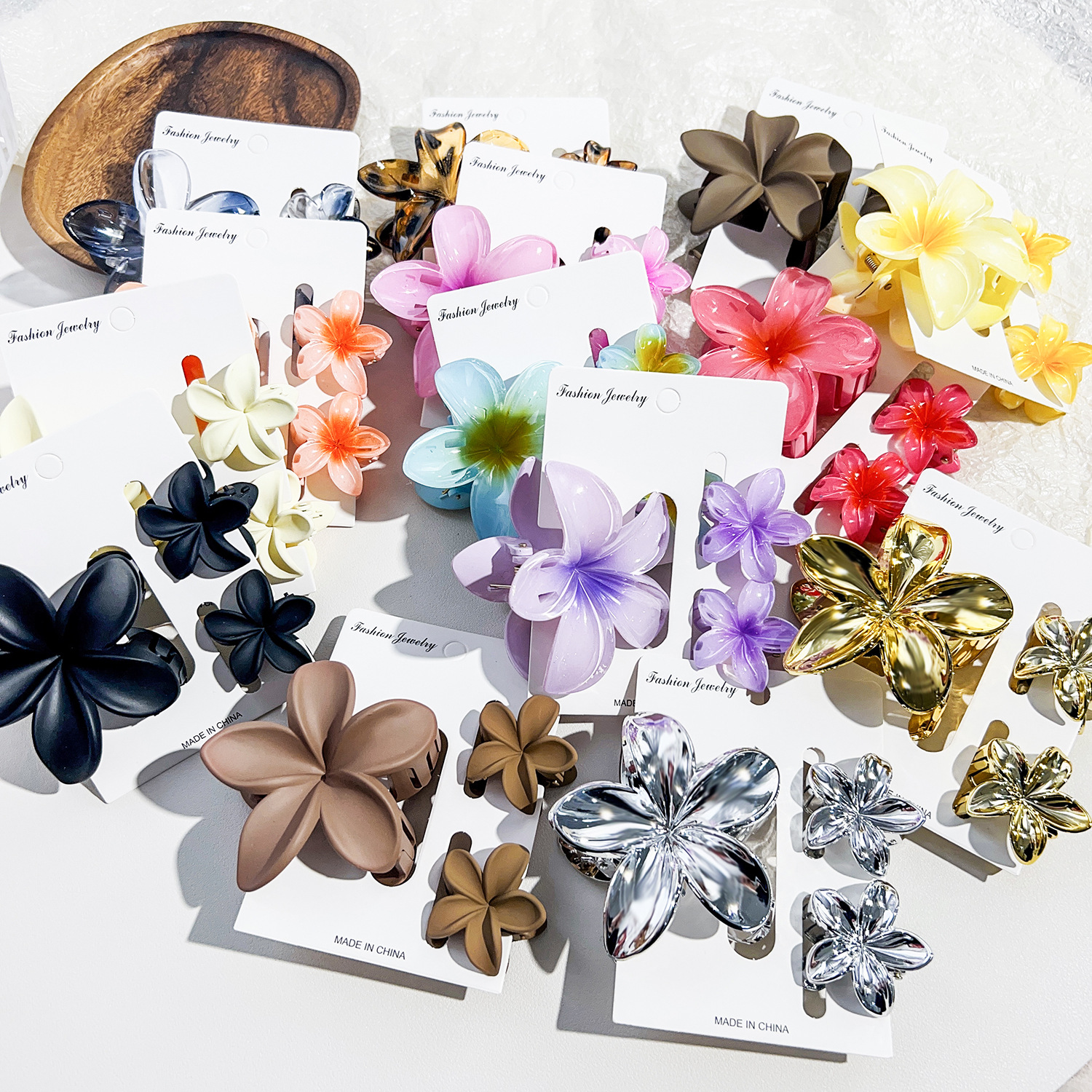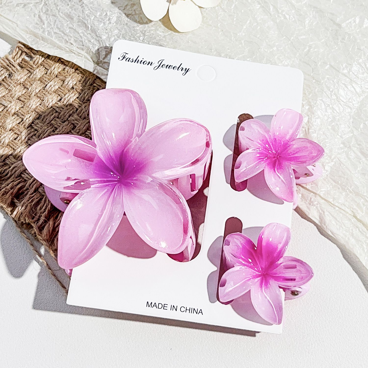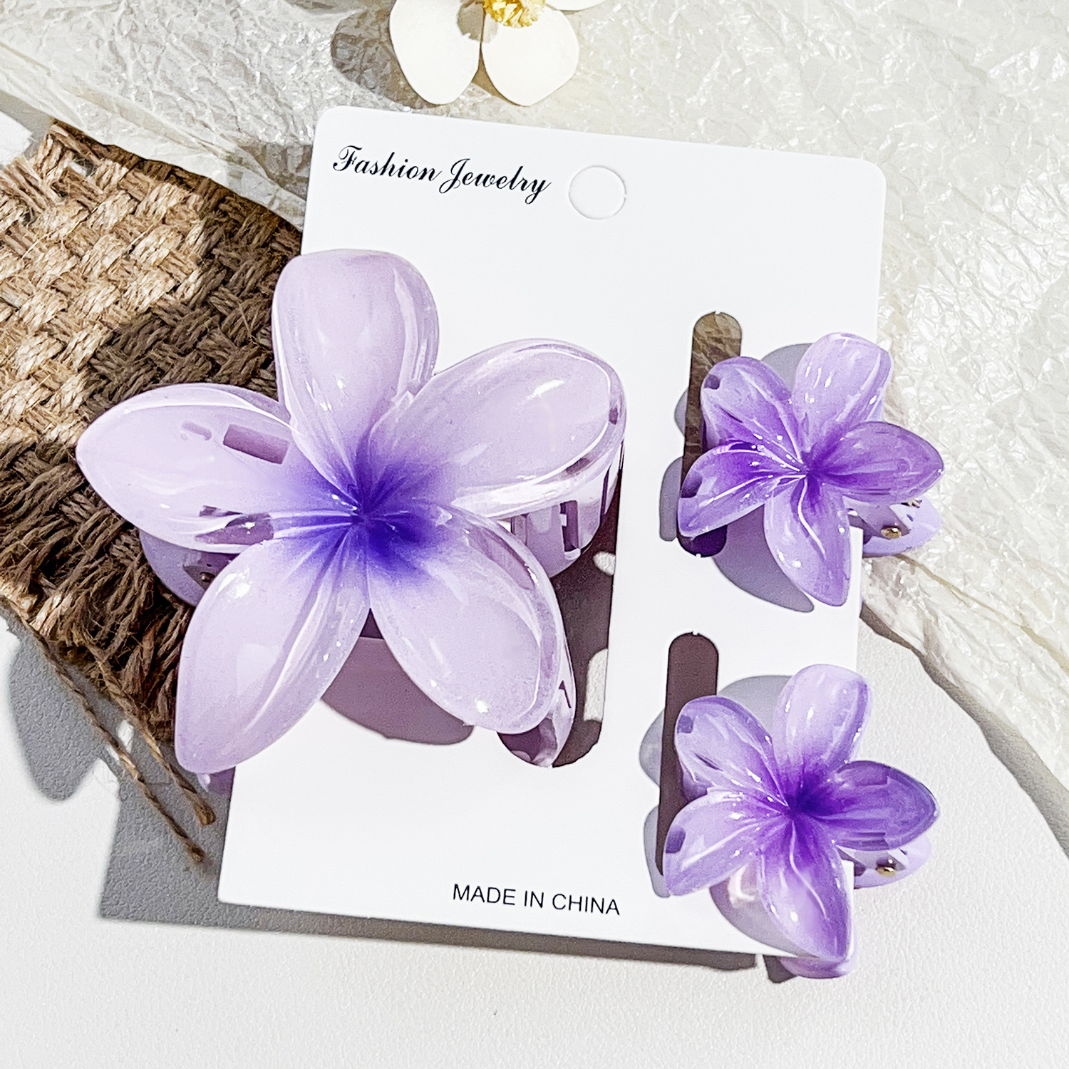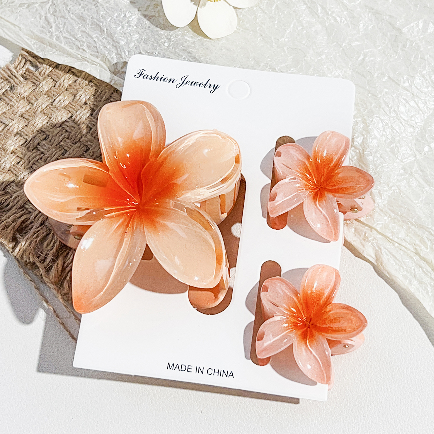국경을 넘나드는 아마존의 베스트셀러 플루메리아 클립 여성용 해변 휴가 스타일 바우히니아 헤어핀 상어 클립 세트 헤어핀스토어 가기