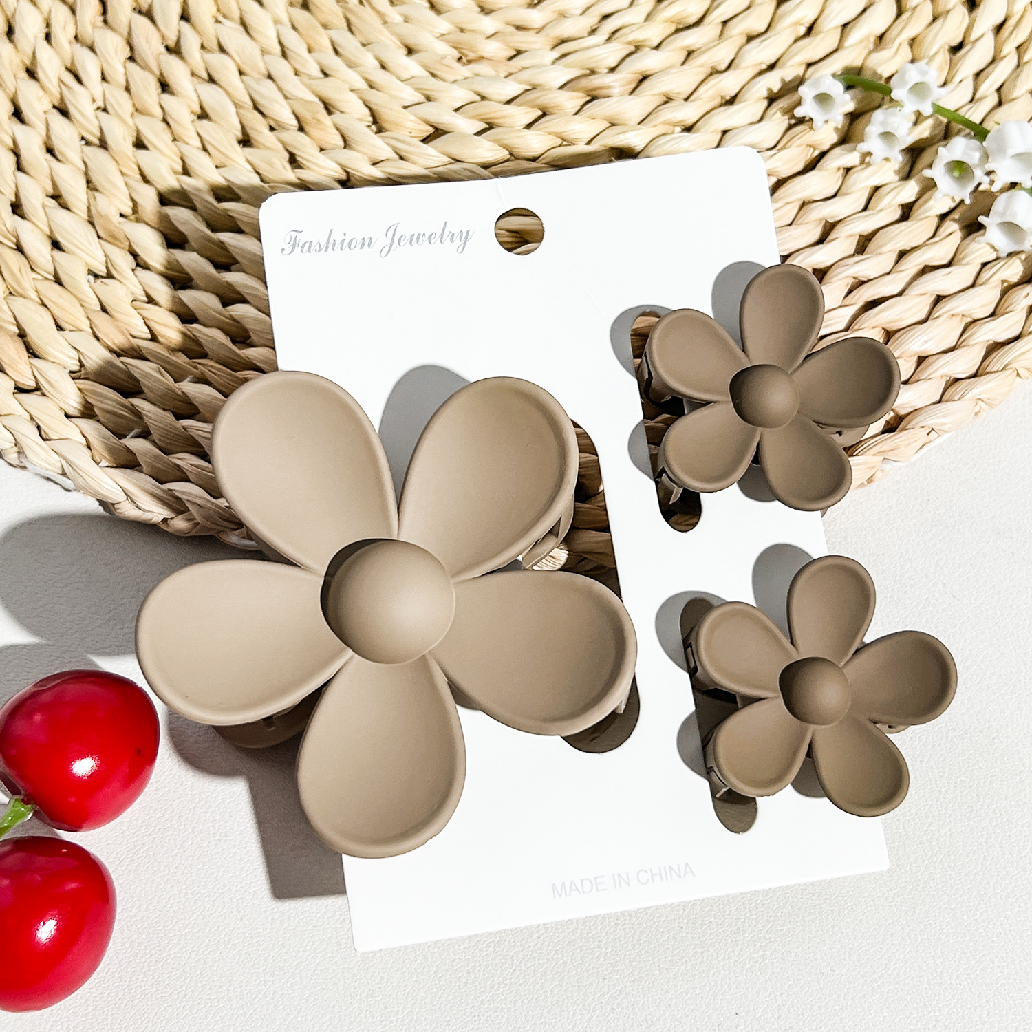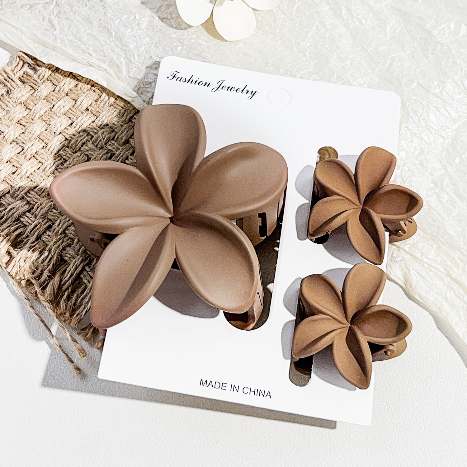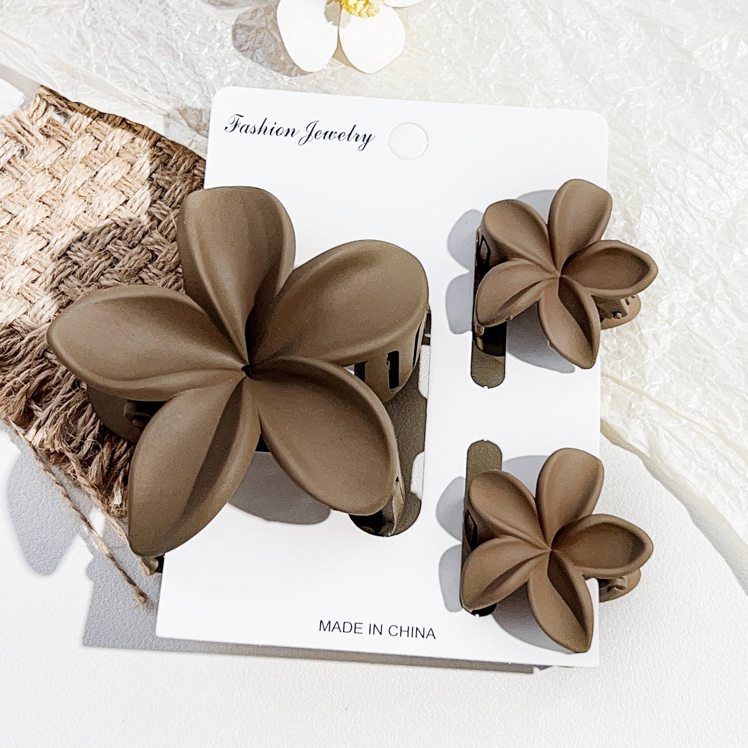 • 플라워 클립 3종 세트 프로스트 다크 커피