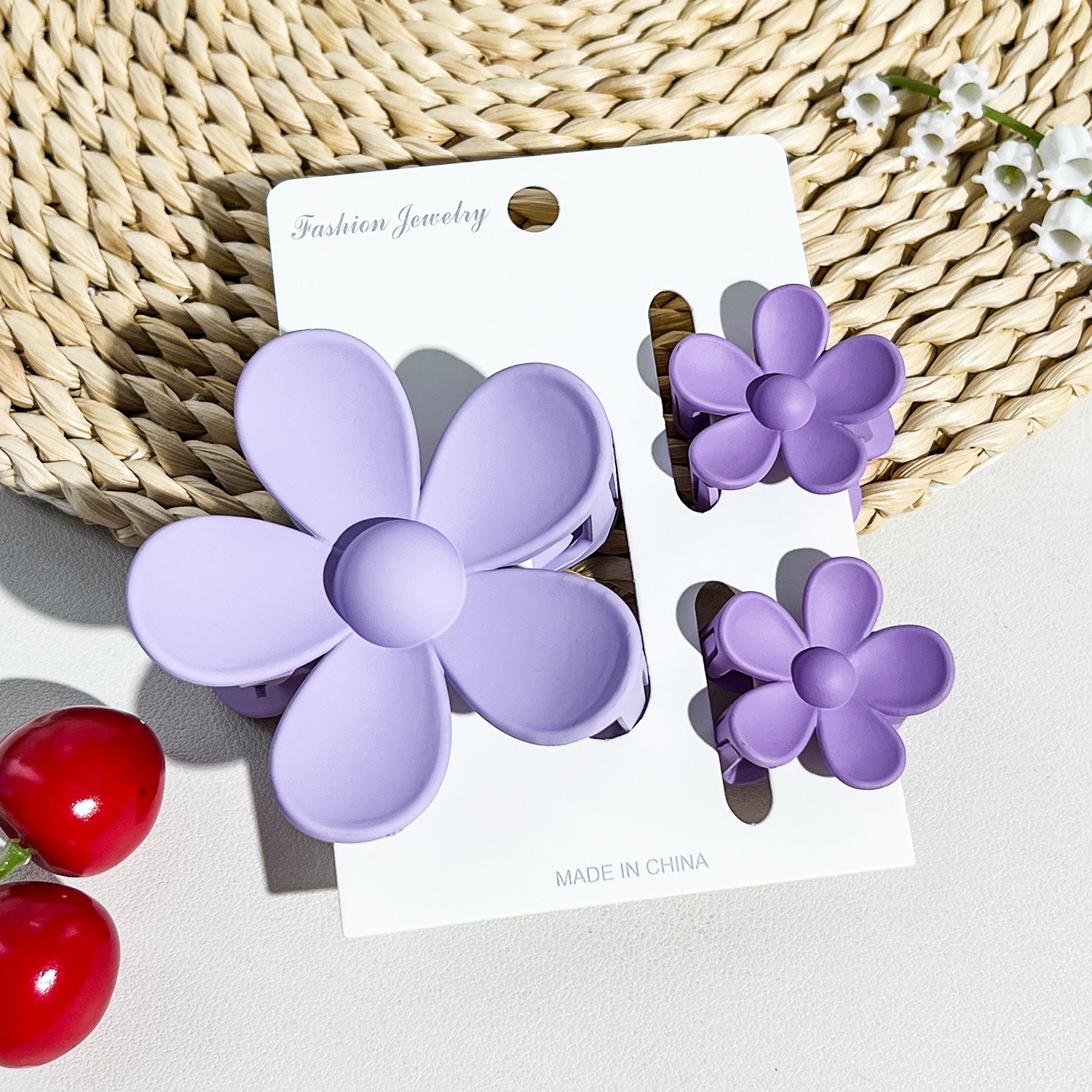 • 플라워 클립 3종 세트 프로스트 라벤더 퍼플