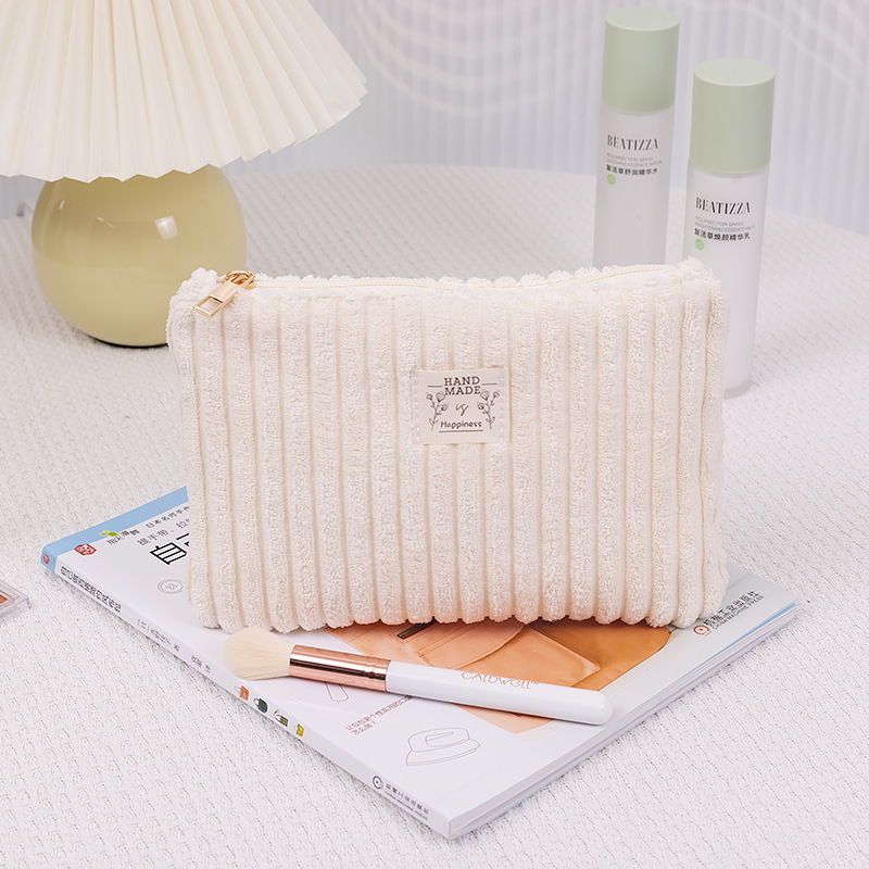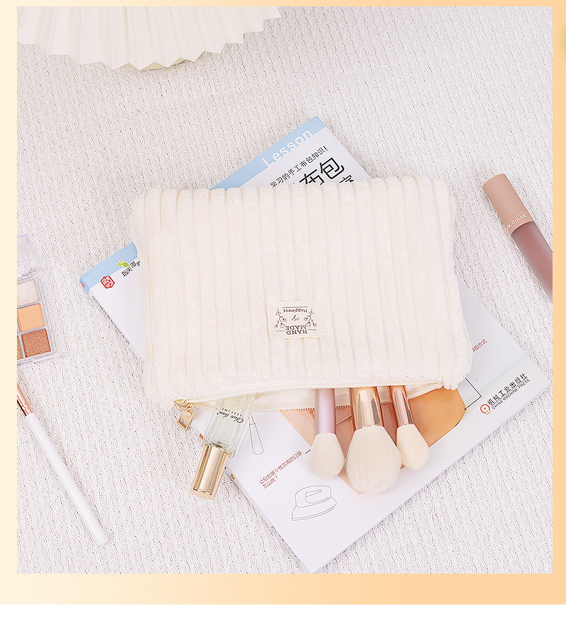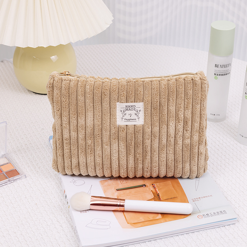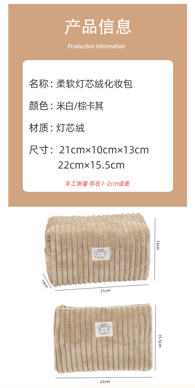 여성을위한 새로운 코듀로이 휴대용 고급 화장품 가방 여행 대용량 화장품 세면 용품 보관 가방 2 피스 세트
