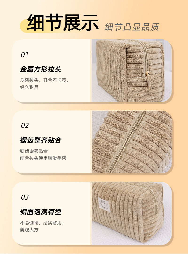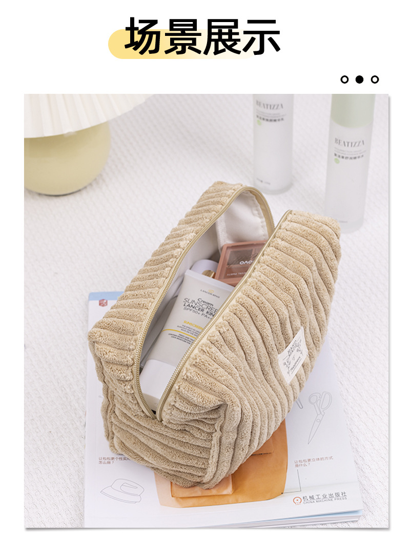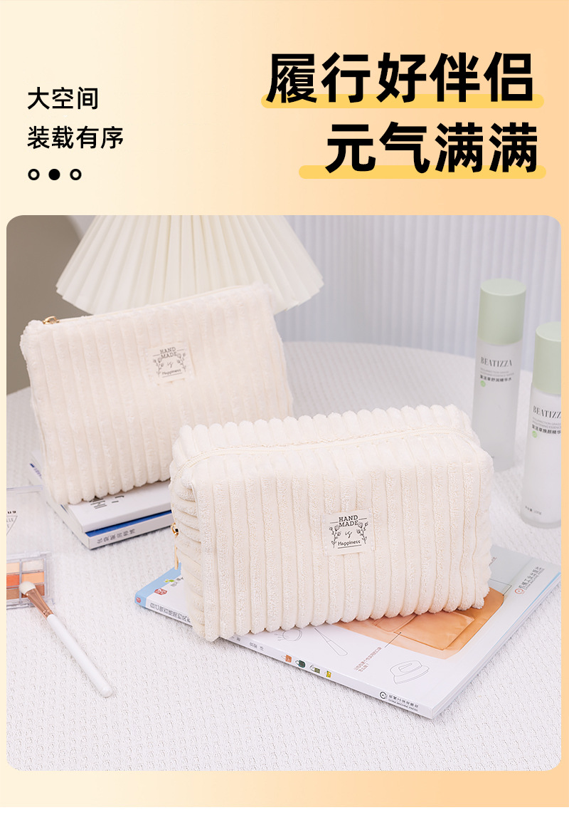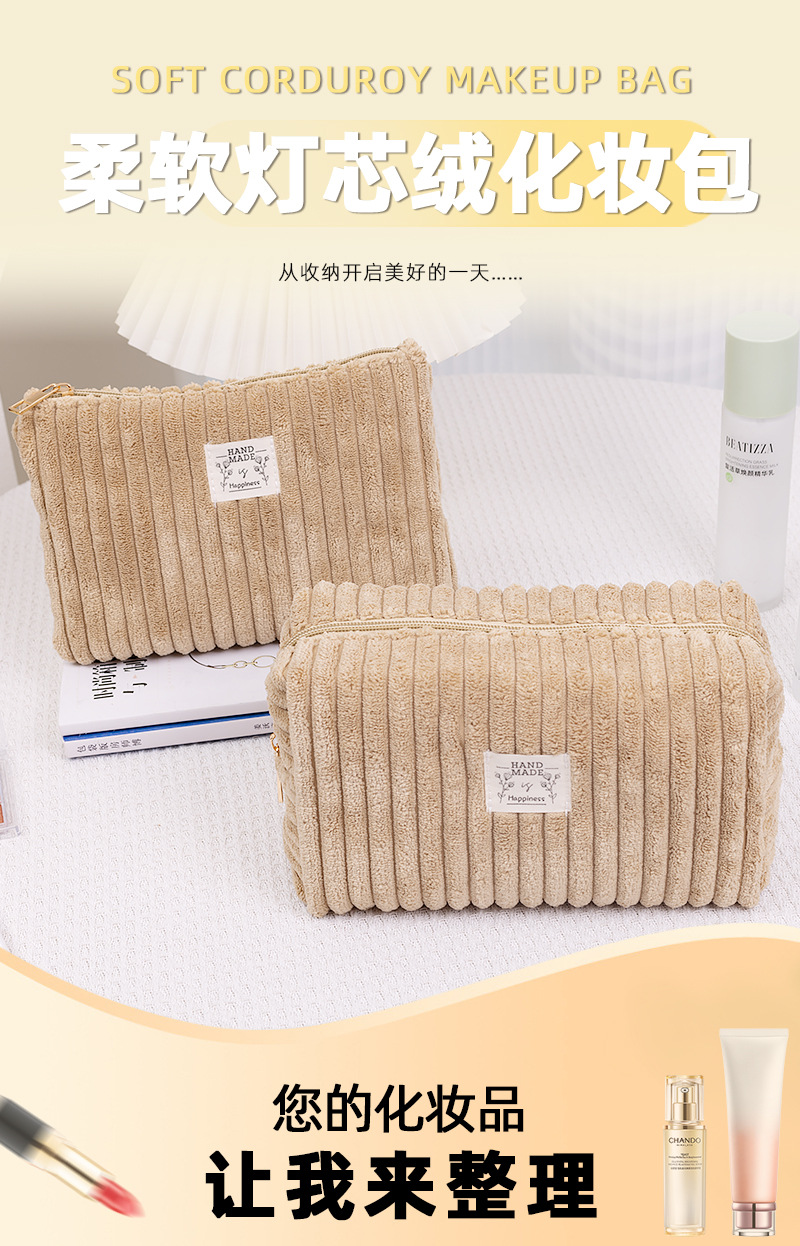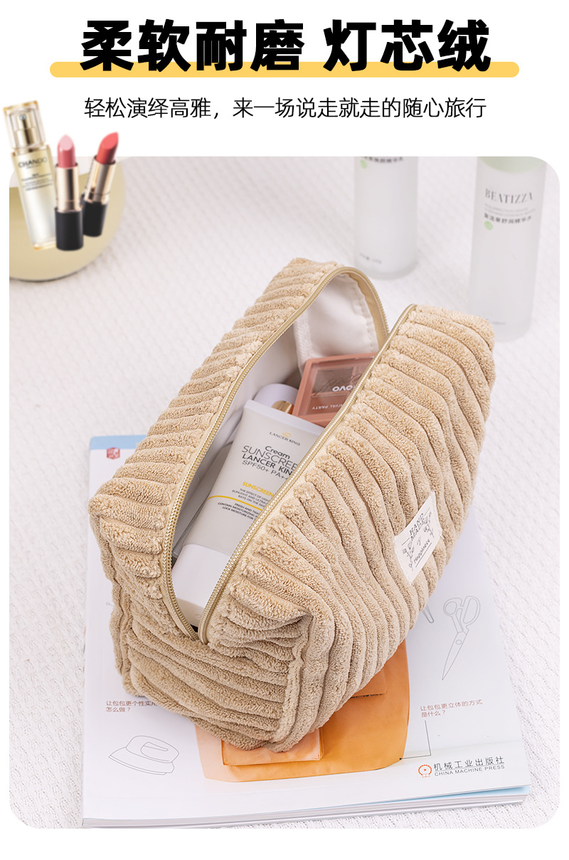 여성을위한 새로운 코듀로이 휴대용 고급 화장품 가방 여행 대용량 화장품 세면 용품 보관 가방 2 피스 세트스토어 가기