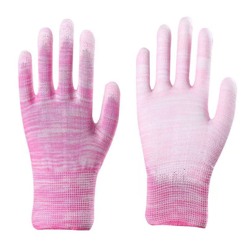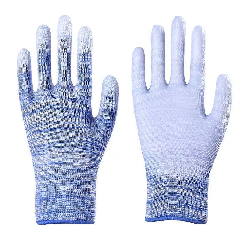 흰색 PU 코팅 손바닥 줄무늬 코팅 손바닥 내마모성 미끄럼 방지 통기성 정전기 방지 고무 원예 보호 PU 장갑