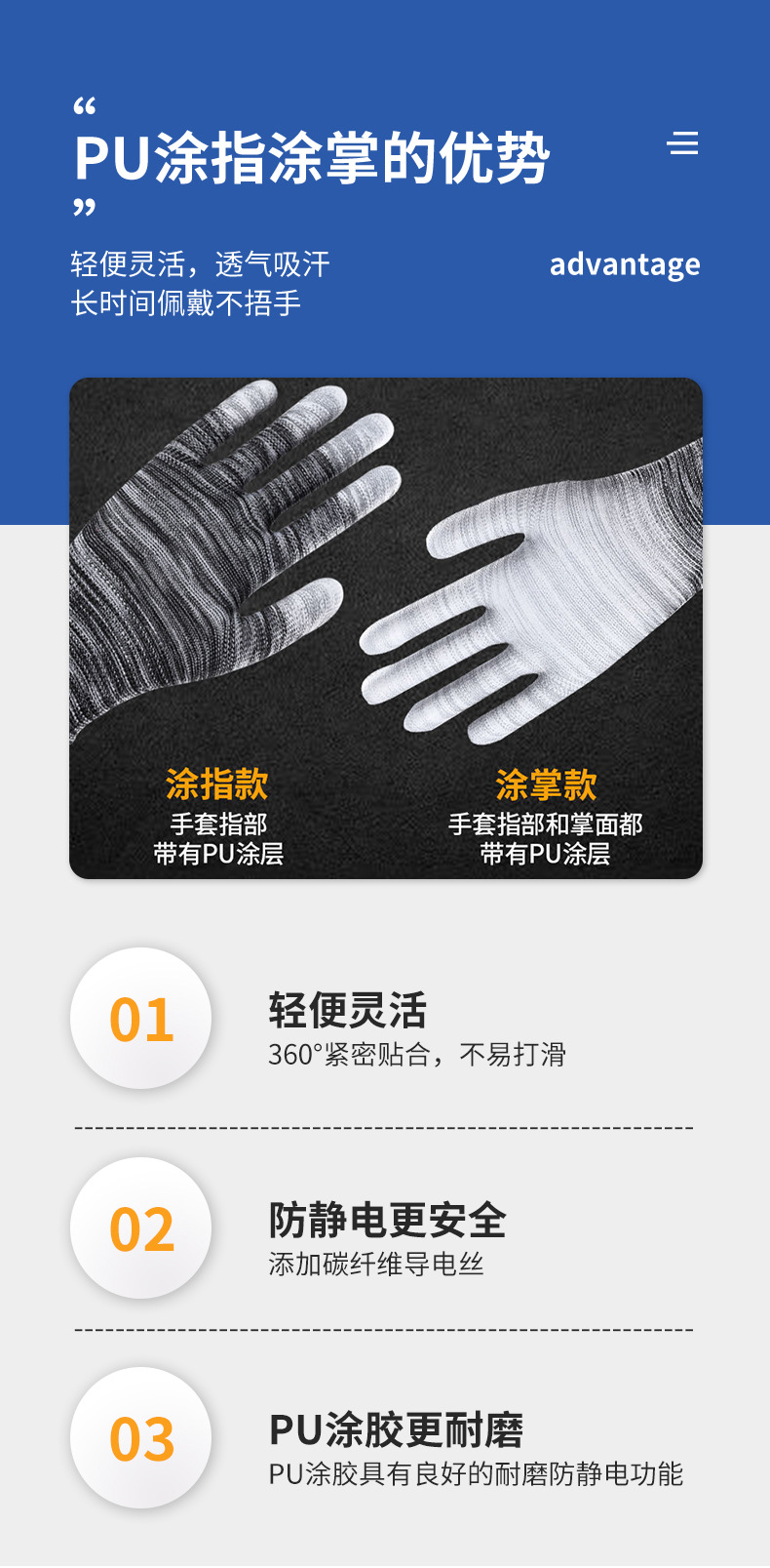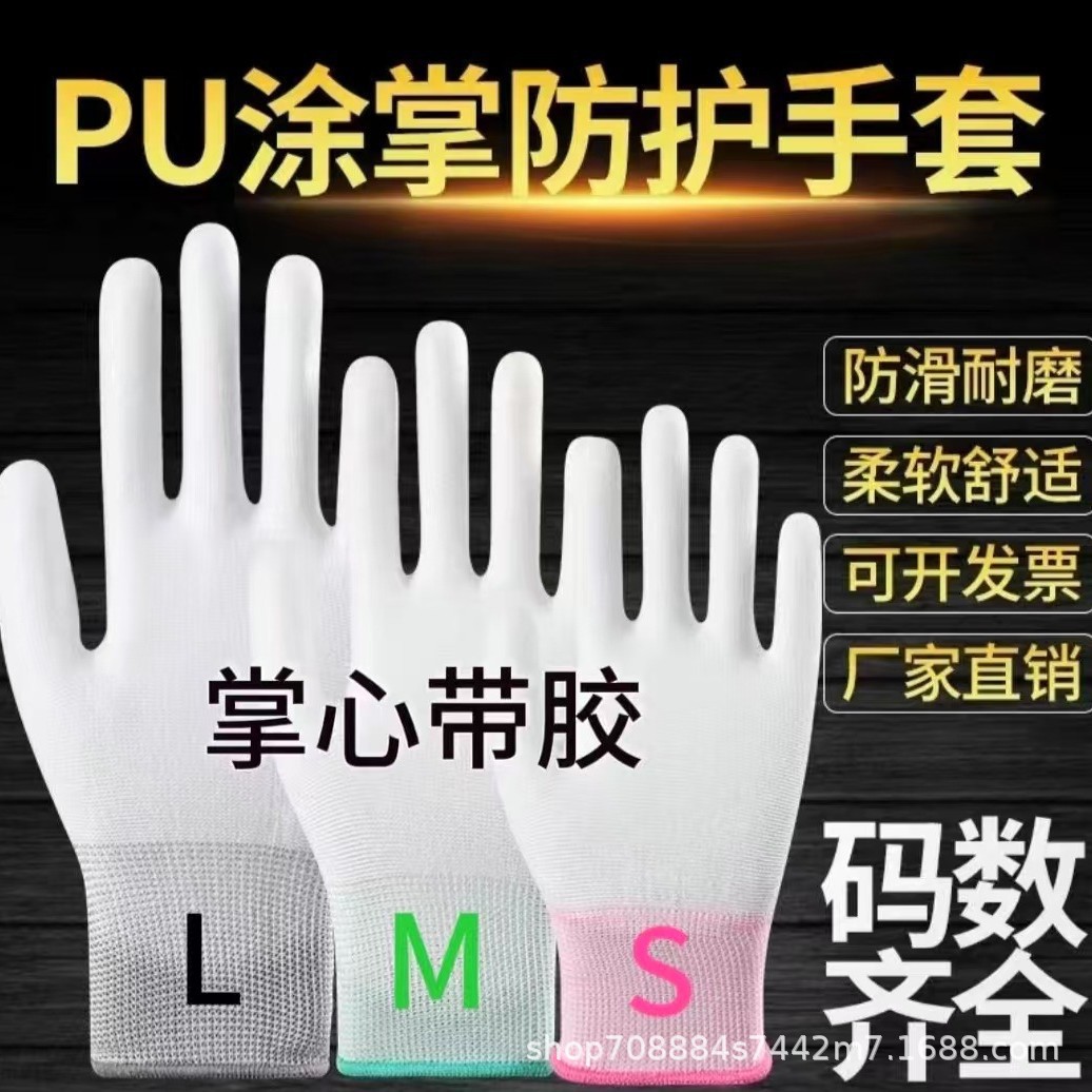 흰색 PU 코팅 손바닥 줄무늬 코팅 손바닥 내마모성 미끄럼 방지 통기성 정전기 방지 고무 원예 보호 PU 장갑스토어 가기