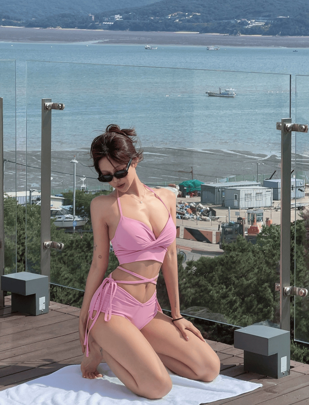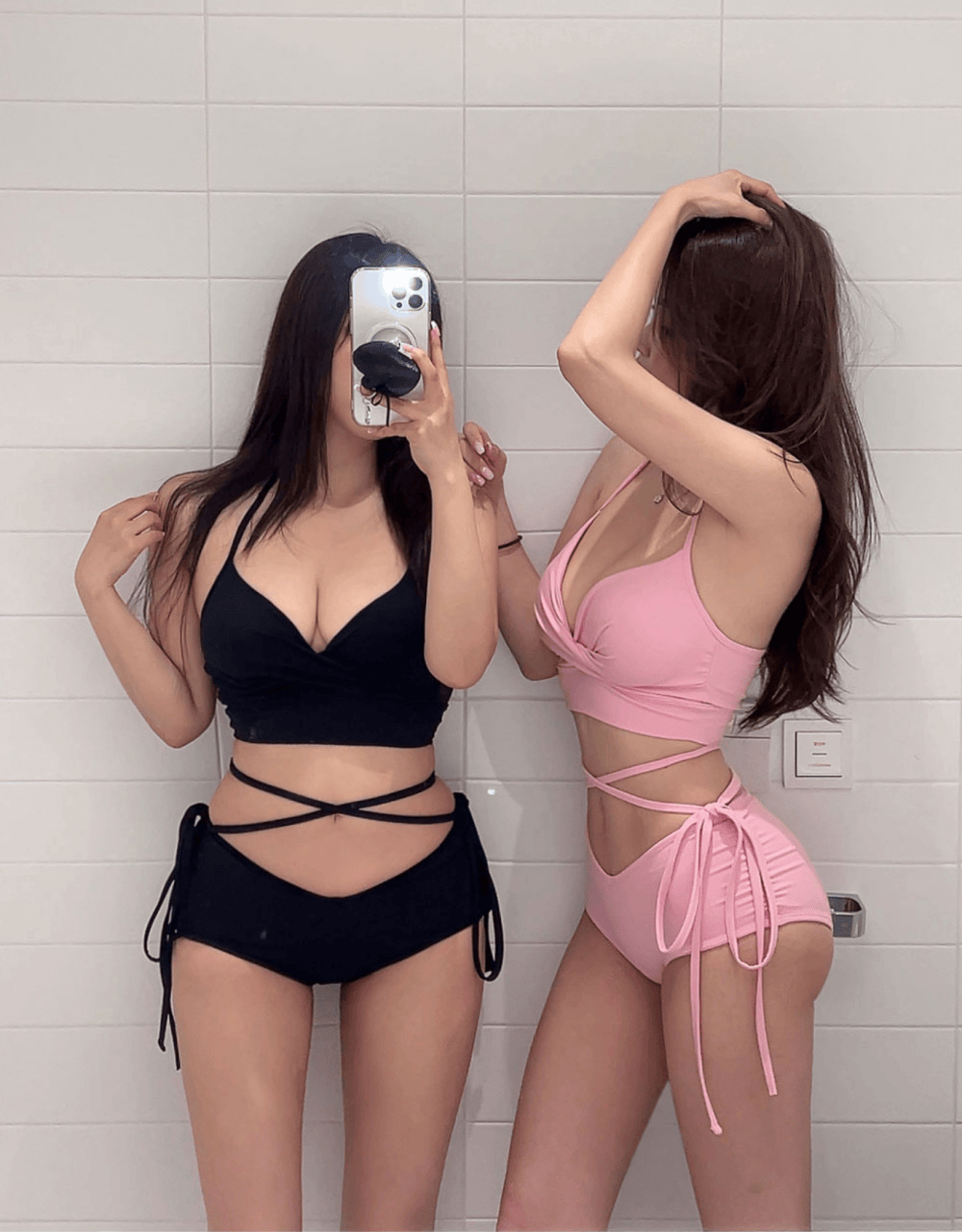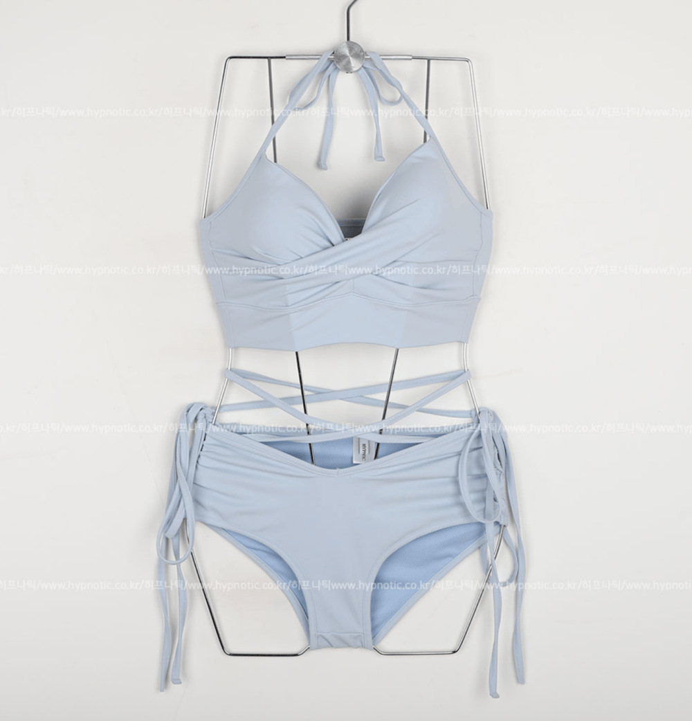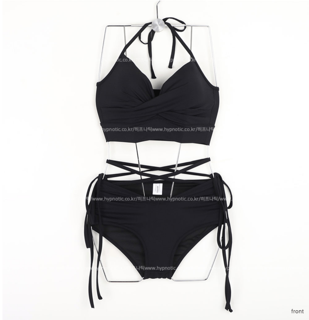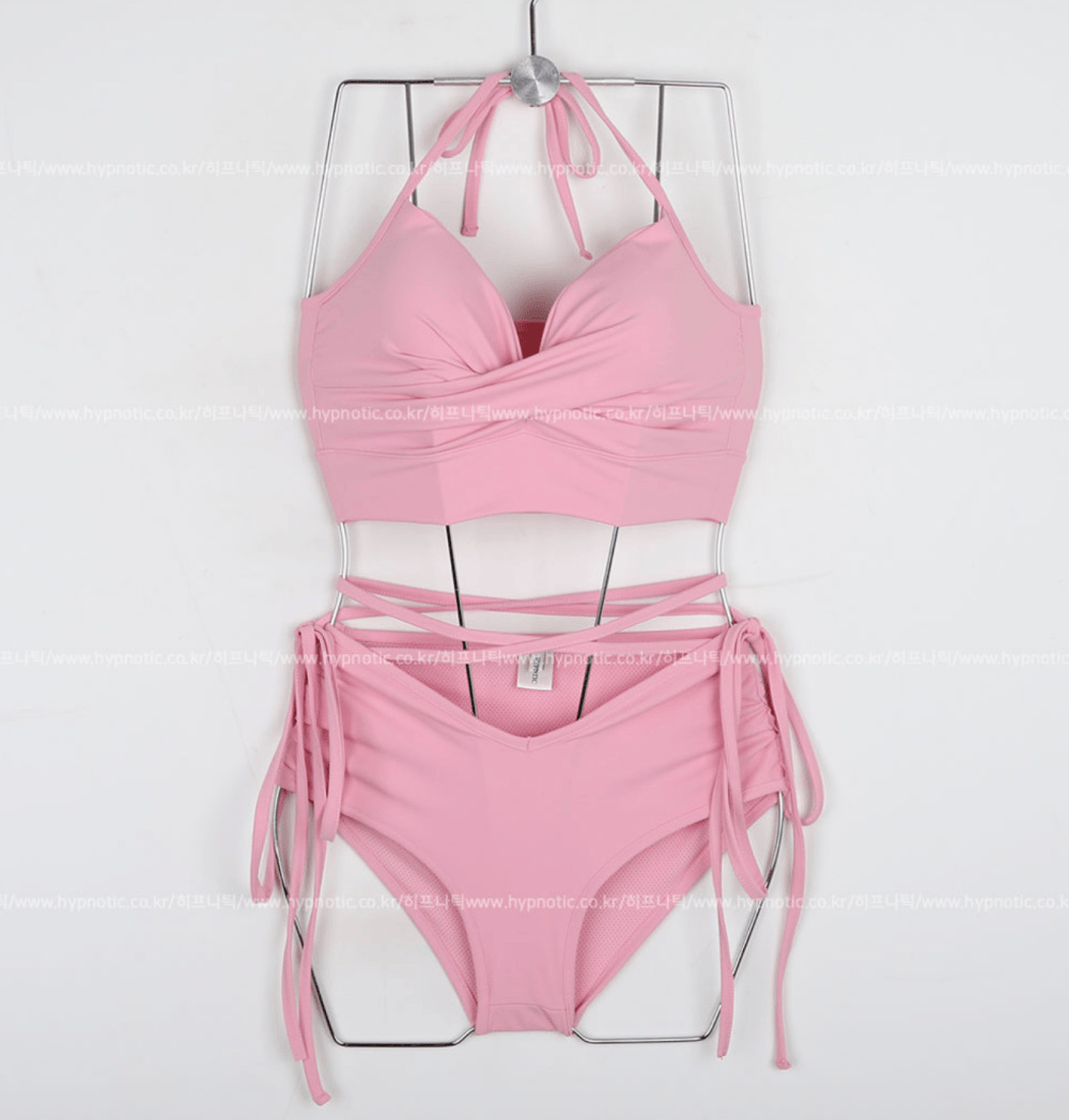 한국 인 스타일 솔리드 컬러 빅 가슴 모임 자매 여자 친구 스타일 순수한 욕망 스타일 섹시한 크로스 스플릿 수영복 여성용스토어 가기
