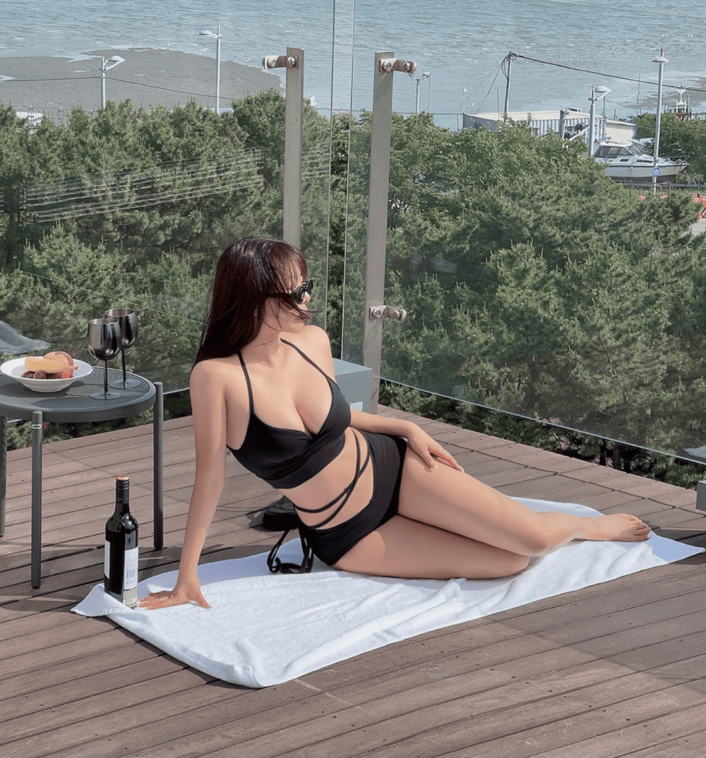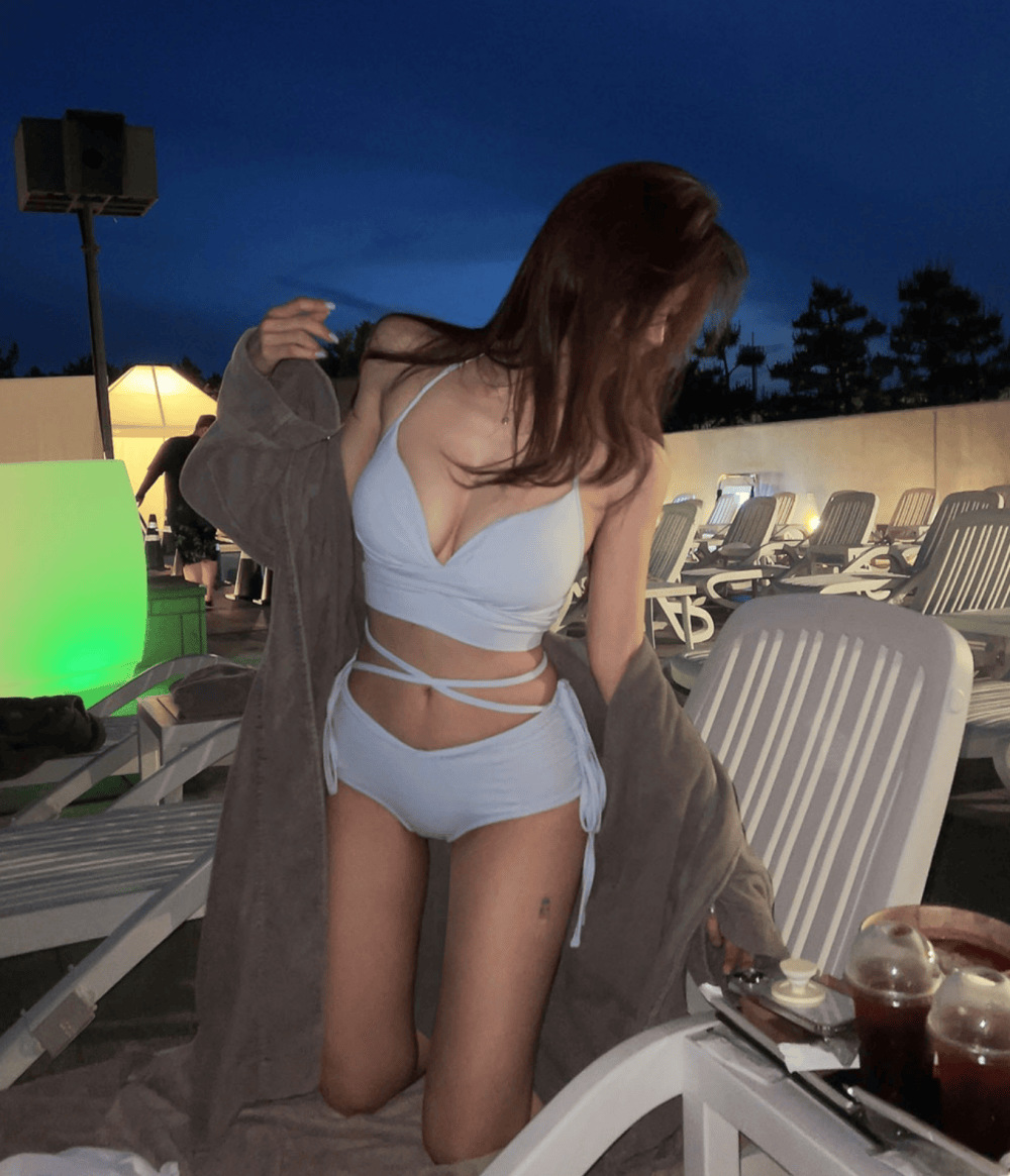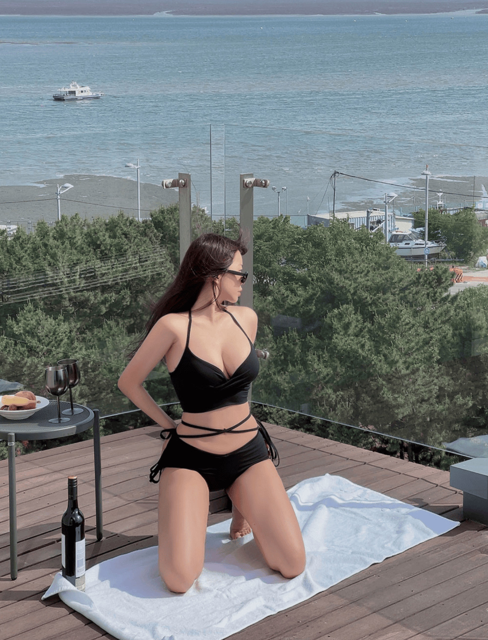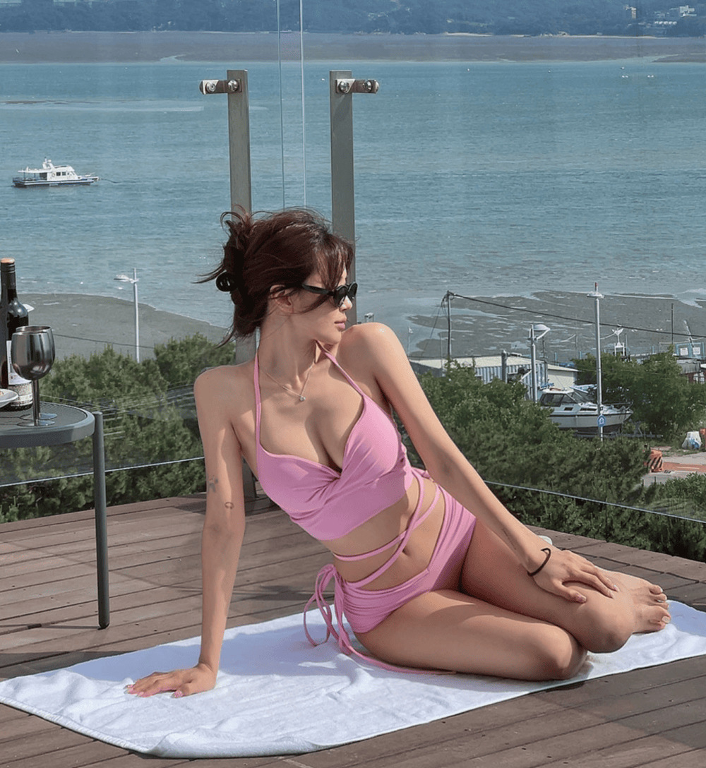 한국 인 스타일 솔리드 컬러 빅 가슴 모임 자매 여자 친구 스타일 순수한 욕망 스타일 섹시한 크로스 스플릿 수영복 여성용스토어 가기