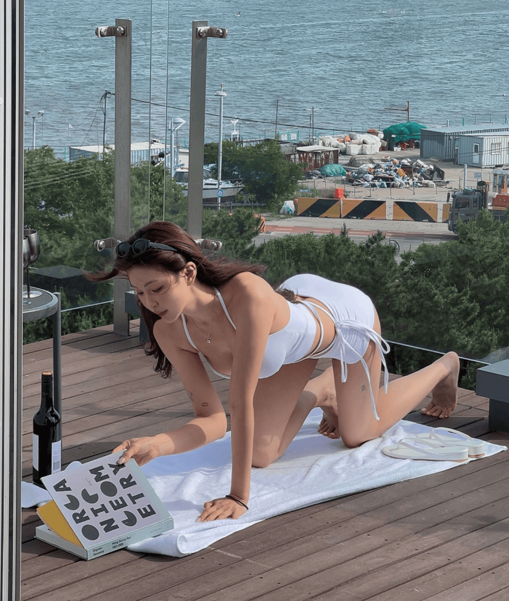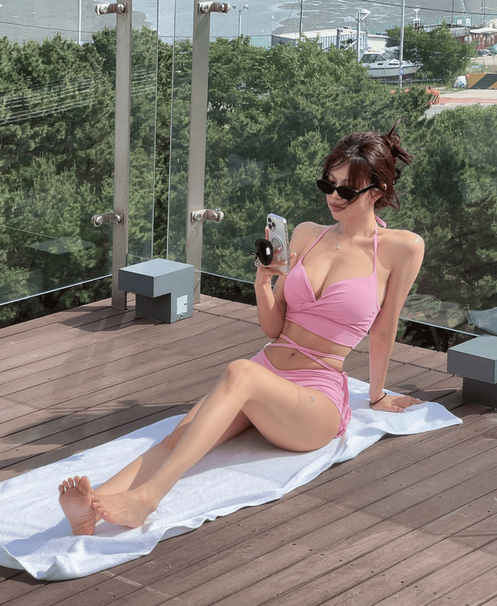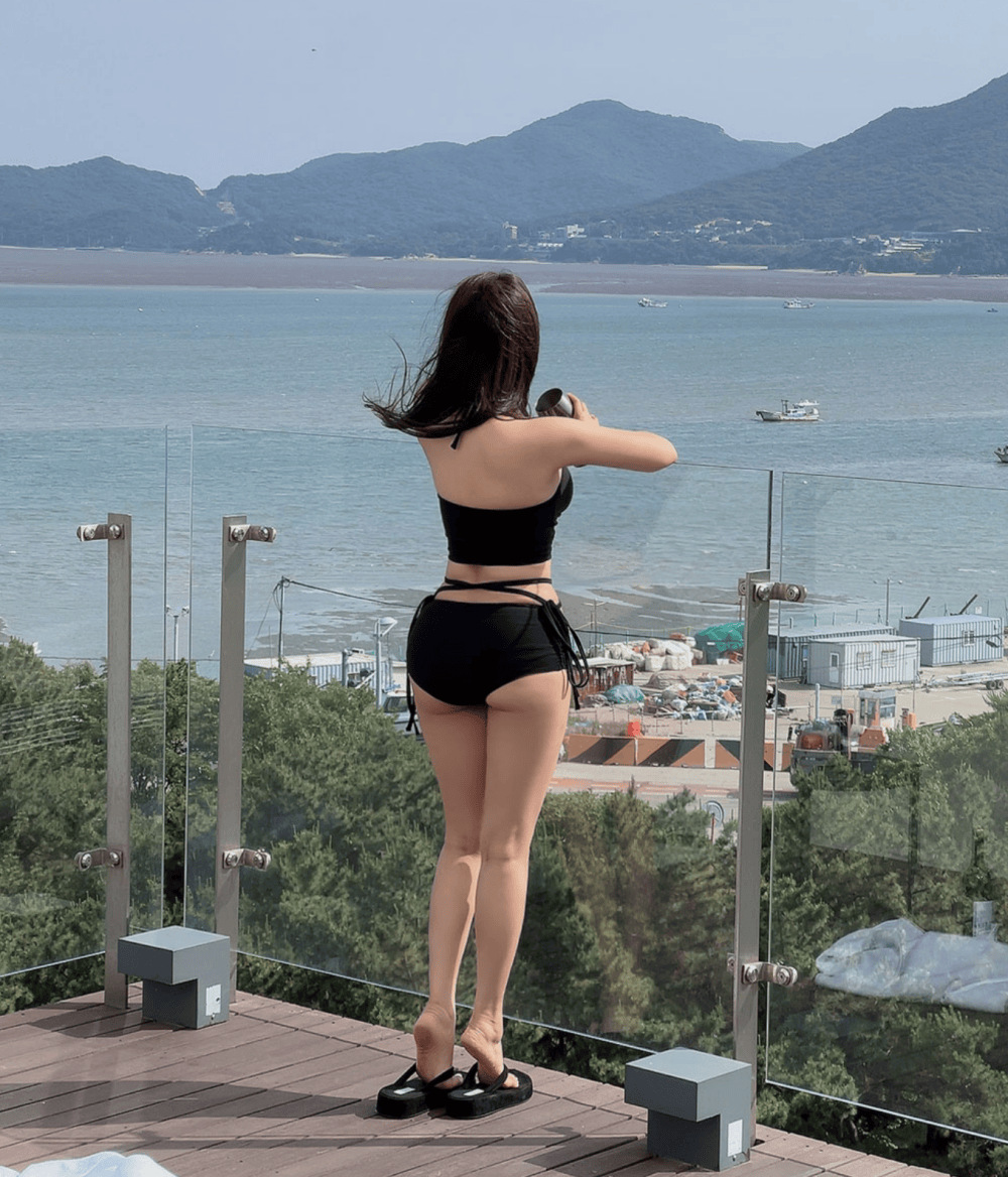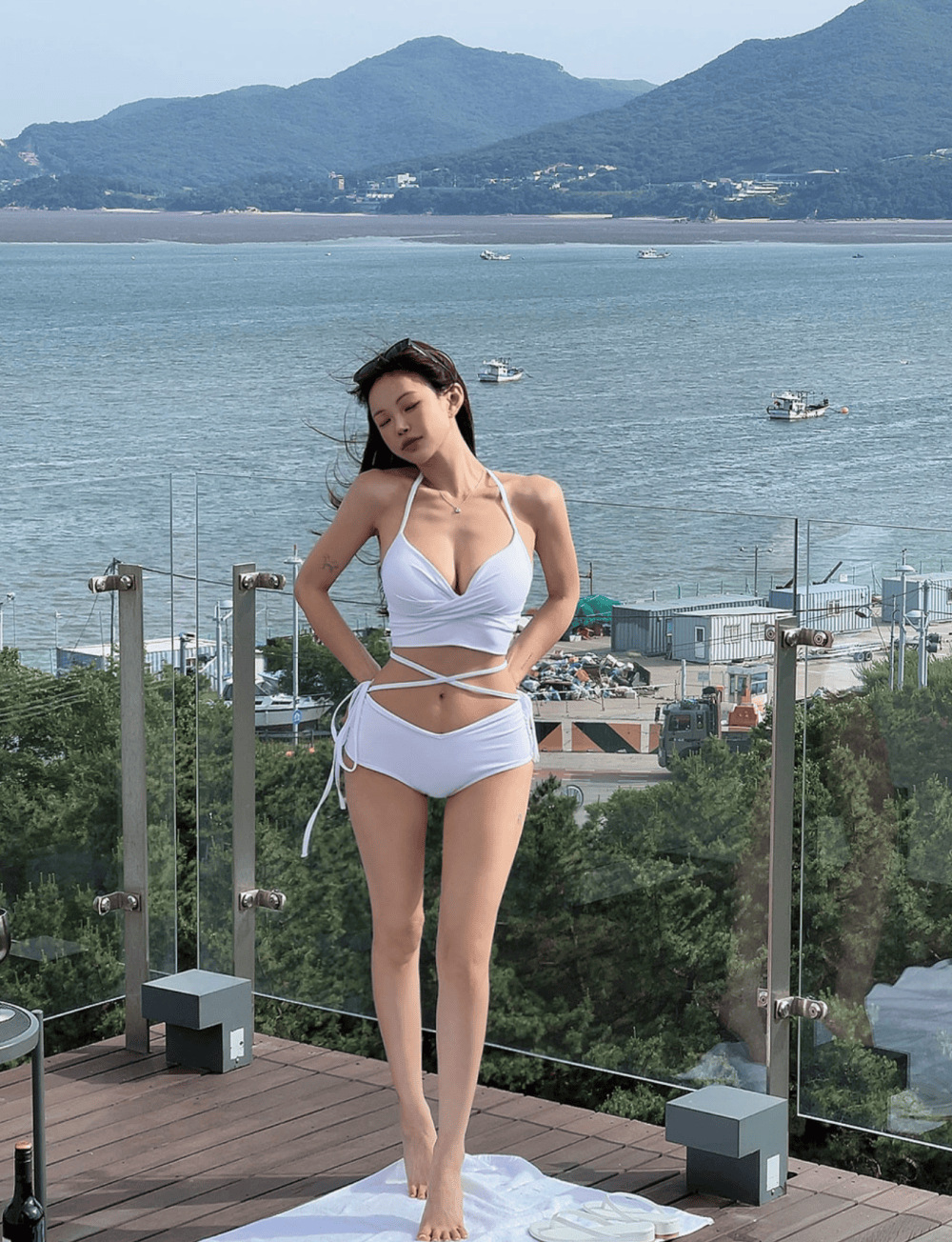 한국 인 스타일 솔리드 컬러 빅 가슴 모임 자매 여자 친구 스타일 순수한 욕망 스타일 섹시한 크로스 스플릿 수영복 여성용스토어 가기