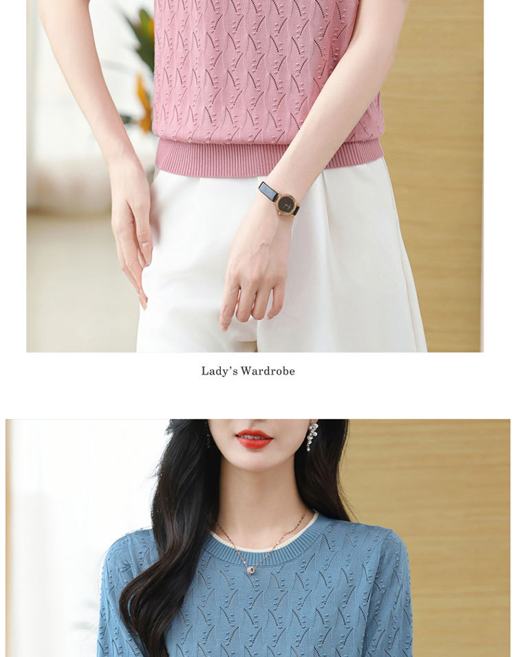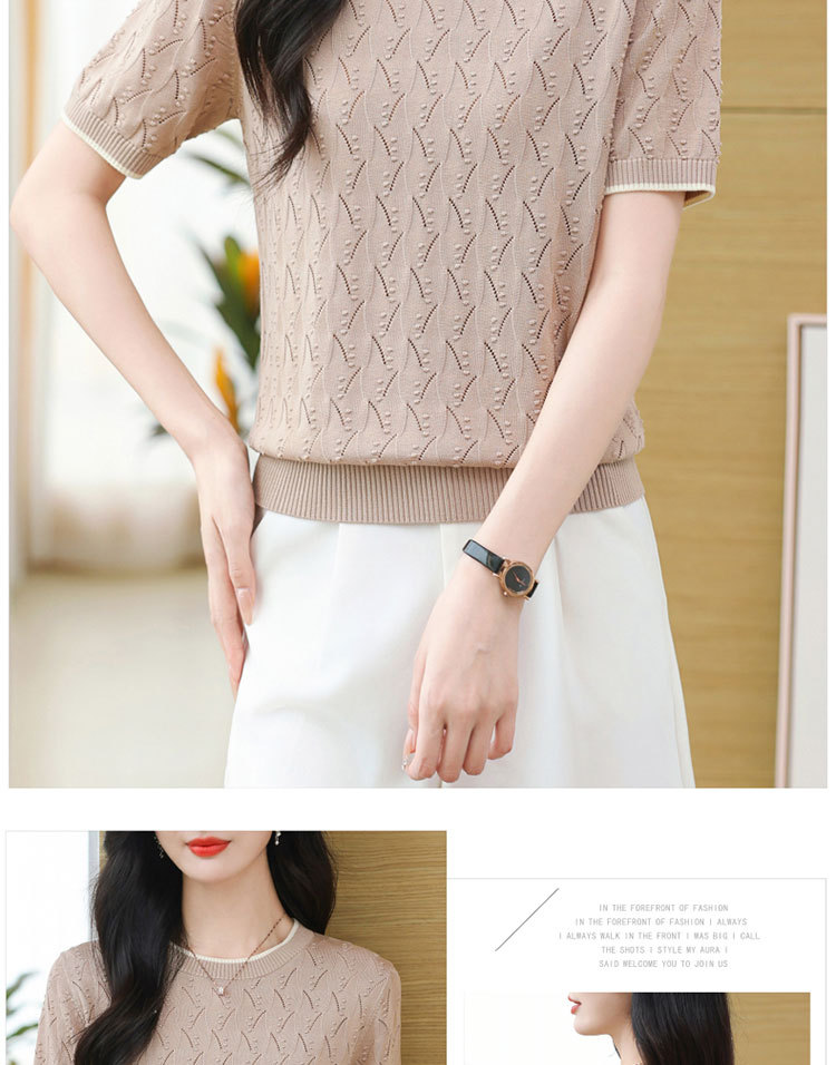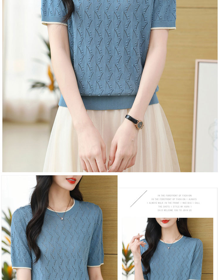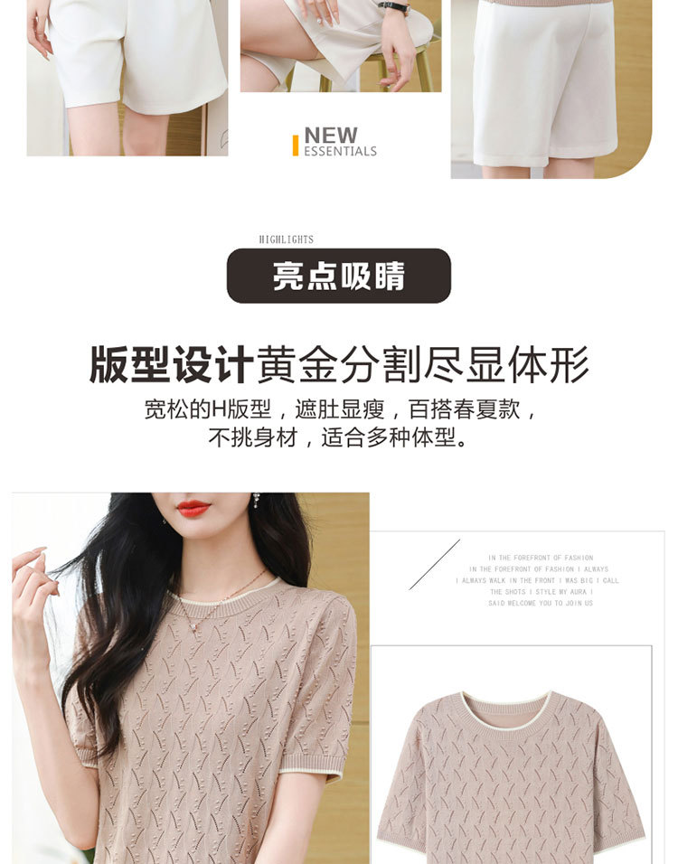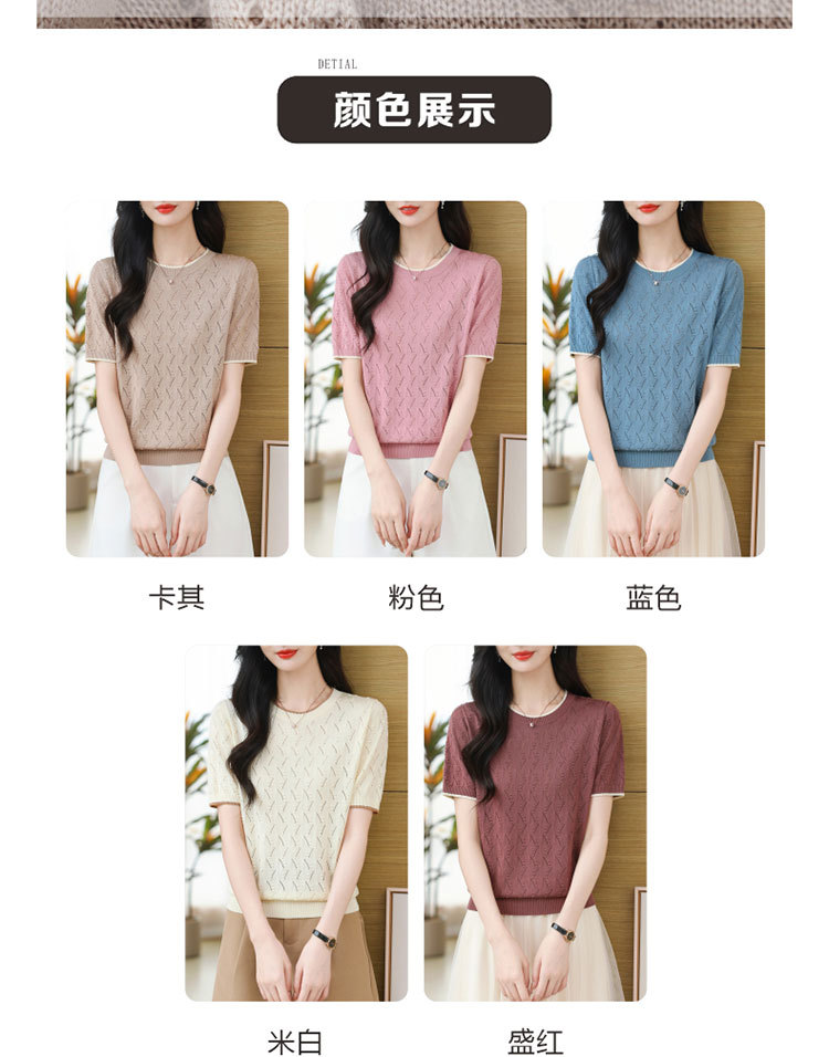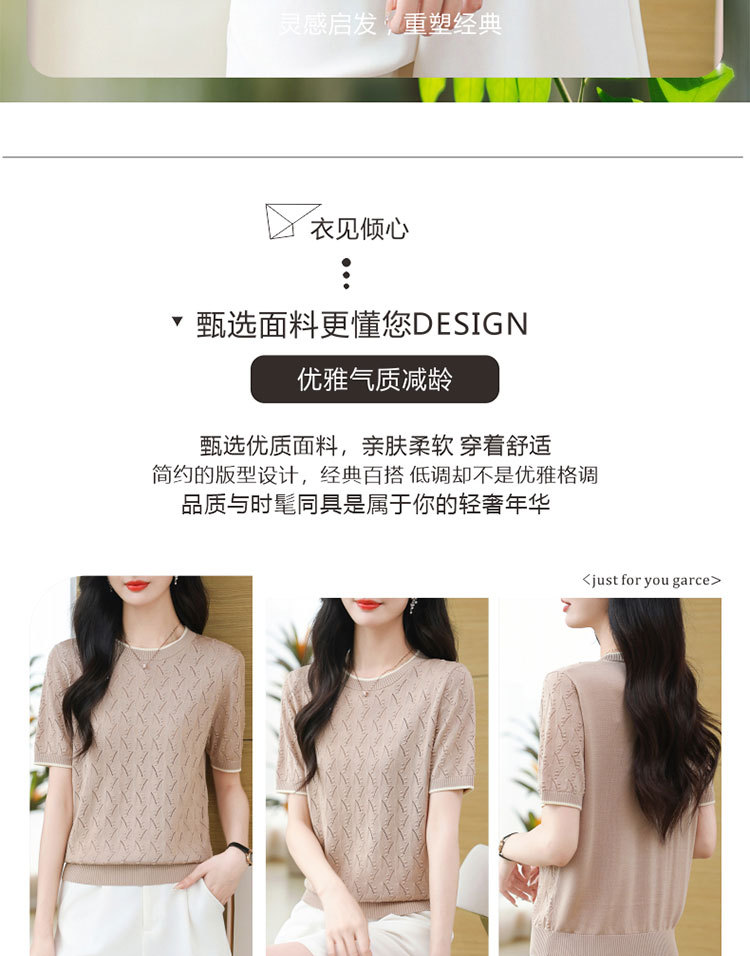 [공장 직접 공급] 둥근 목 텐셀 반팔 티셔츠 여성용 여름 얇은 느슨한 슬리밍 연령 감소 니트 탑 트렌디스토어 가기