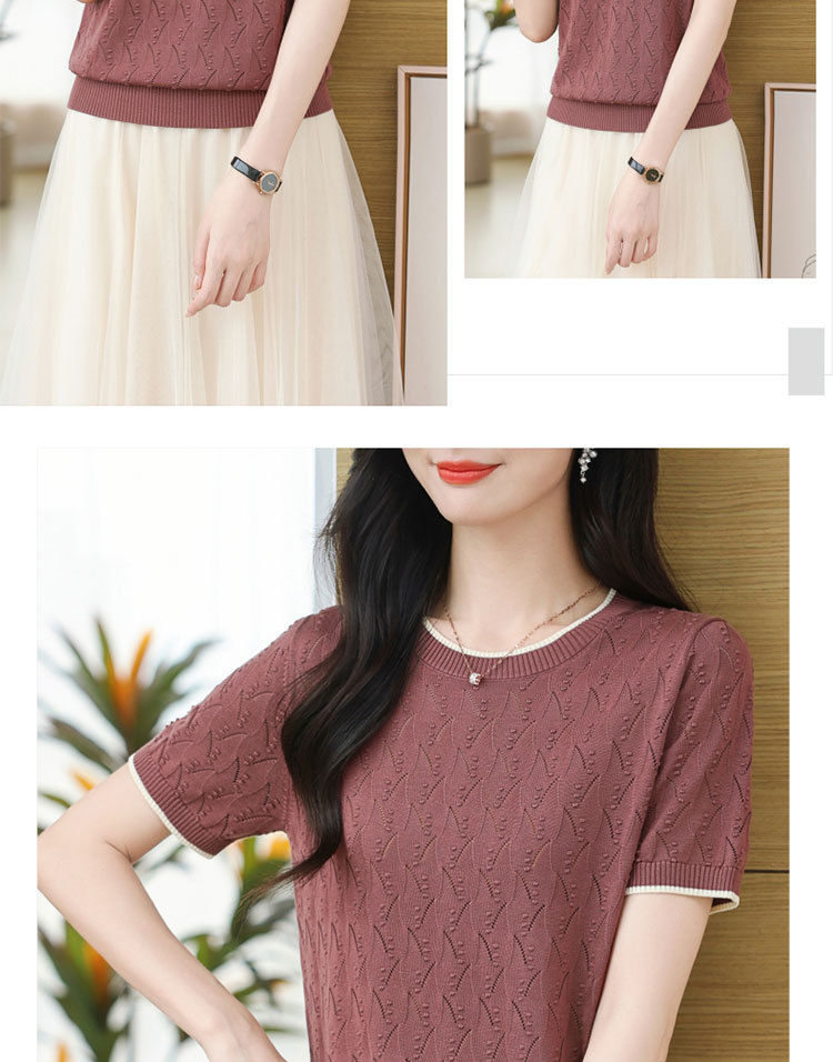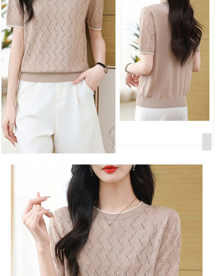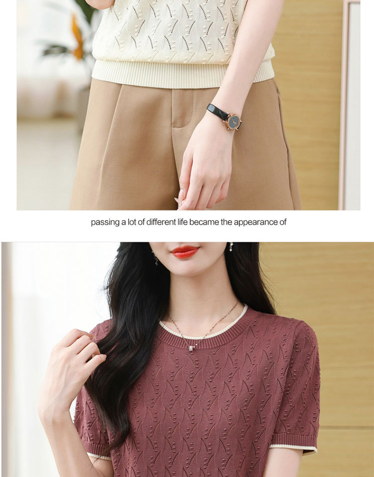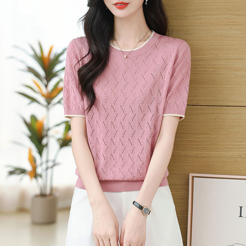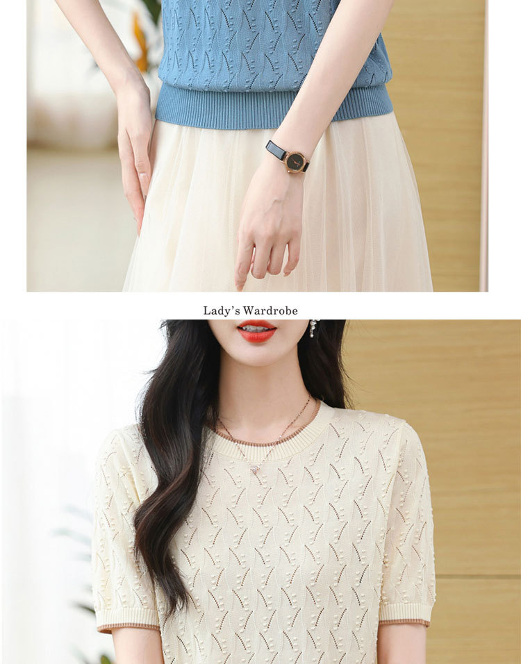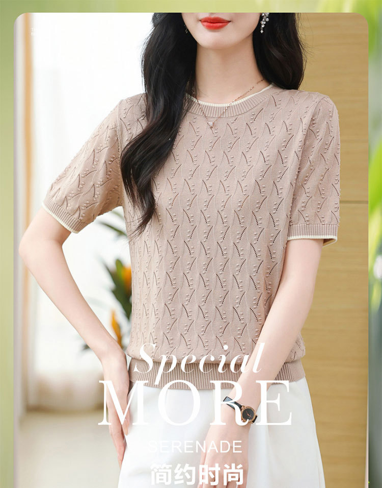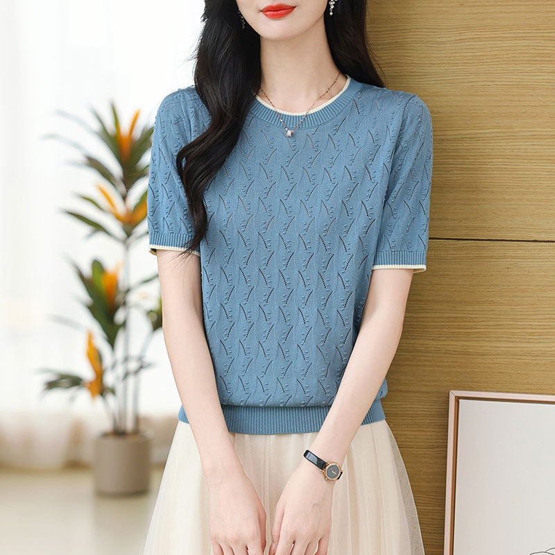 [공장 직접 공급] 둥근 목 텐셀 반팔 티셔츠 여성용 여름 얇은 느슨한 슬리밍 연령 감소 니트 탑 트렌디
