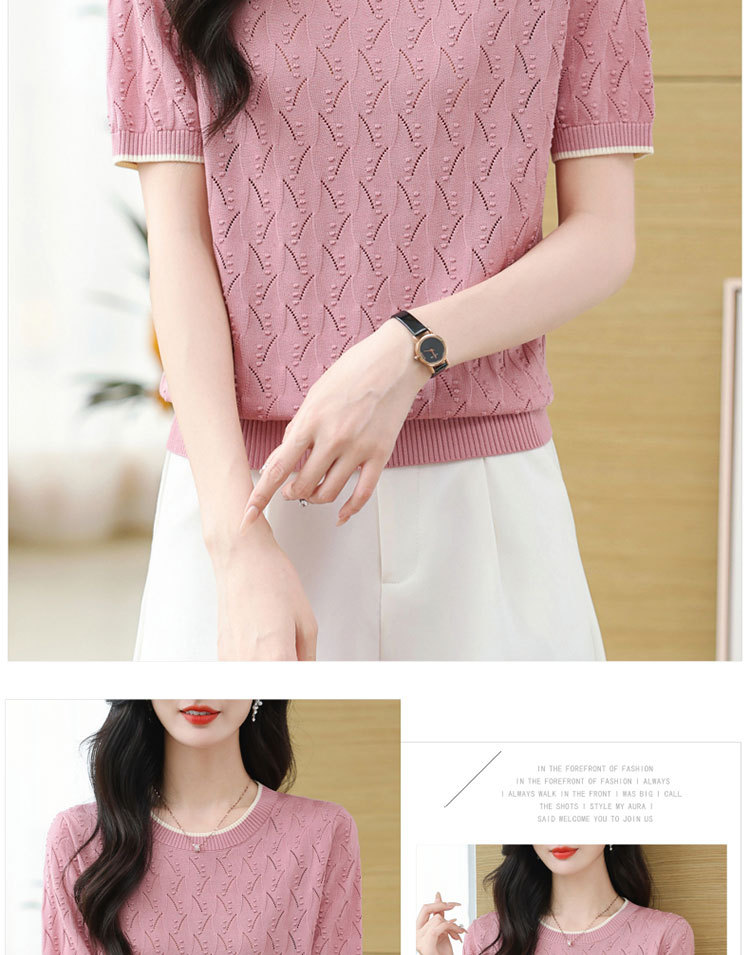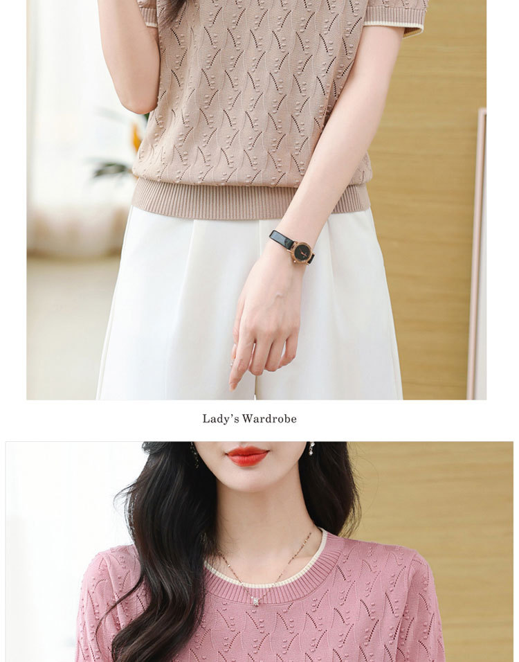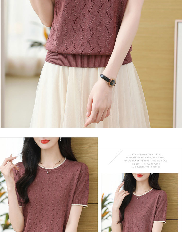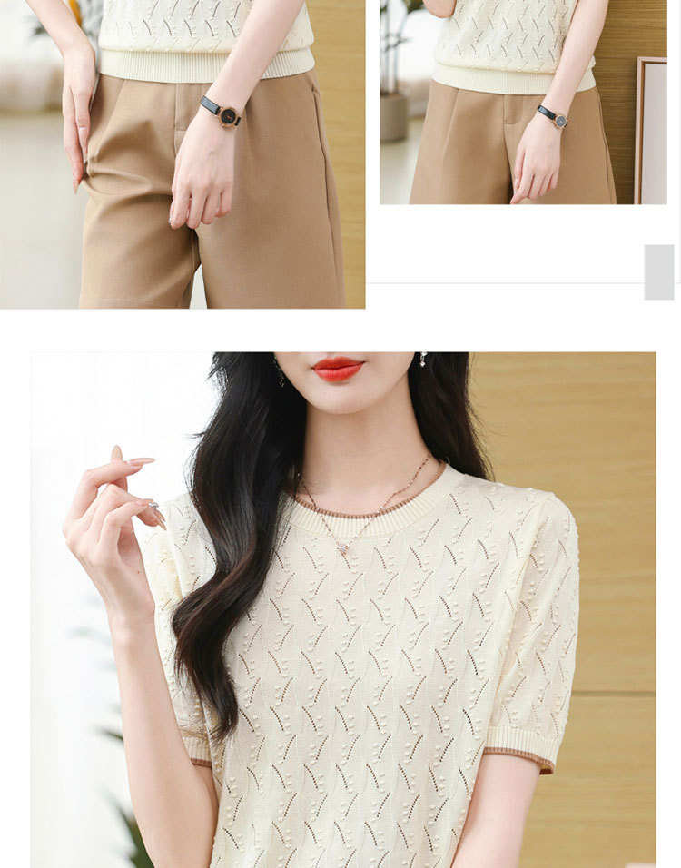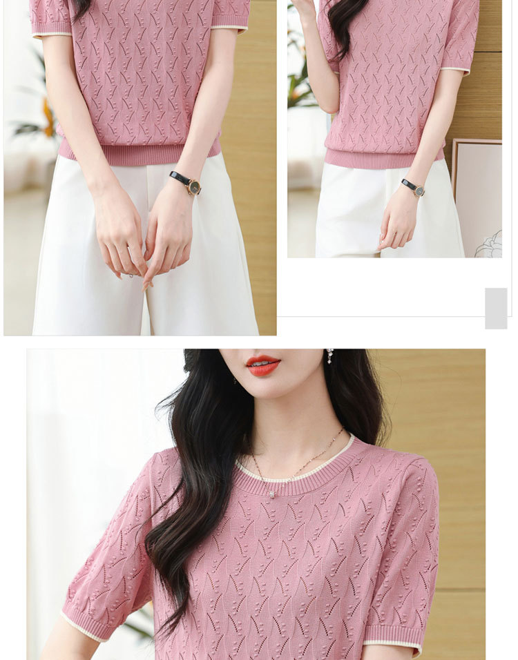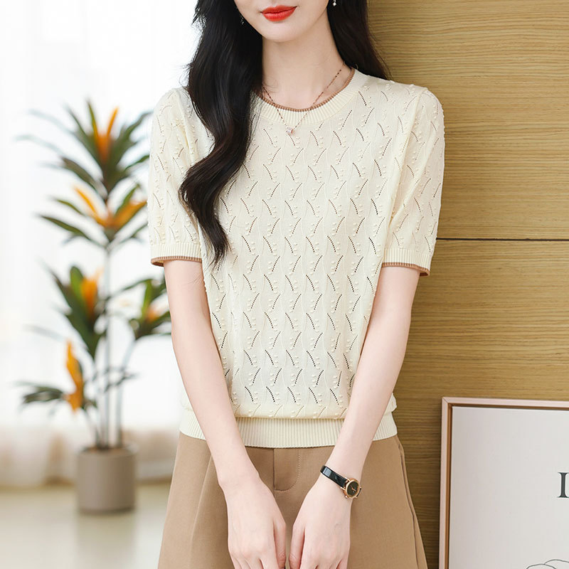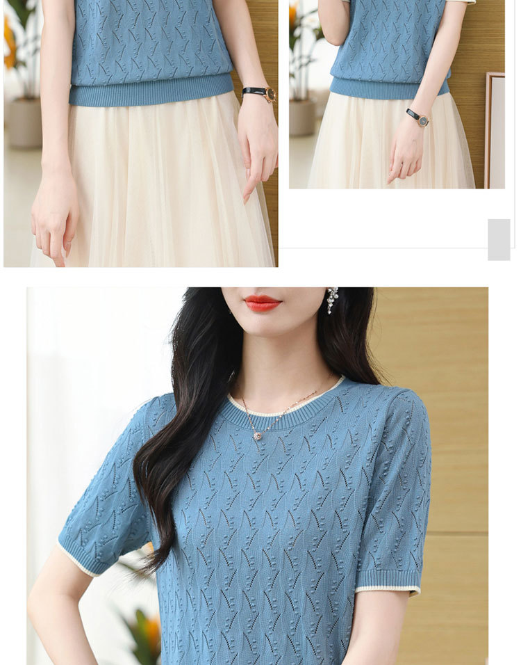 [공장 직접 공급] 둥근 목 텐셀 반팔 티셔츠 여성용 여름 얇은 느슨한 슬리밍 연령 감소 니트 탑 트렌디