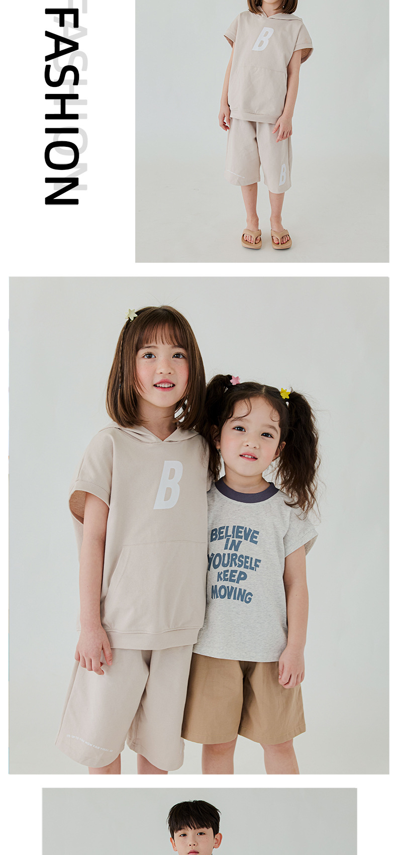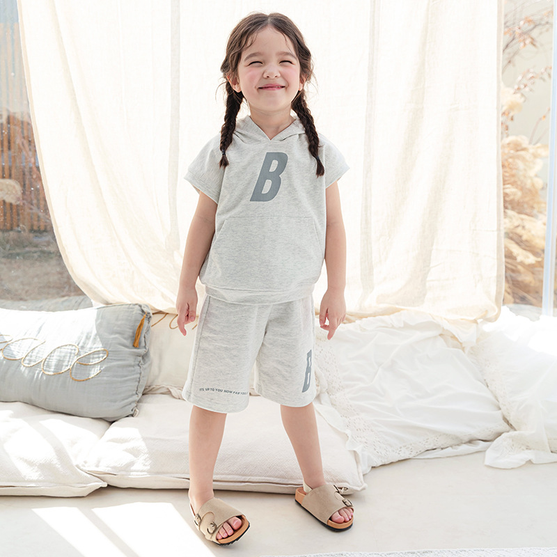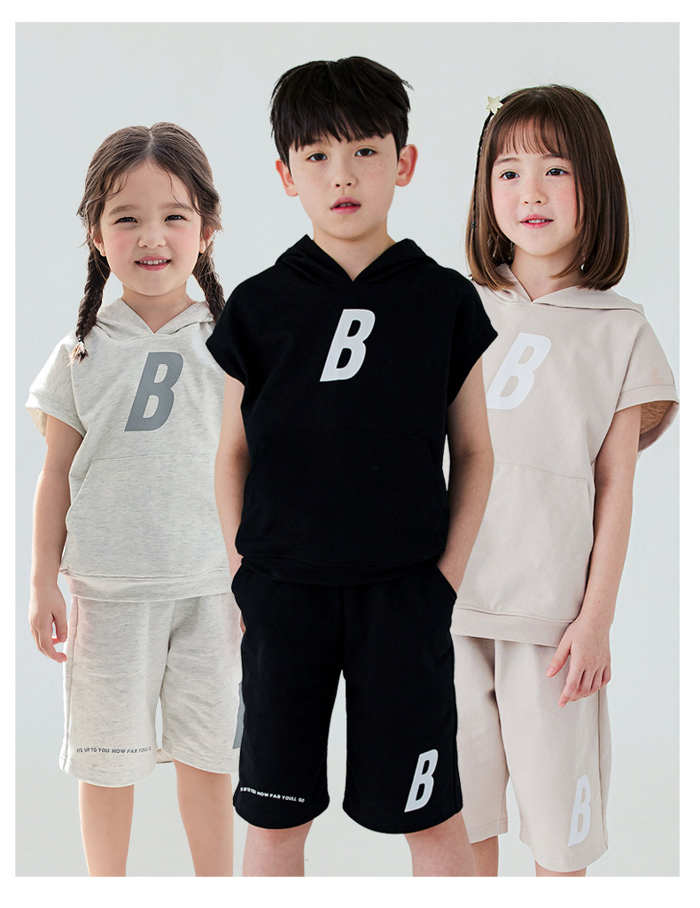 Bei Beizu 어린이 여름 캐주얼 스포츠 세트 느슨해 진 편지 후드 반팔 반바지 투피스 세트