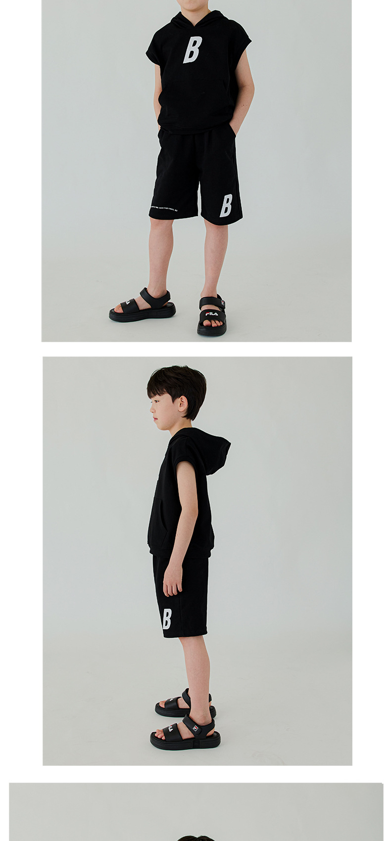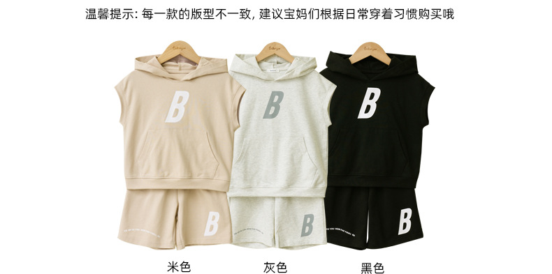 Bei Beizu 어린이 여름 캐주얼 스포츠 세트 느슨해 진 편지 후드 반팔 반바지 투피스 세트스토어 가기