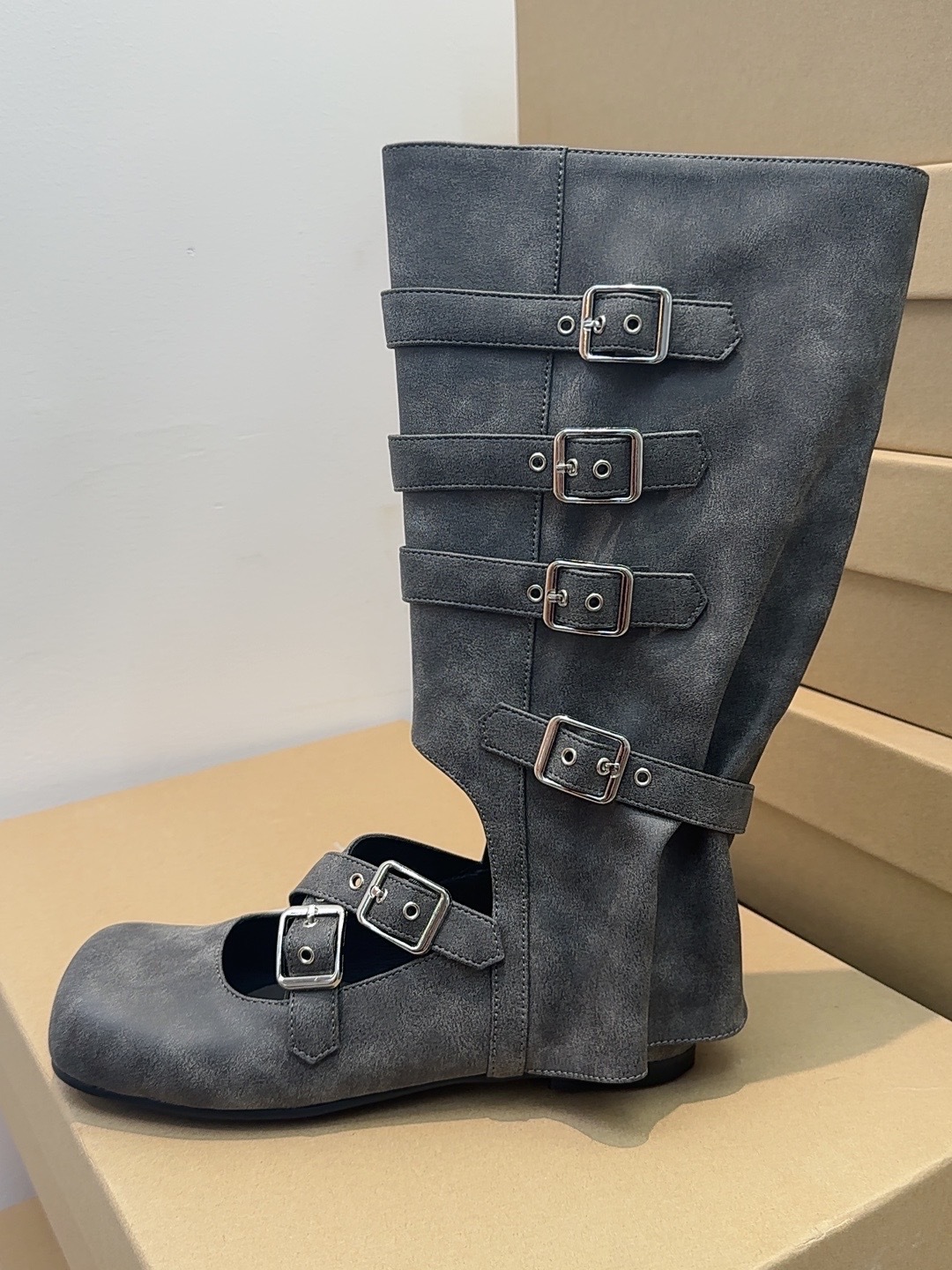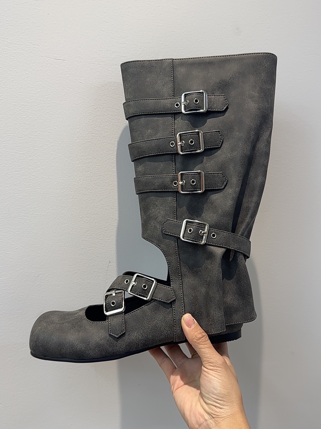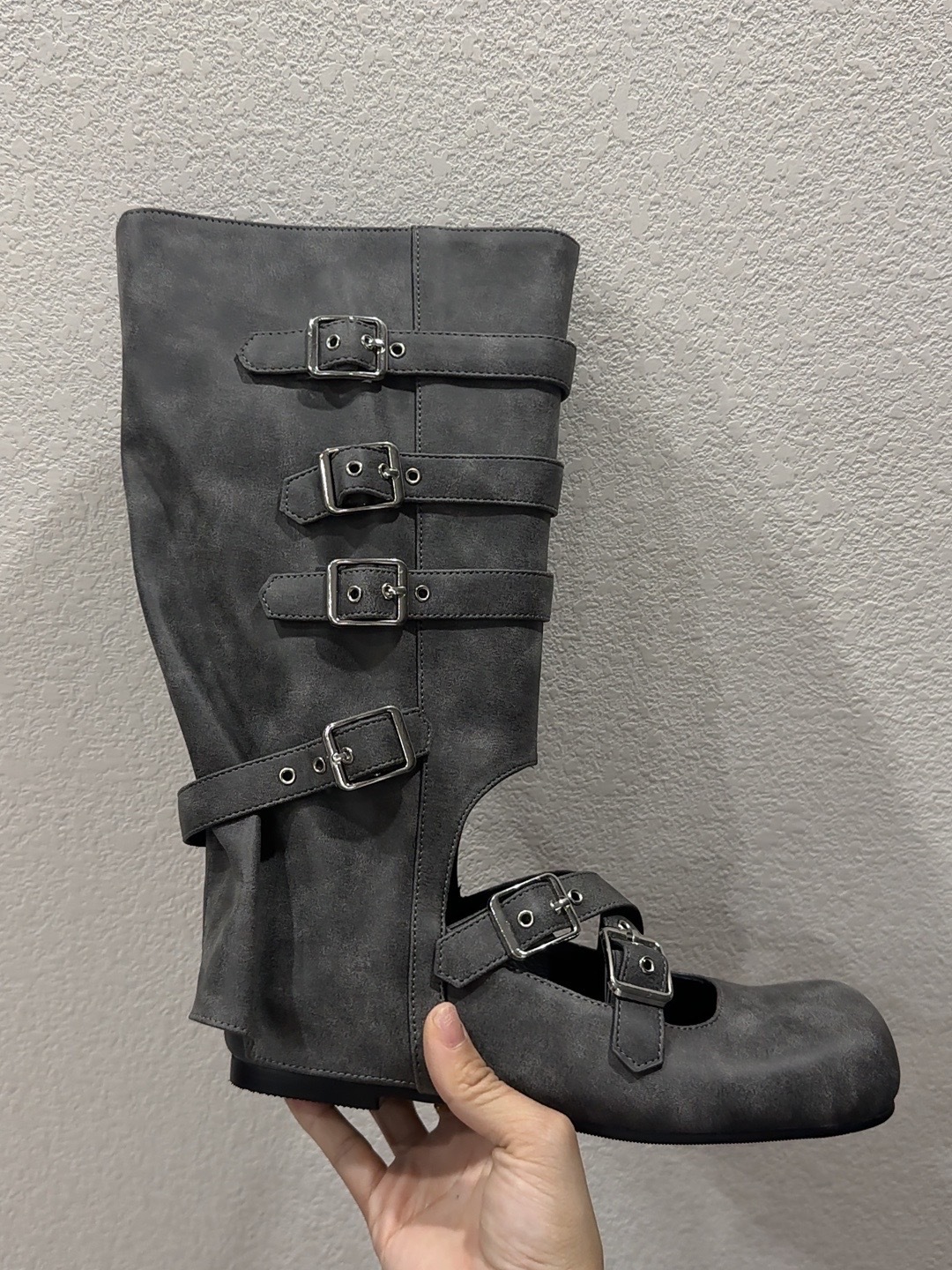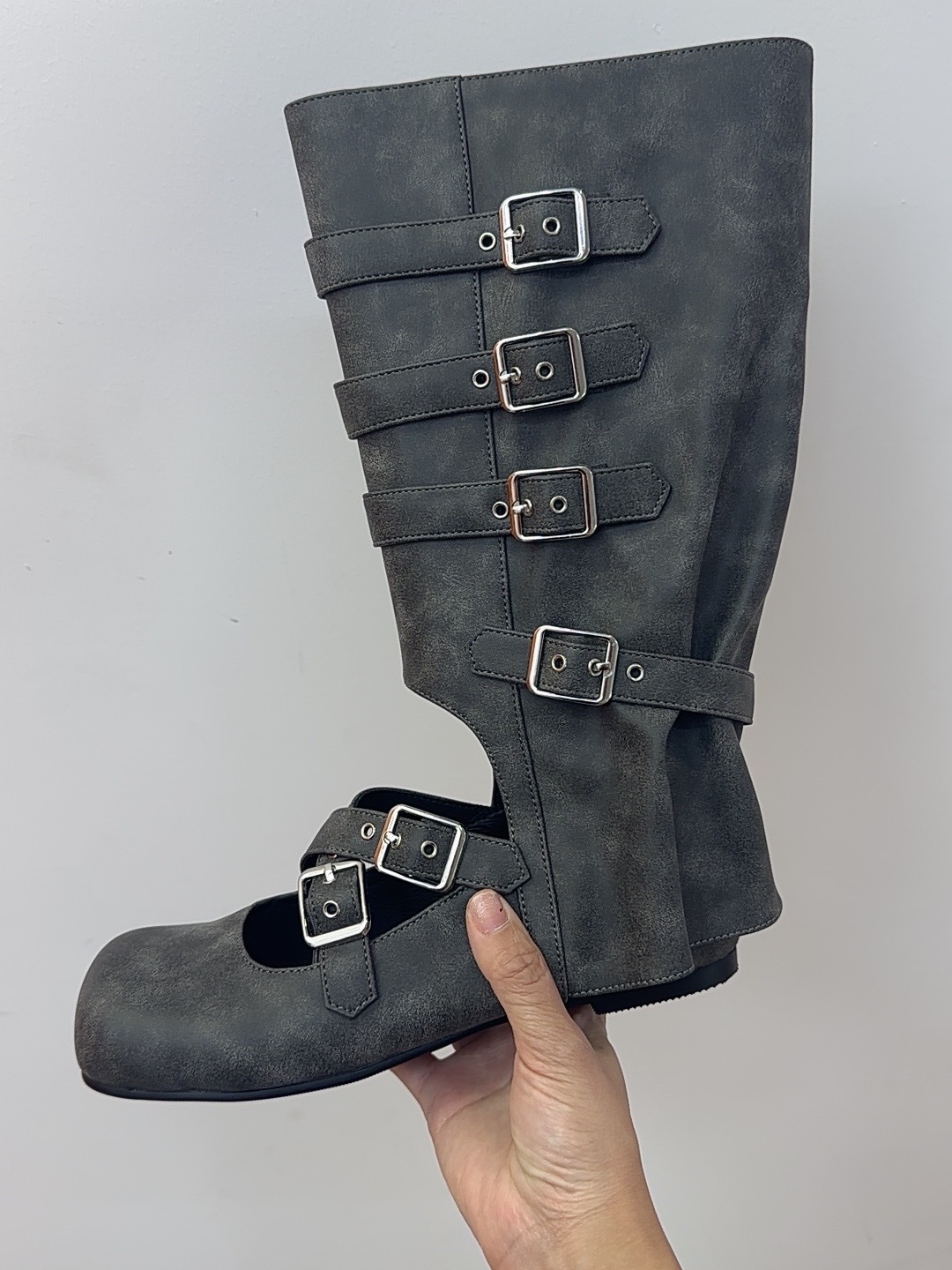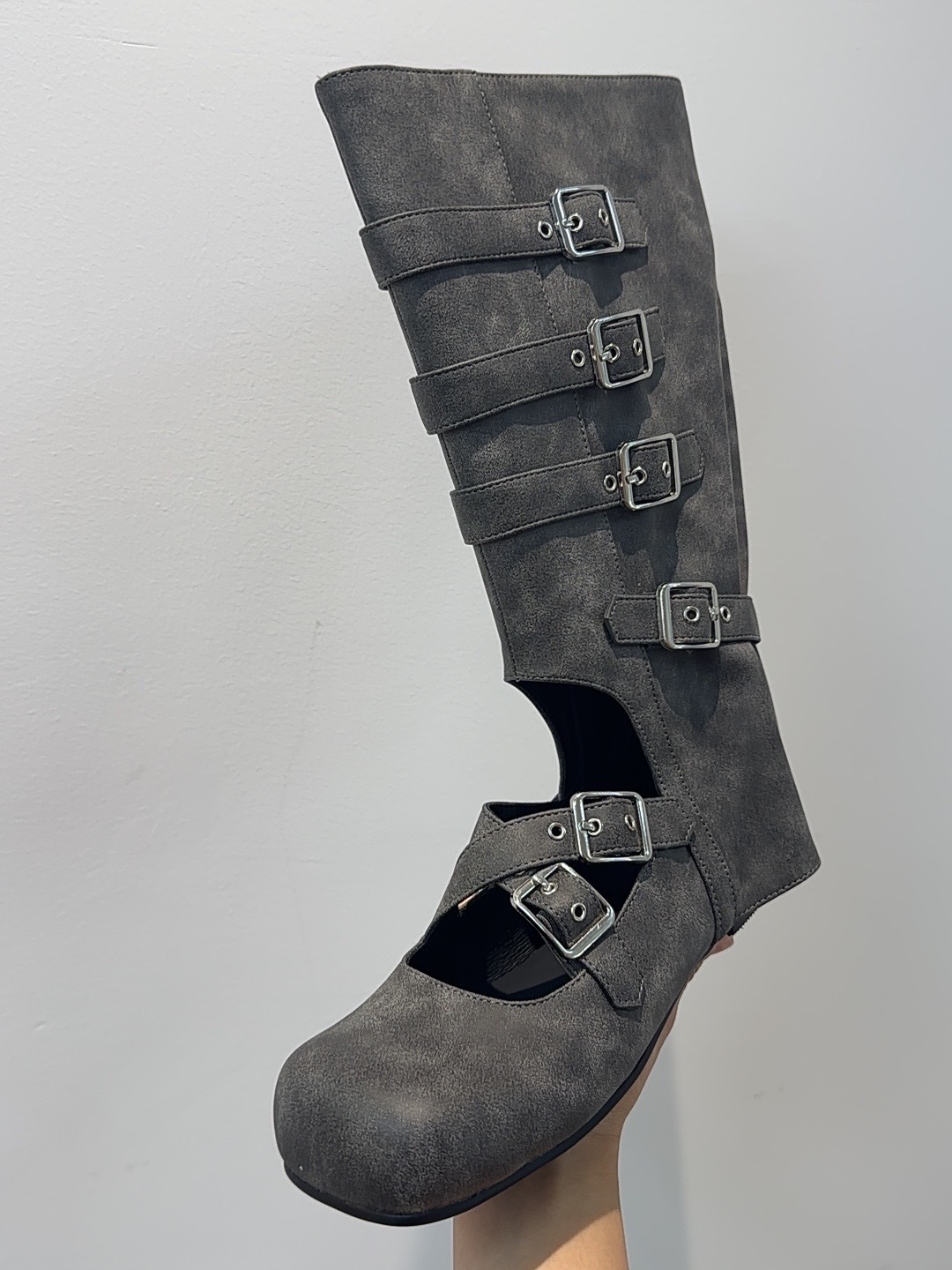여름 얇은 부츠 여성용 플랫 중공 발레 스타일 롱 부츠 펑크 수제 부츠 스파이스 걸스 정품 가죽 미드 배럴 여성용 부츠스토어 가기