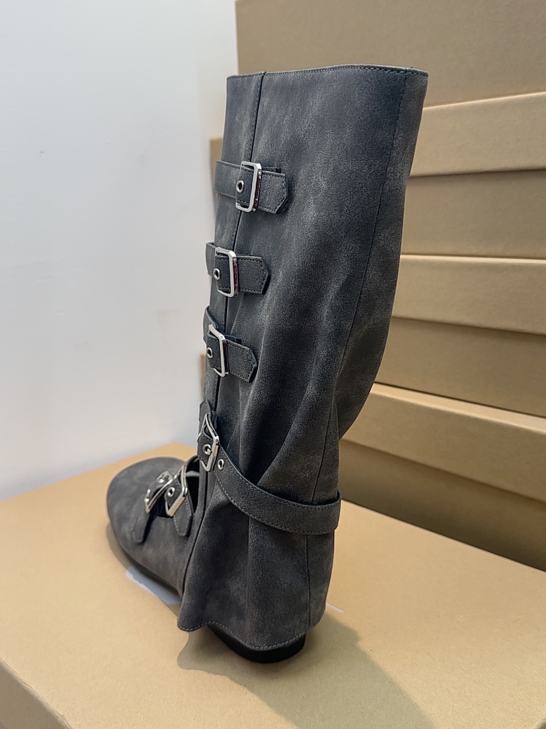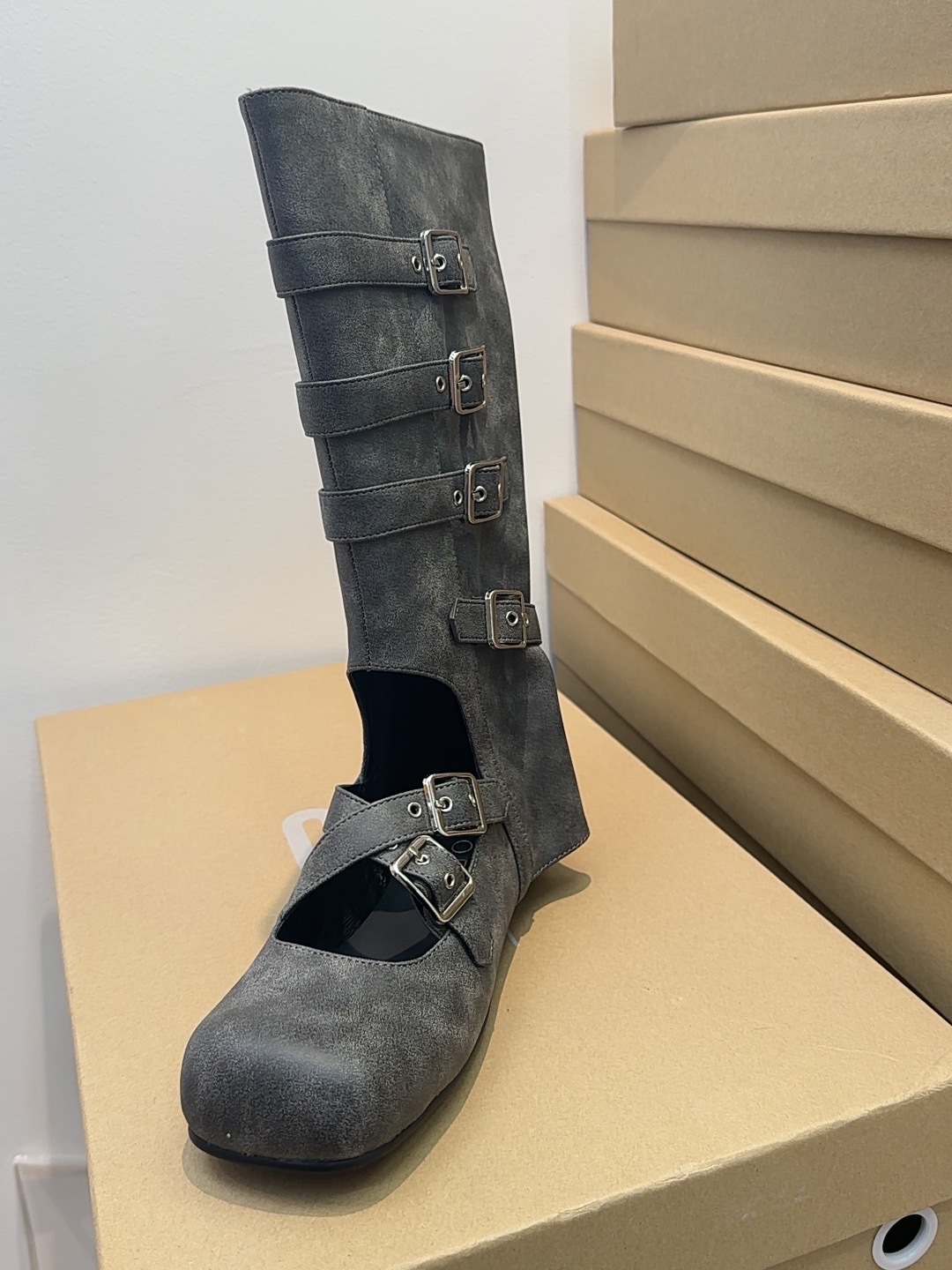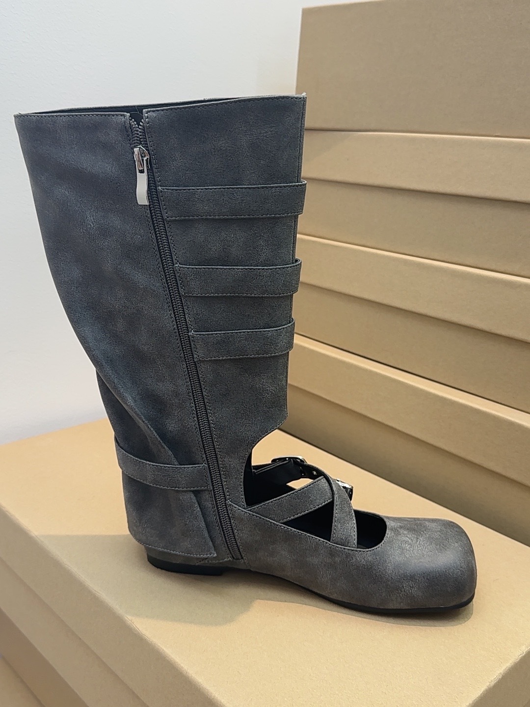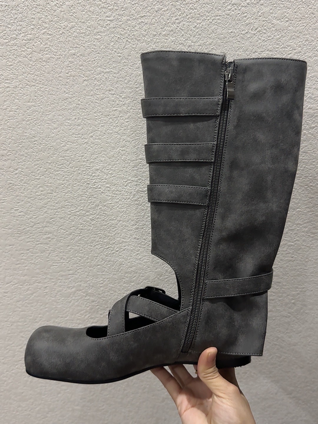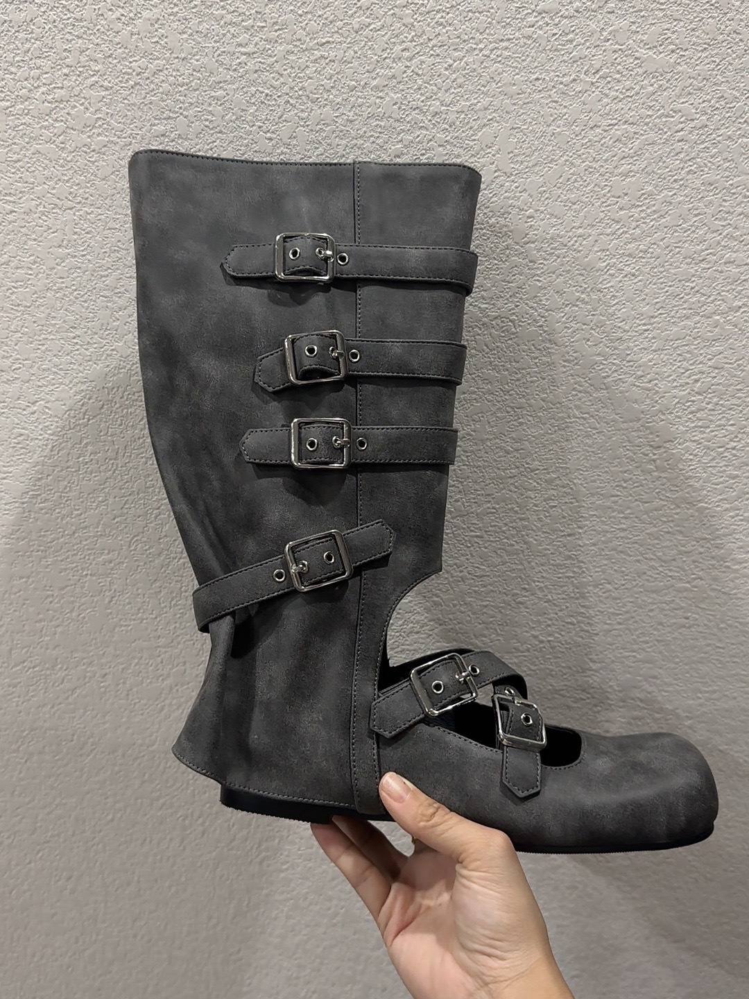 여름 얇은 부츠 여성용 플랫 중공 발레 스타일 롱 부츠 펑크 수제 부츠 스파이스 걸스 정품 가죽 미드 배럴 여성용 부츠스토어 가기