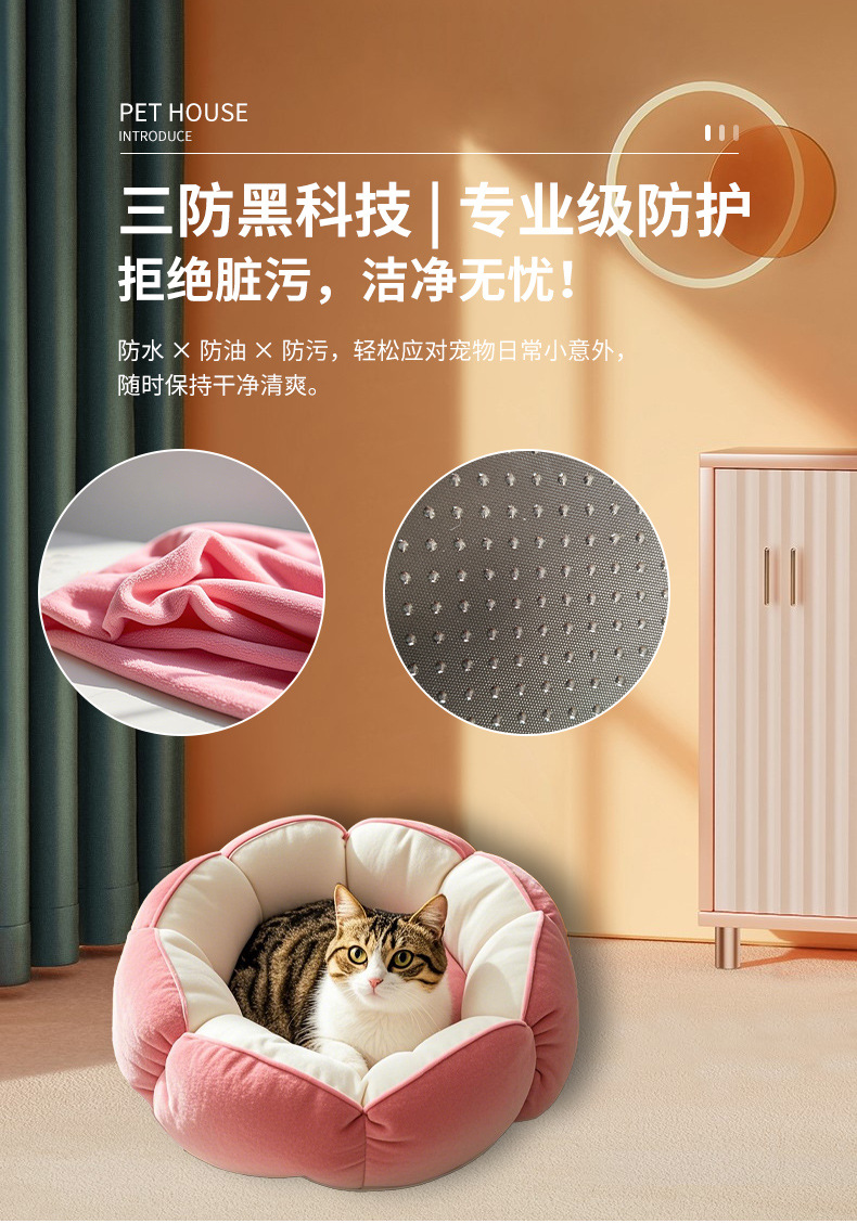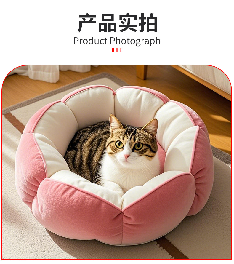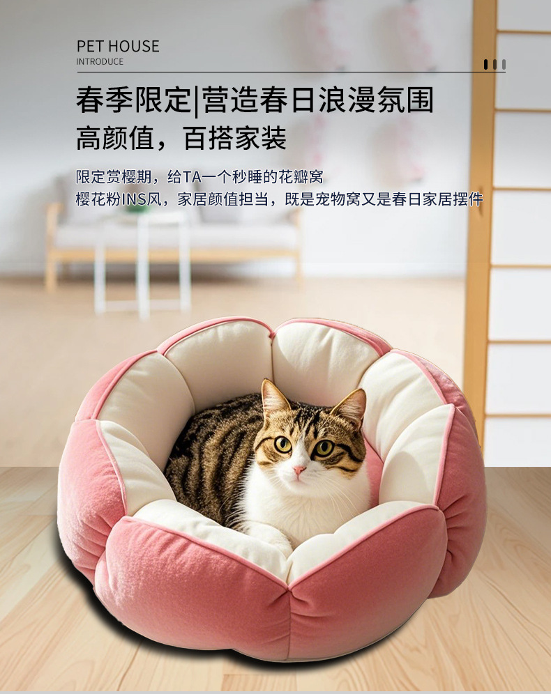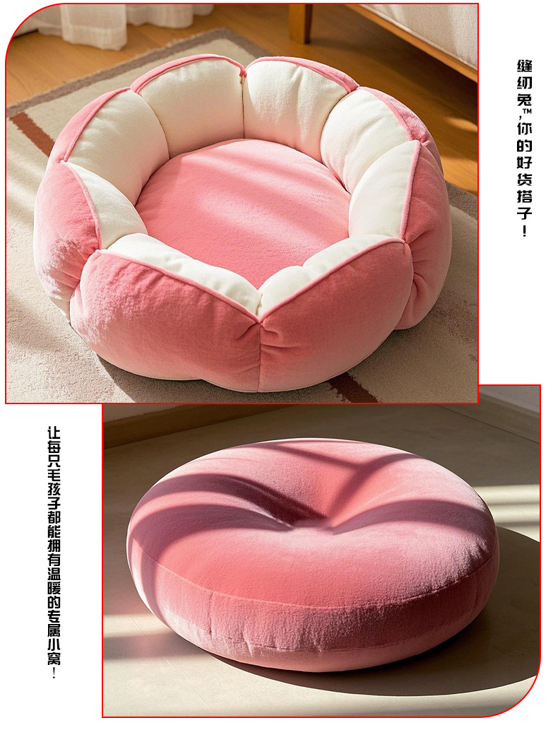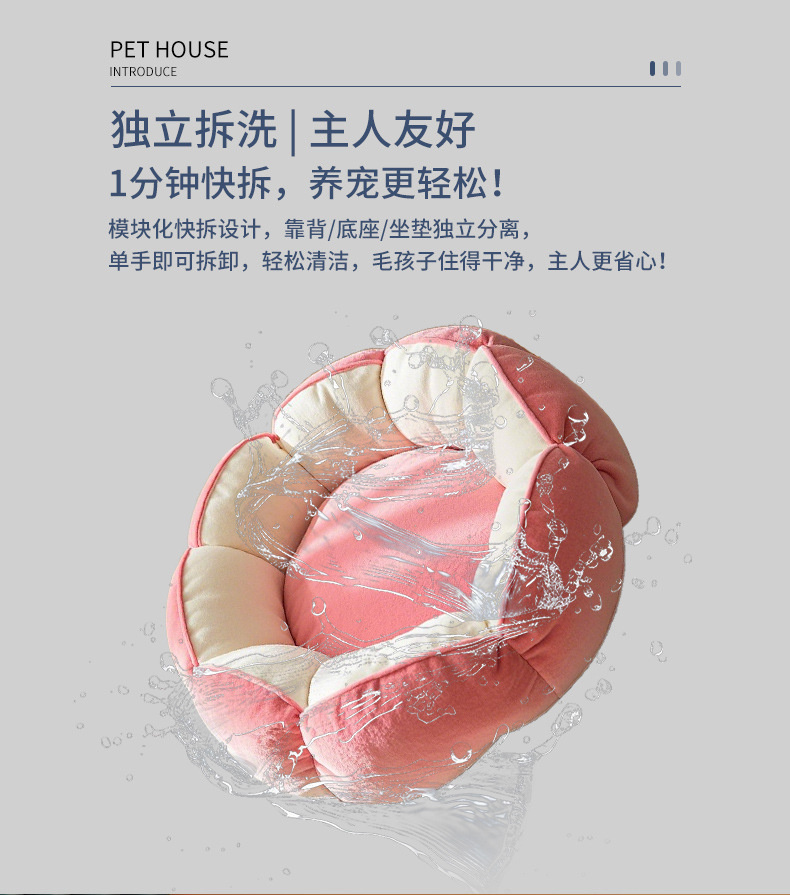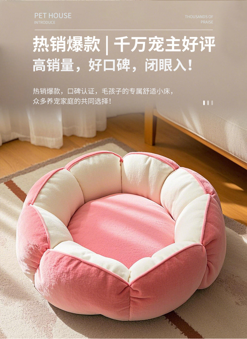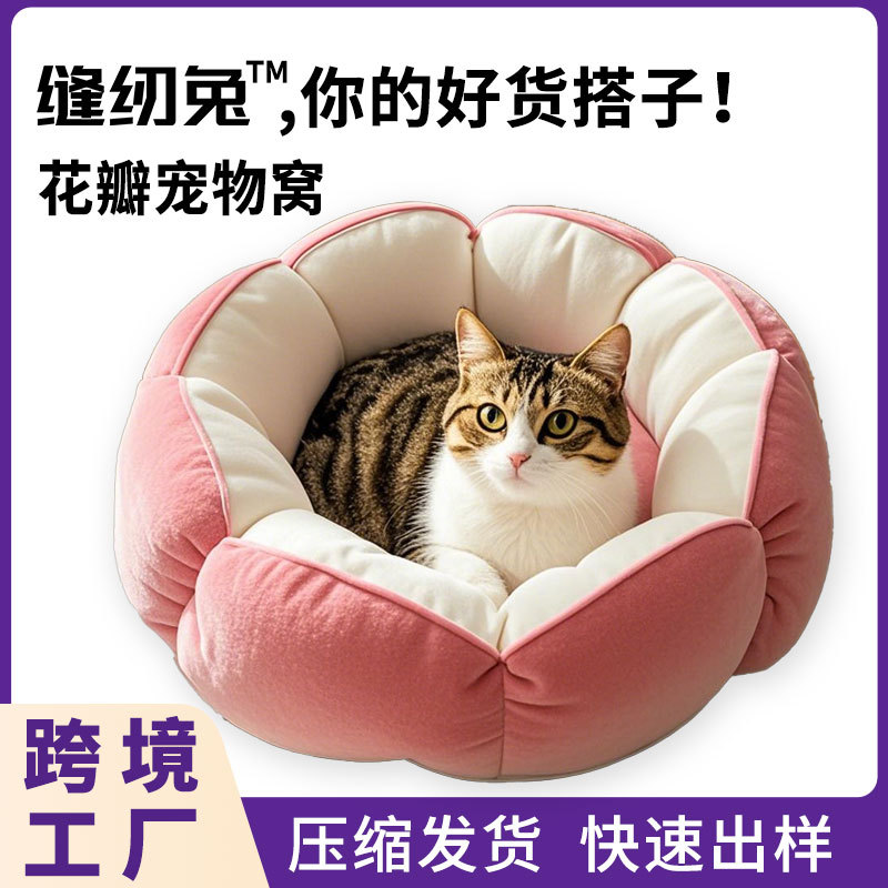 [바느질토끼_애완동물둥지] 깊은 꽃잎 고양이둥지 안전한 감싸기 느낌의 개집 꽃잎 모양의 소형 개집스토어 가기