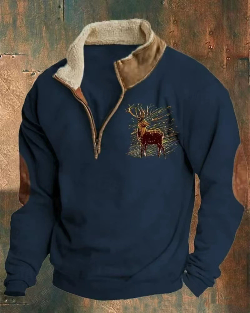 欧美跨境外贸秋冬新款男装开胸立领3D打印高领拉链Polo衫套头卫衣
