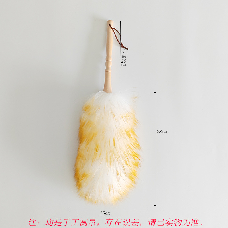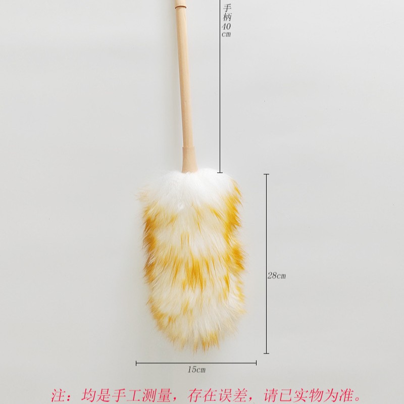 • 나무 손잡이가 달린 양모 먼지떨이, 전체 길이 38cm