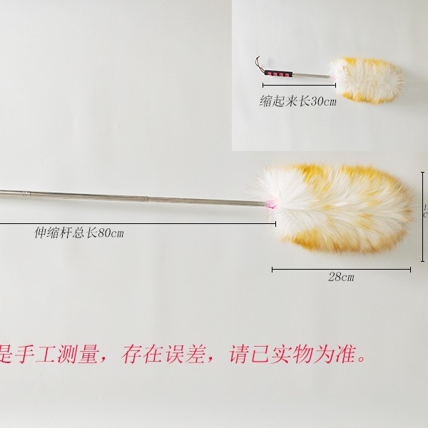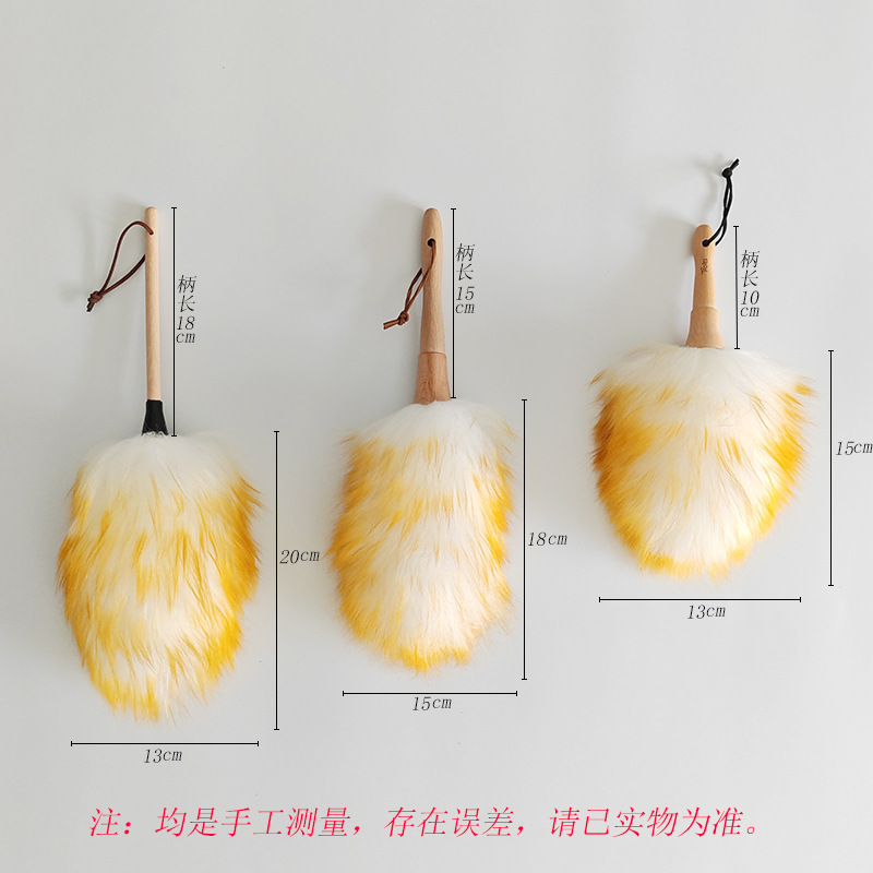 • 나무 손잡이가 달린 양모 먼지떨이, 전체 길이 25cm
