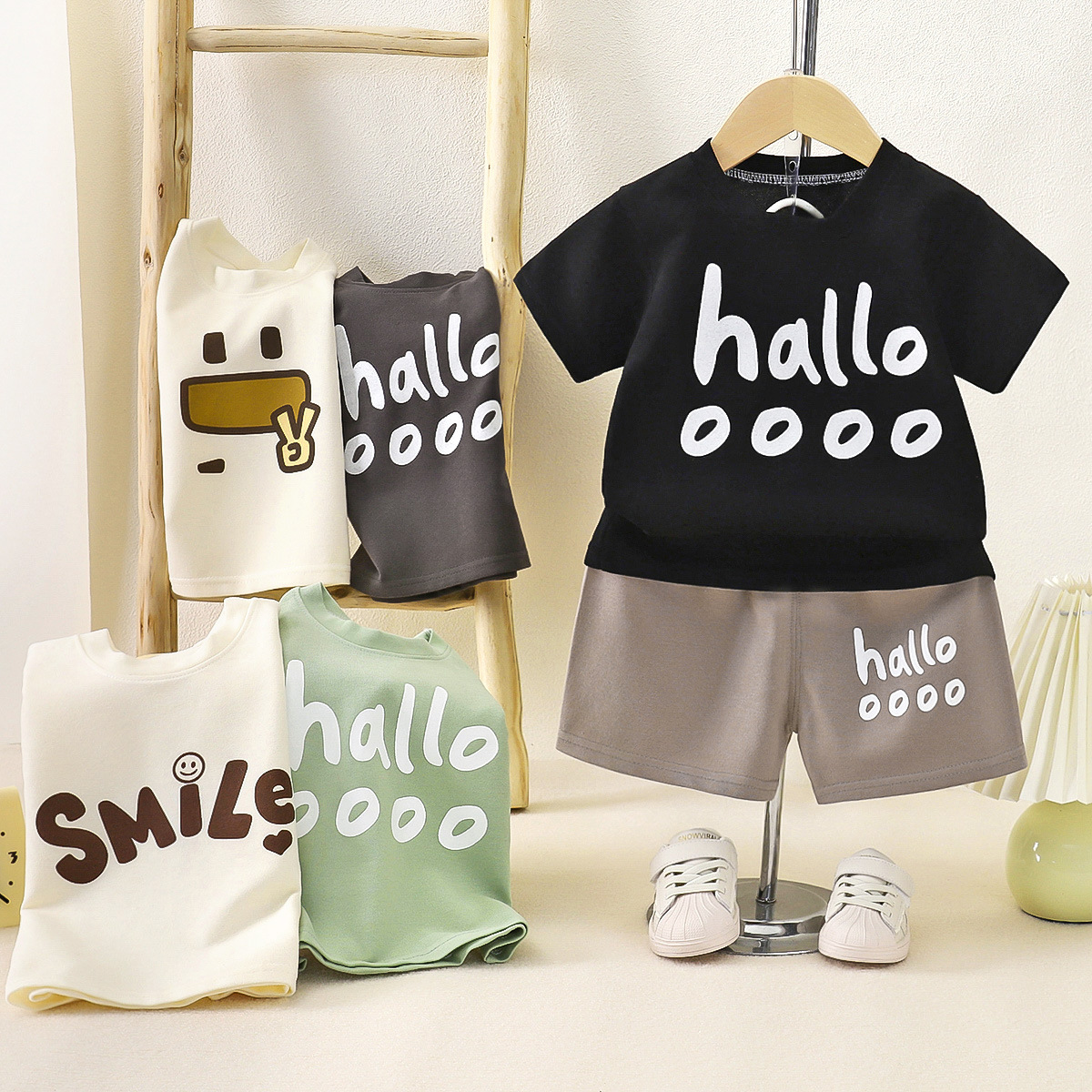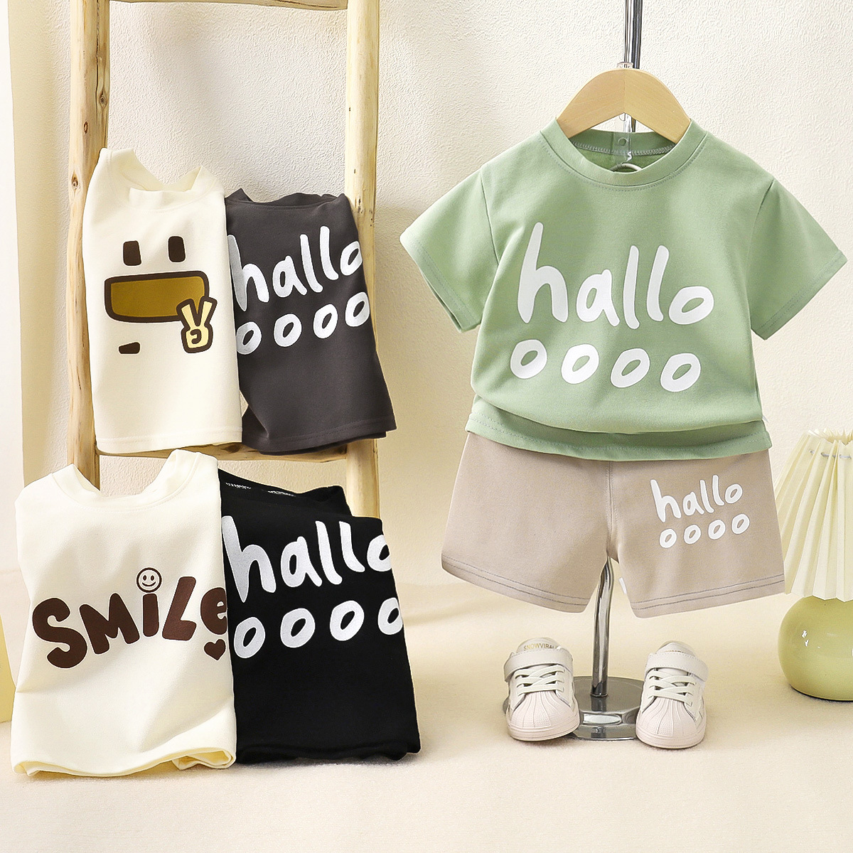 어린이 여름 반팔 세트 여름 소년 소녀 중소 어린이 바지 반바지 투피스 홈 옷스토어 가기