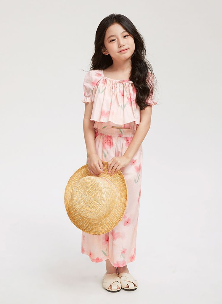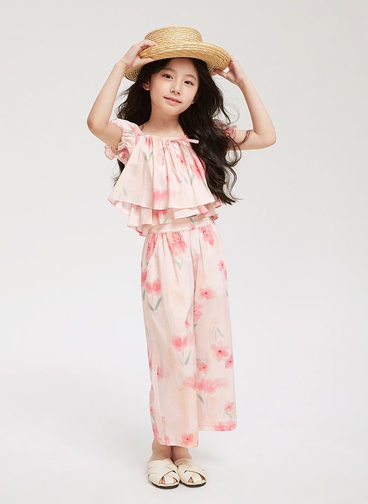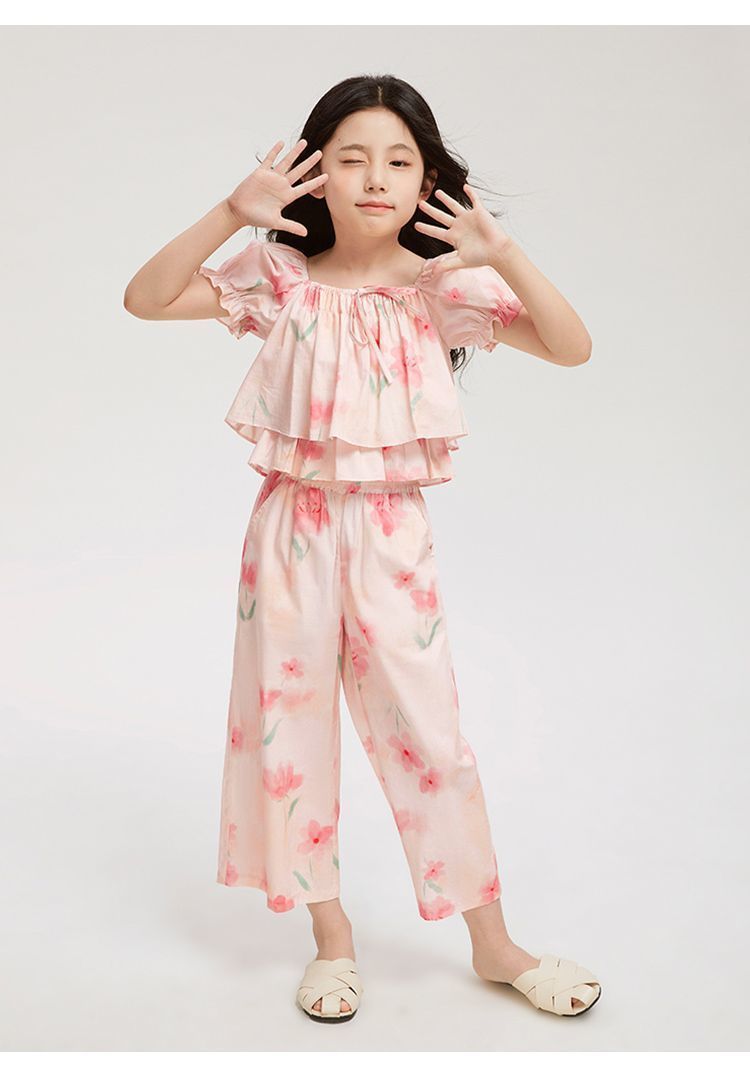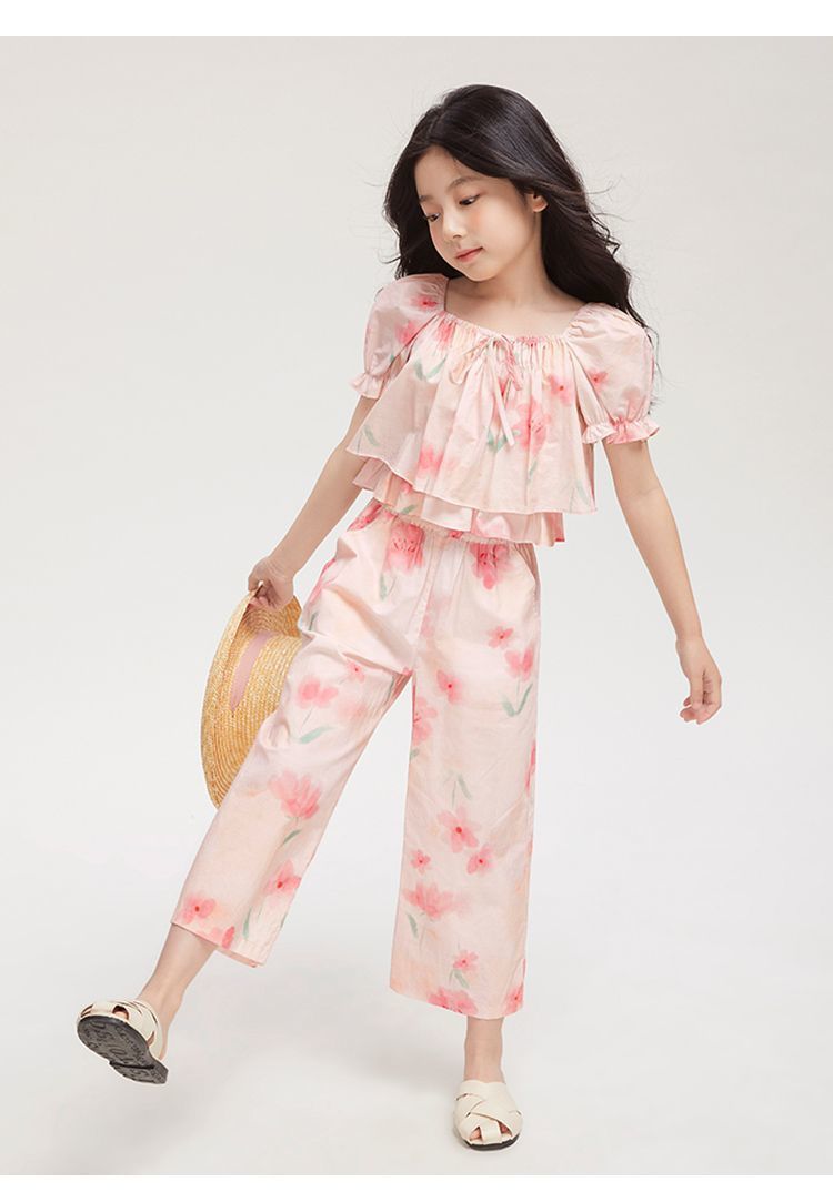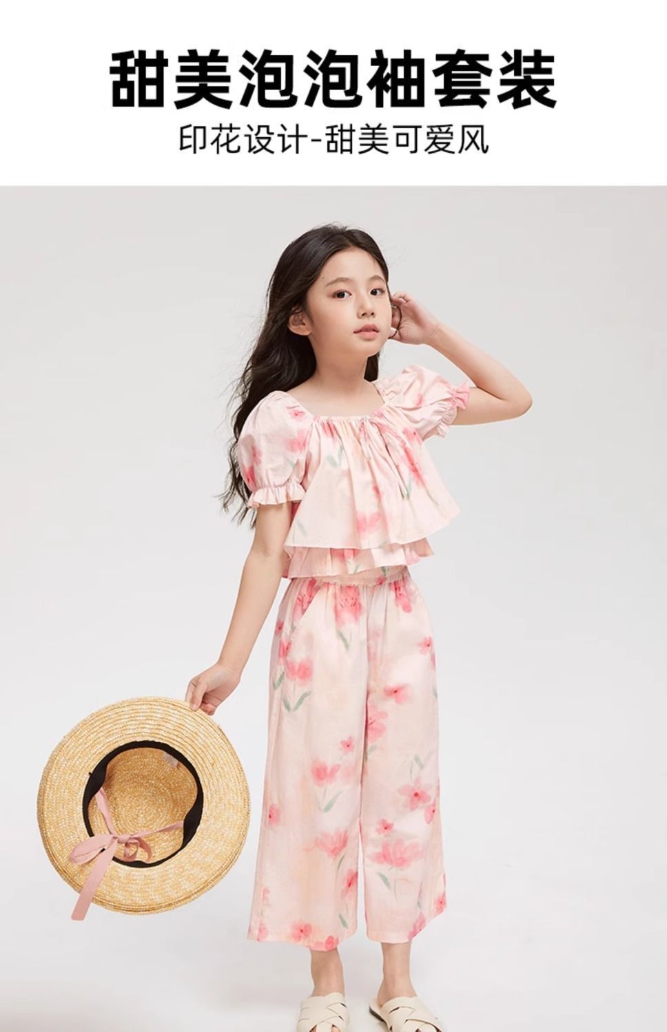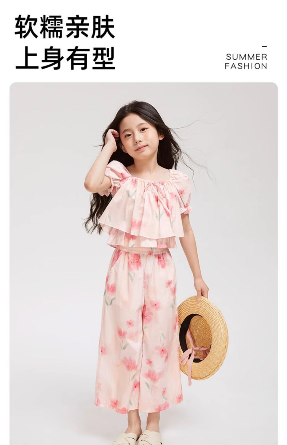 여자 작은 신선한 꽃무늬 양복 여름 2025 새로운 달콤한 공주 스타일 여름 반팔 와이드 팬츠 유행스토어 가기