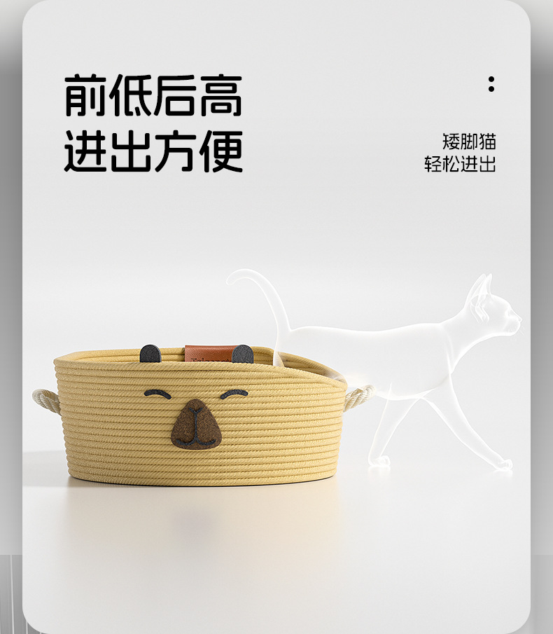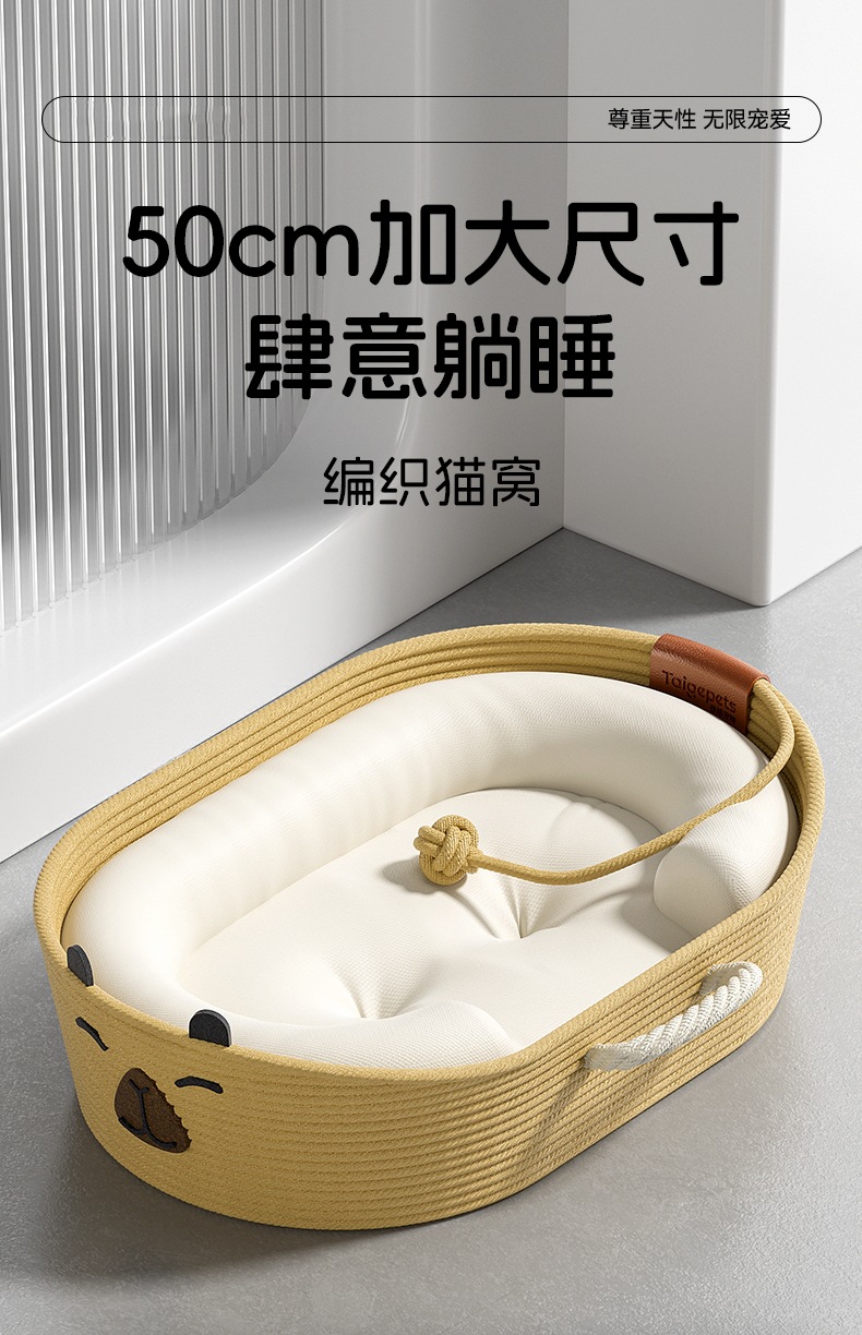 • [카피발라 스타일] 면 등나무 고양이 둥지 + 화장솜 + 베개 [두 배의 편안함]