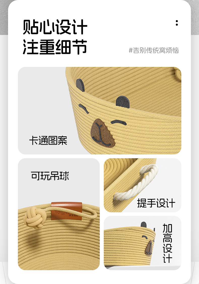 • [등나무로 엮은 고양이 둥지] 컬러 매칭 휴대용 스타일 + 화장솜 + 베개 [두 배의 편안함]