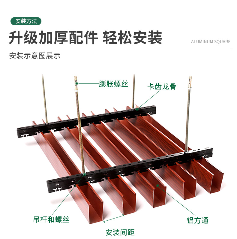 알루미늄 사각형 파이프 천장 재료 사각형 파이프 그릴 천장 자체 설치 알루미늄 합금 나뭇결 프로파일 사각형 파이프 사무실 장식스토어 가기