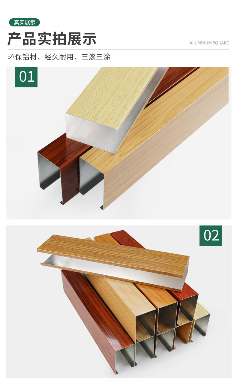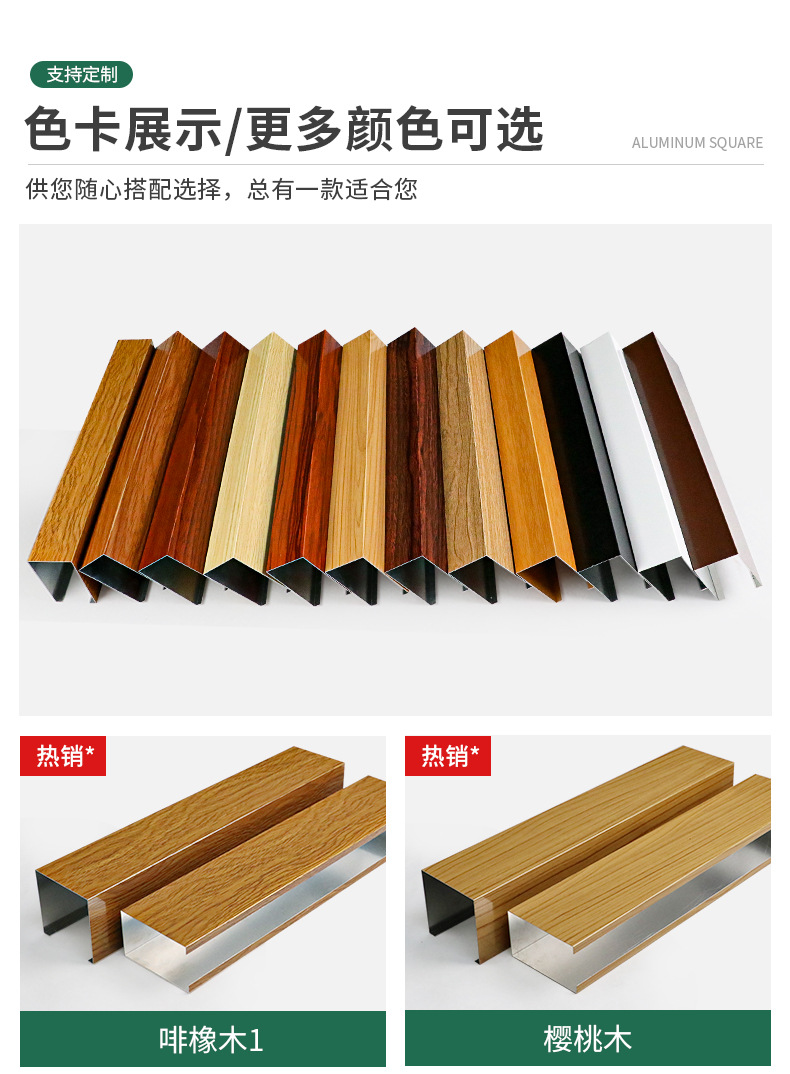 알루미늄 사각형 파이프 천장 재료 사각형 파이프 그릴 천장 자체 설치 알루미늄 합금 나뭇결 프로파일 사각형 파이프 사무실 장식