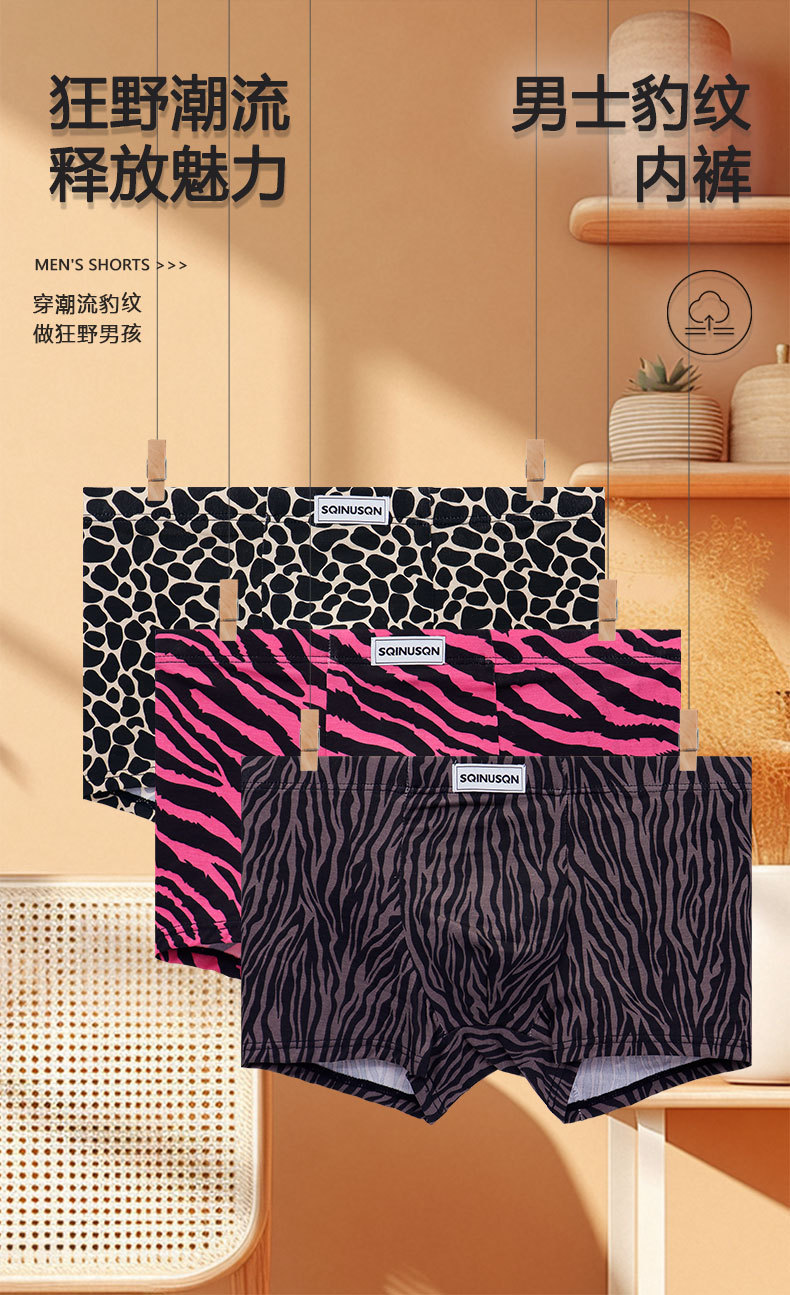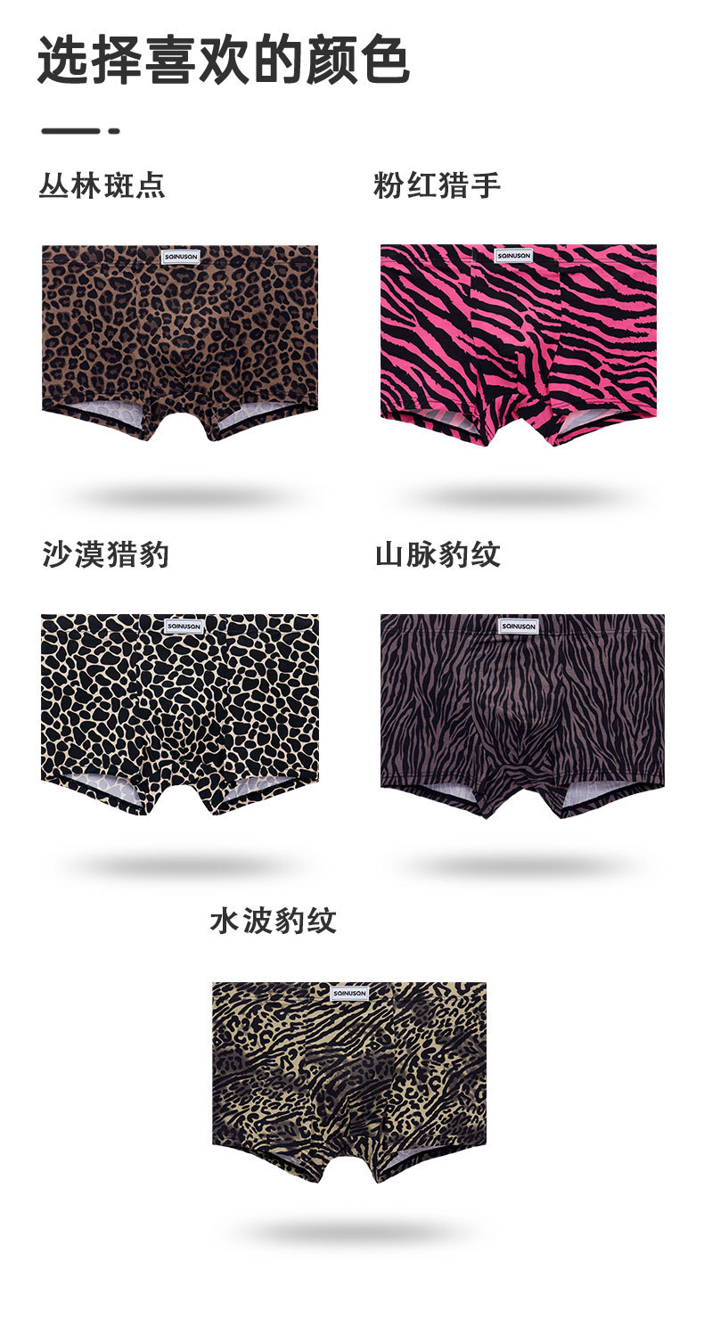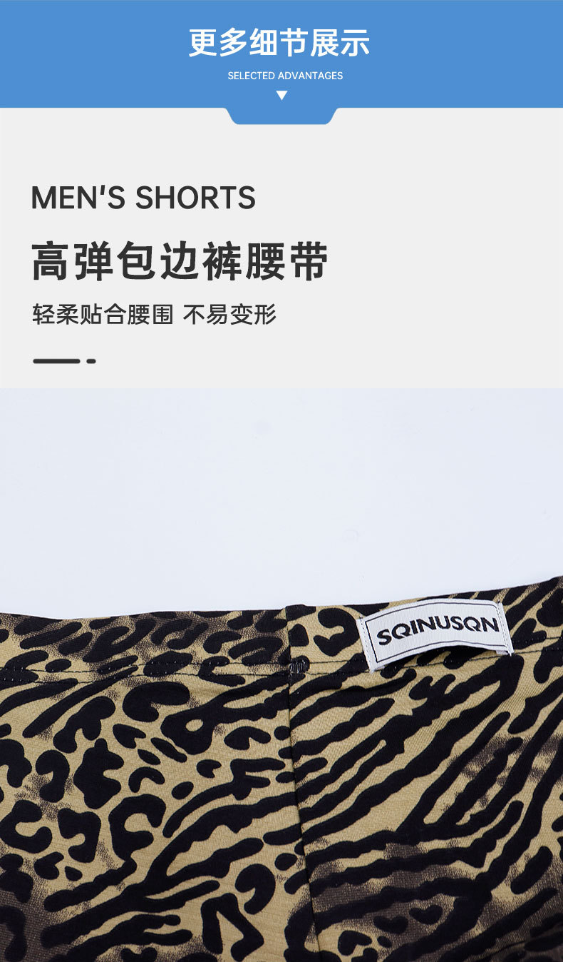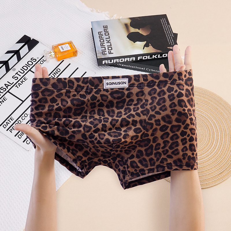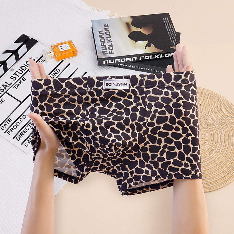 SQINUSQN/시퀸오 남성 속옷 레오파드 프린트 섹시 패션 남성 사각팬티 항균 사각팬티 반바지스토어 가기