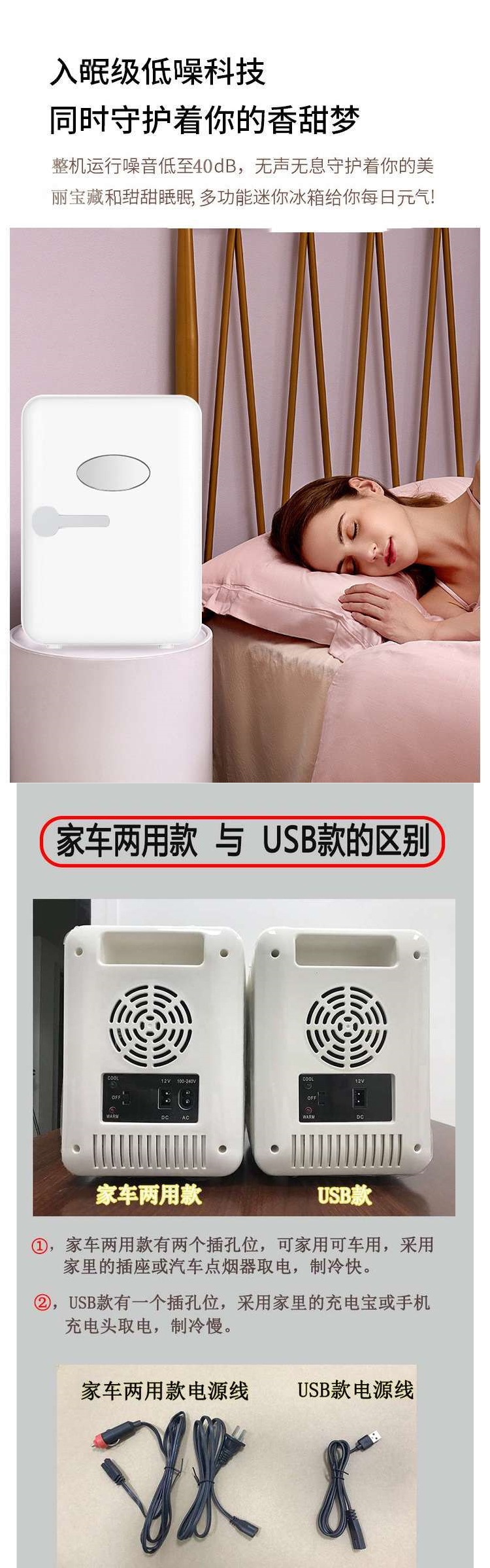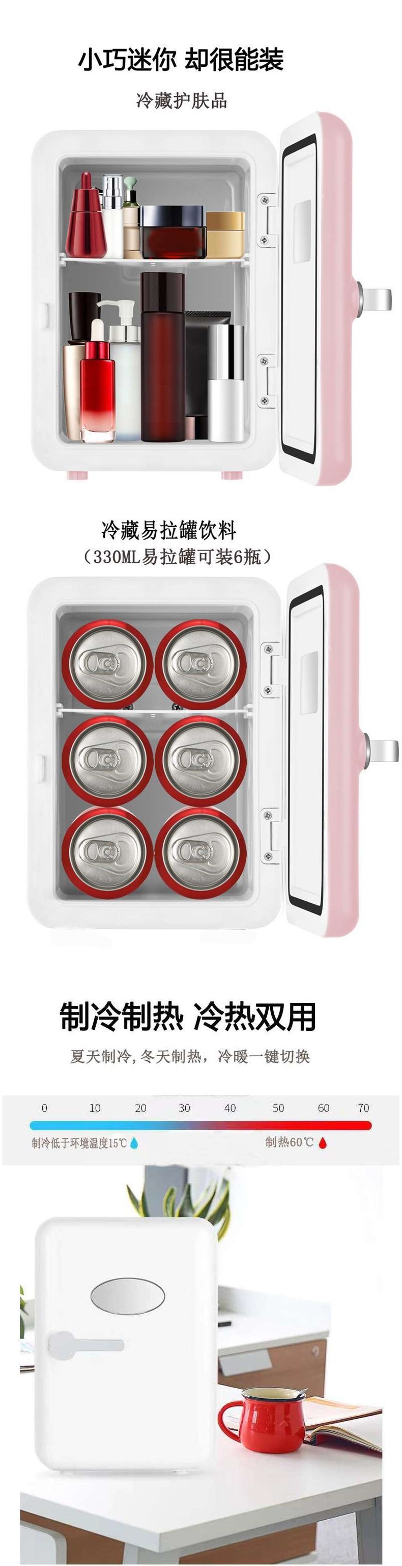 소형 냉장고 새로운 소형 가정용 자동차 따뜻한 것과 차가운 이중 목적 냉장 모유 화장품 소형 냉장고 USB 음료 약