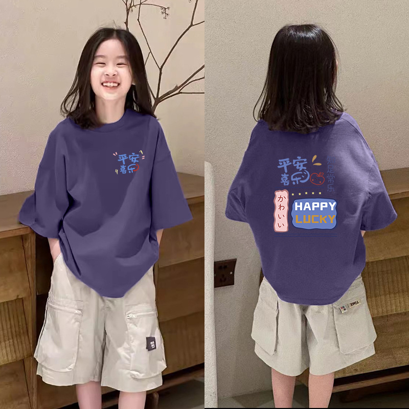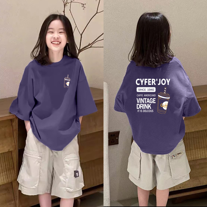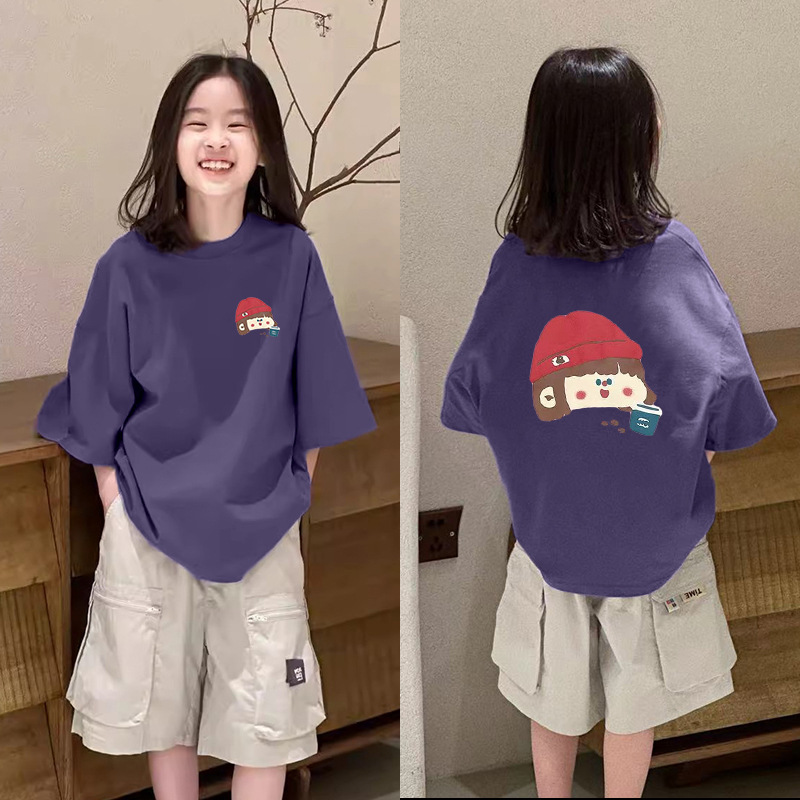 한국식 코튼 패셔너블 소녀 반팔 티셔츠 여름 여자 어린이 6-12 세 루즈세련된 올매치 탑