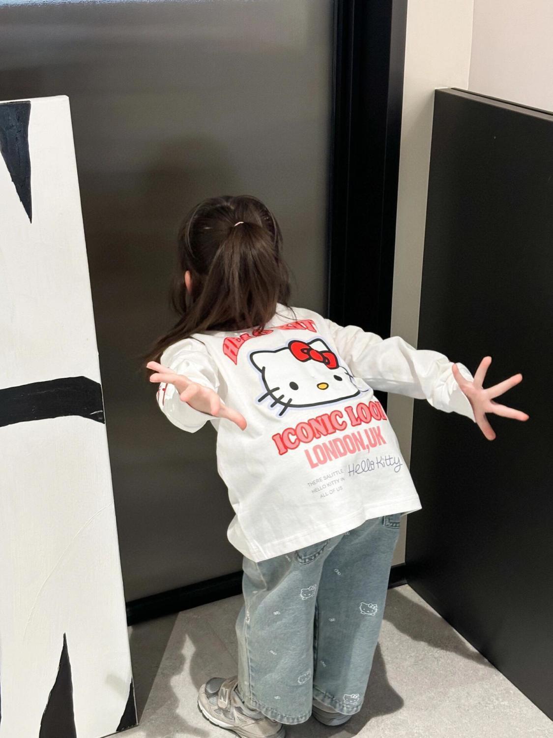 소녀 헬로 키티 고양이 긴팔 티셔츠 봄과 가을 어린이 아기의 서양식 올 매치 얇은 탑 0030A080스토어 가기