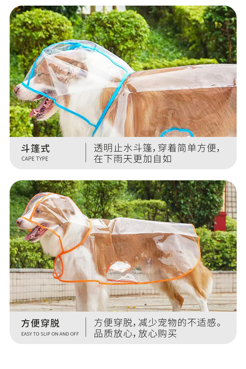 비 오는 날 개 산책 대형 및 중형견 코기 애완동물 비옷 개 비옷 방수 투명 후드 망토 스타일 비옷