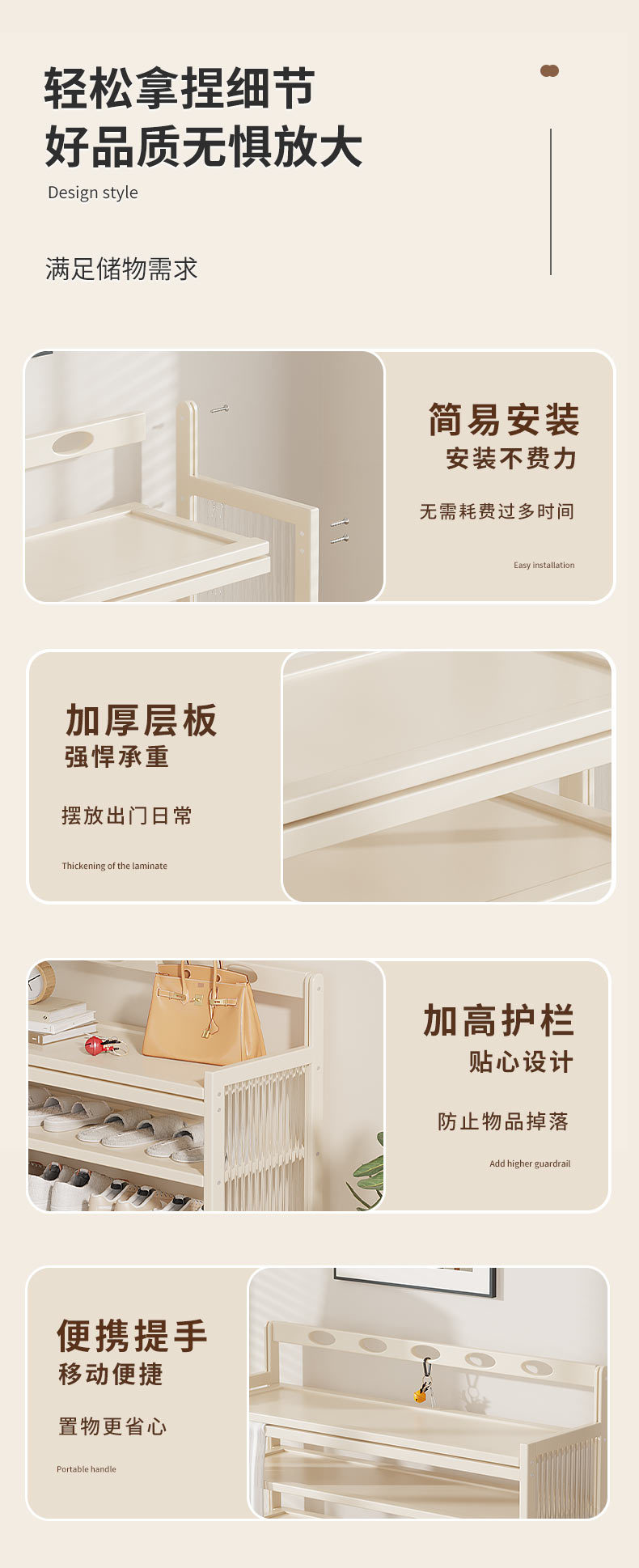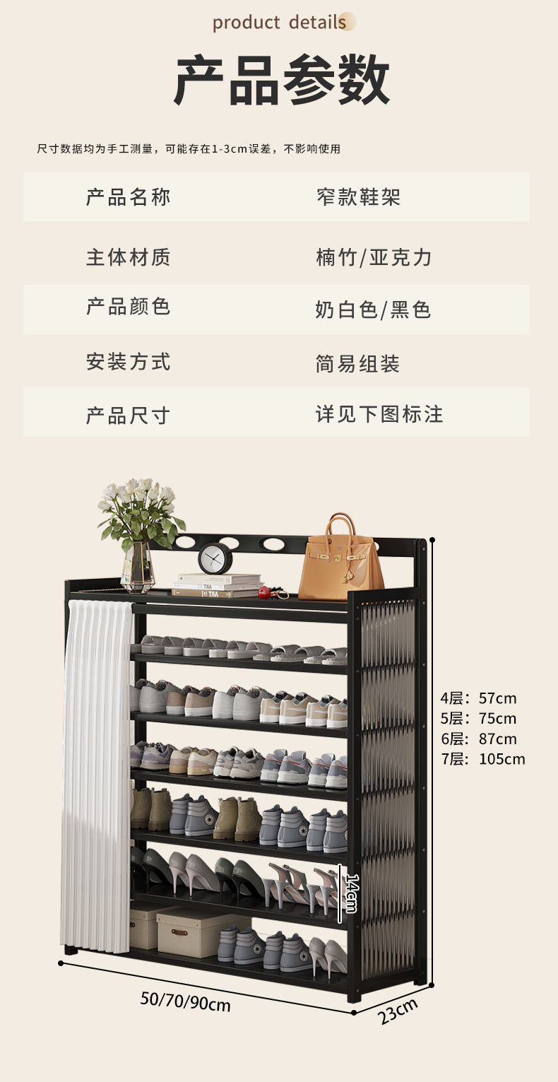 입구 간이 신발장, 크림색 스타일 도어 멀티 레이어 신발장, 기숙사 신발장, 임대 주택, 경제형스토어 가기
