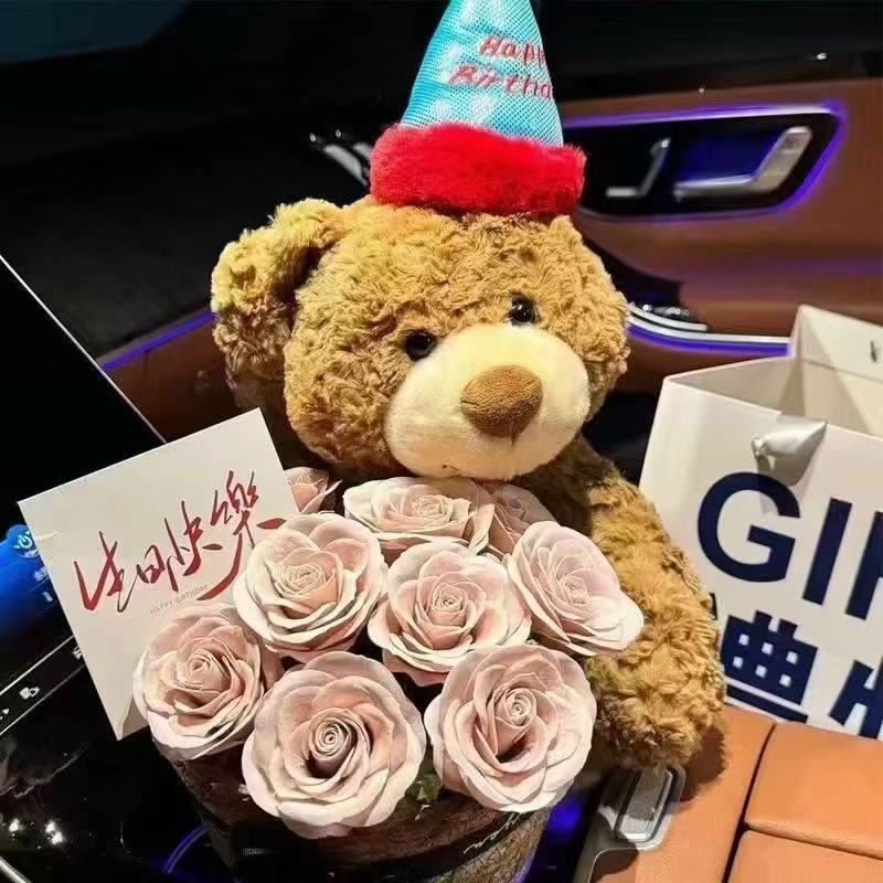 우 룰라 생일 모자 선물 곰 생일 모자 곰 봉제 장난감 테디 베어 생일 선물 코시 곰 인형스토어 가기