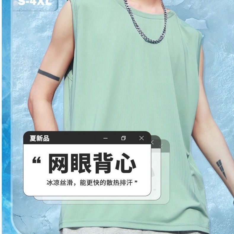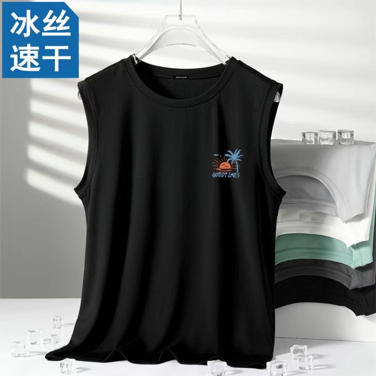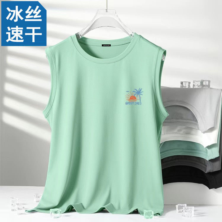 아이스 실크 조끼 남성 여름 속건성 메쉬 대형 남성 루즈 허들 스포츠 대형 민소매 티셔츠스토어 가기